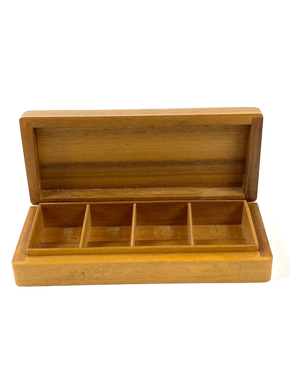 Medinė keturių skyrelių dėžutė.
