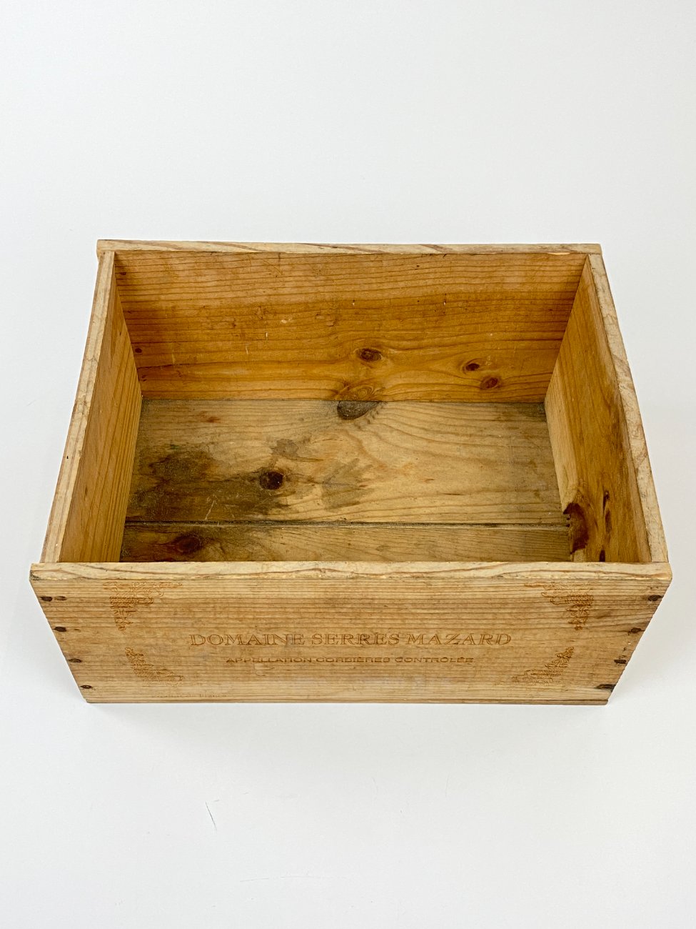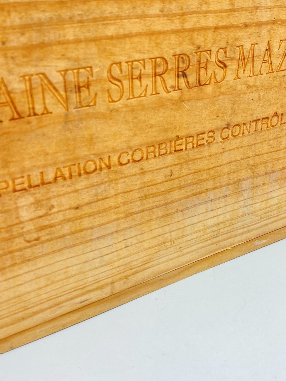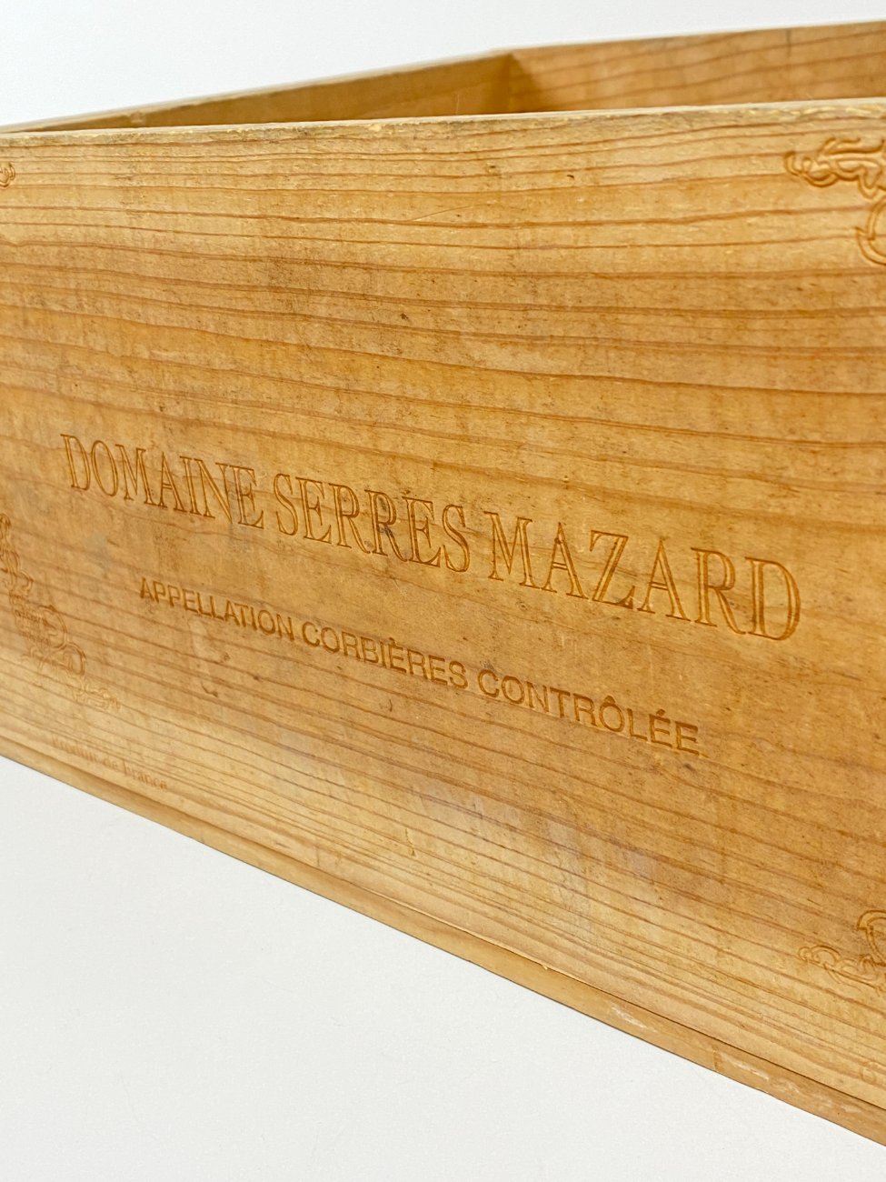 Pušies medžio vyno dėžė “Domaine Serres Mazard”.