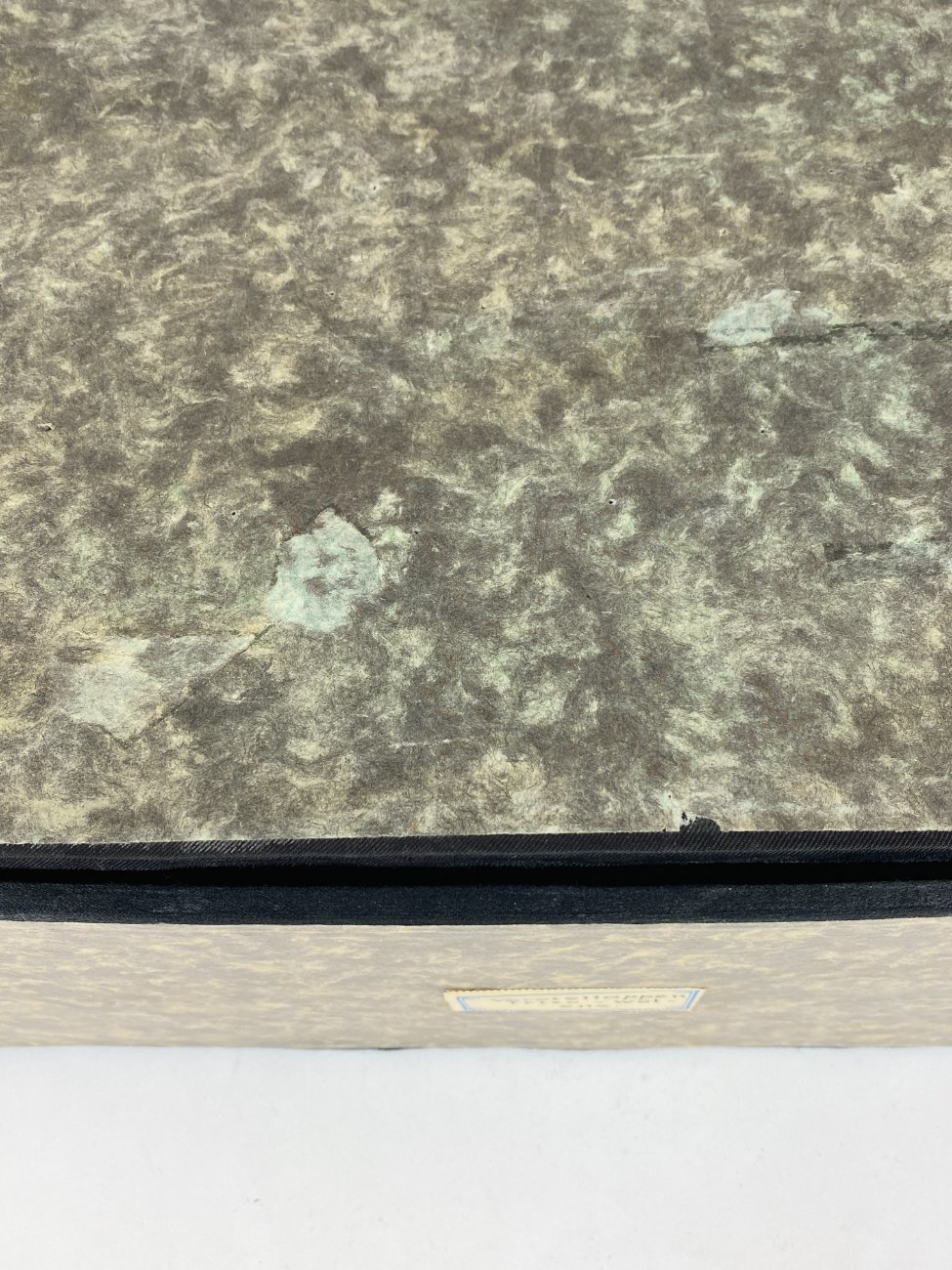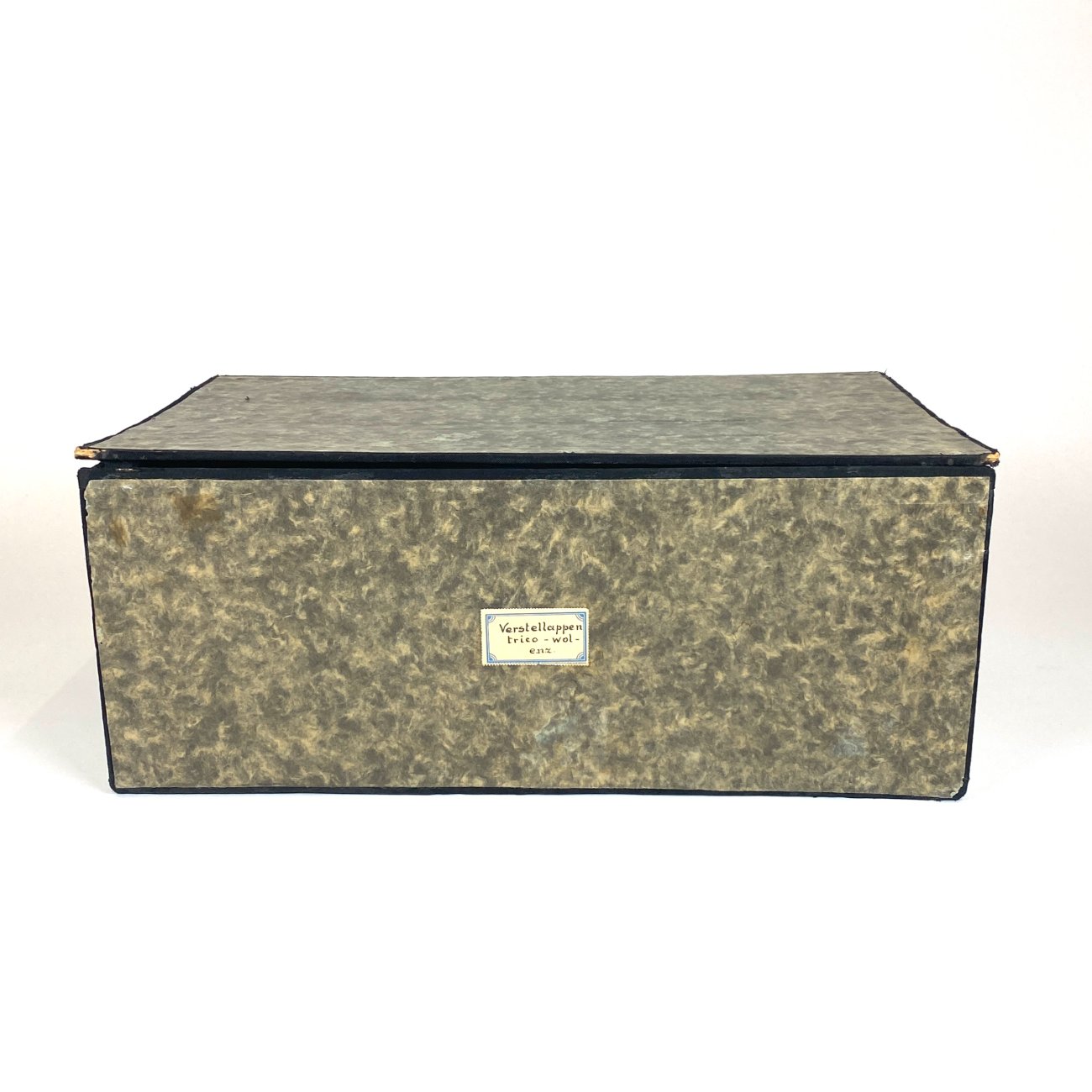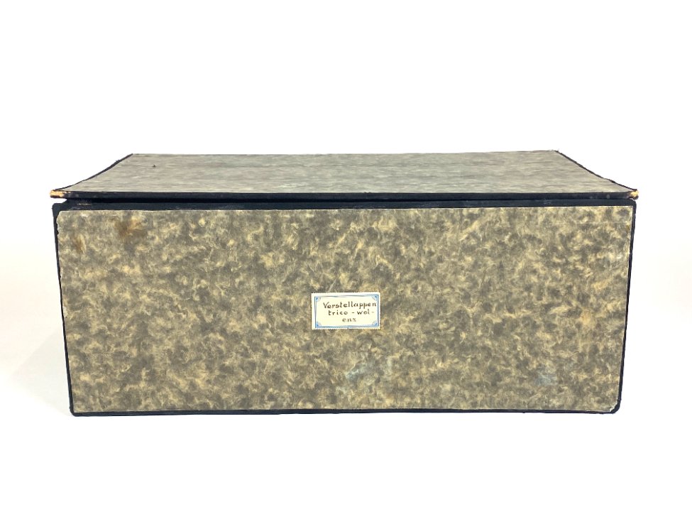 | Papildoma informacija | Yra dėmių. Matoma dangčio ir ilgųjų dėžės kraštinių deformacija. Vietomis pažeistos dėžės ir dėžės dangčio kraštinės, kampai. |