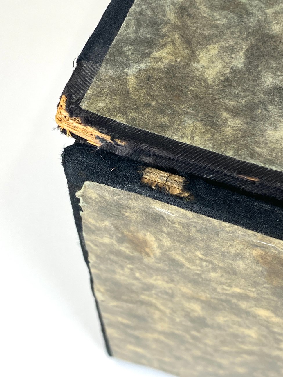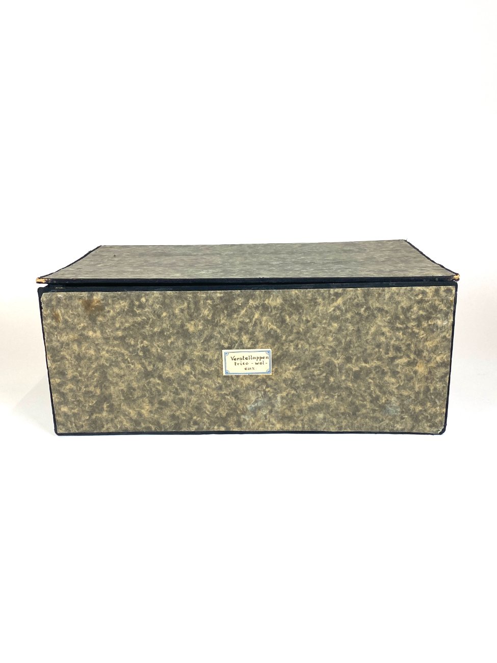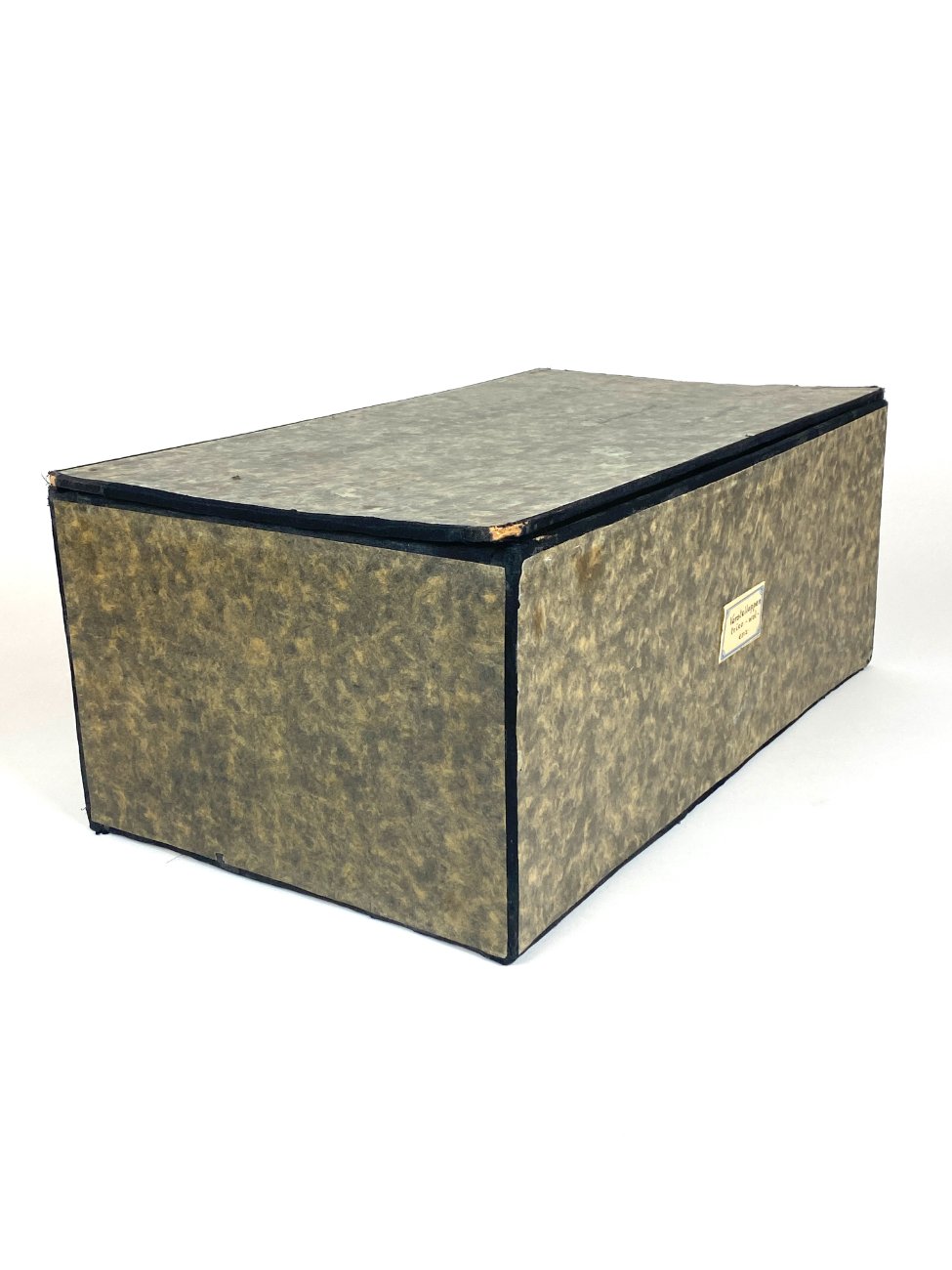 | Papildoma informacija | Yra dėmių. Matoma dangčio ir ilgųjų dėžės kraštinių deformacija. Vietomis pažeistos dėžės ir dėžės dangčio kraštinės, kampai. |
