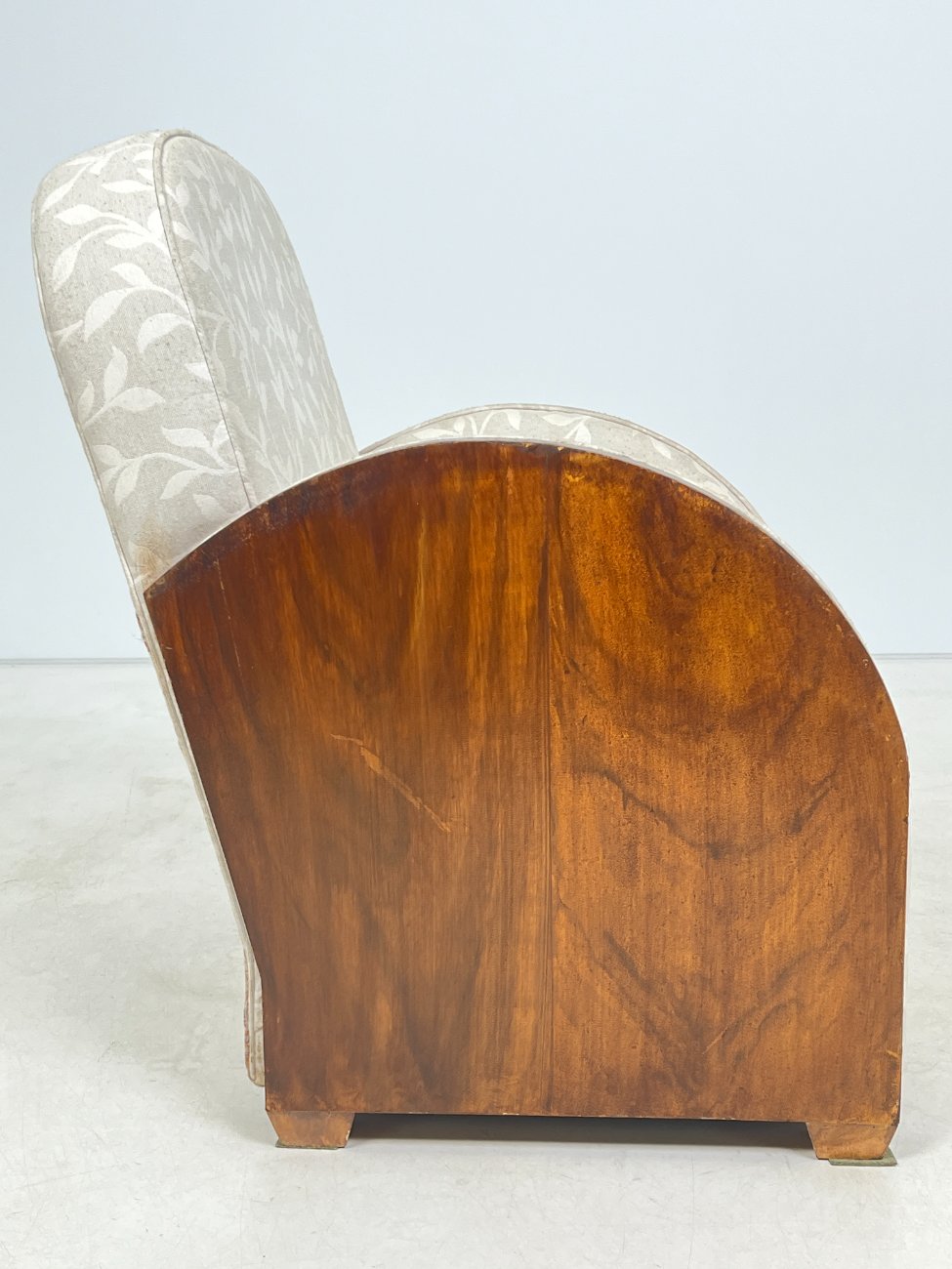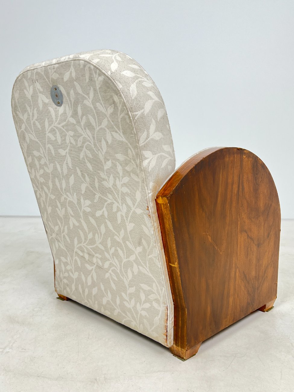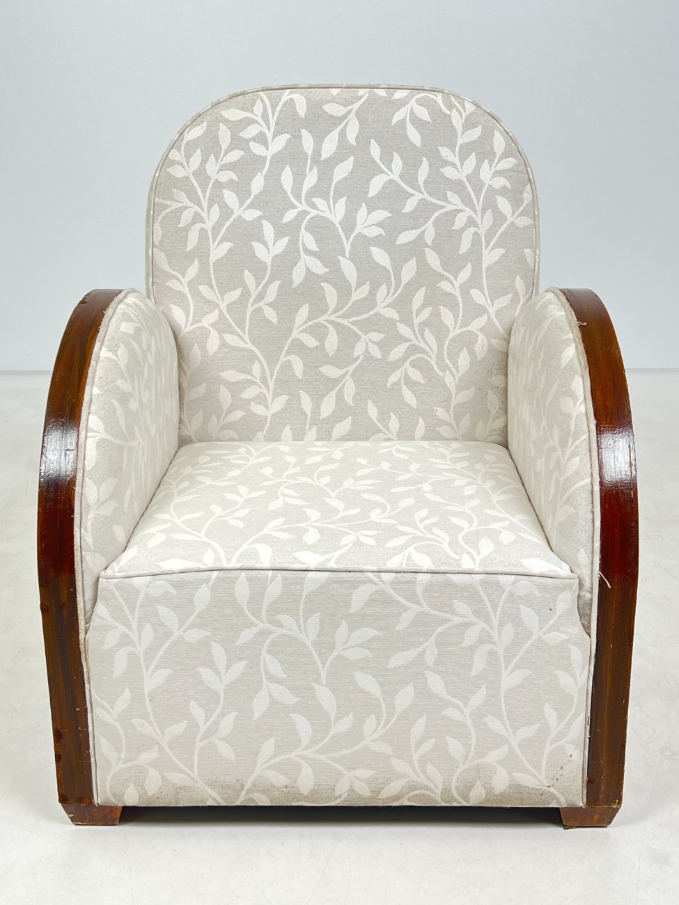 Art deco riešutmedžio foteliai šviesiu gobelenu 2 vnt. komplektas.