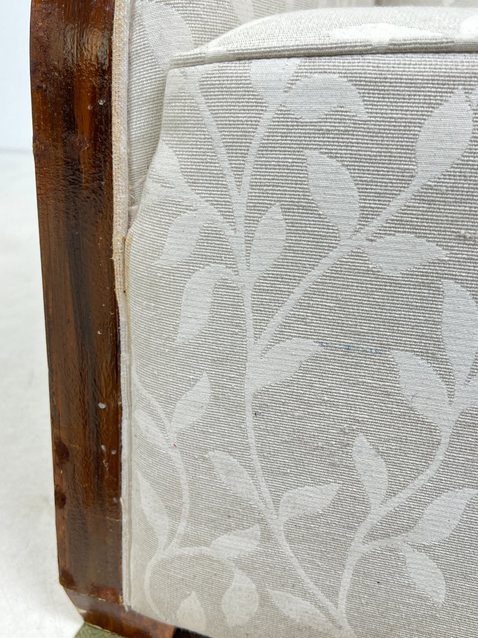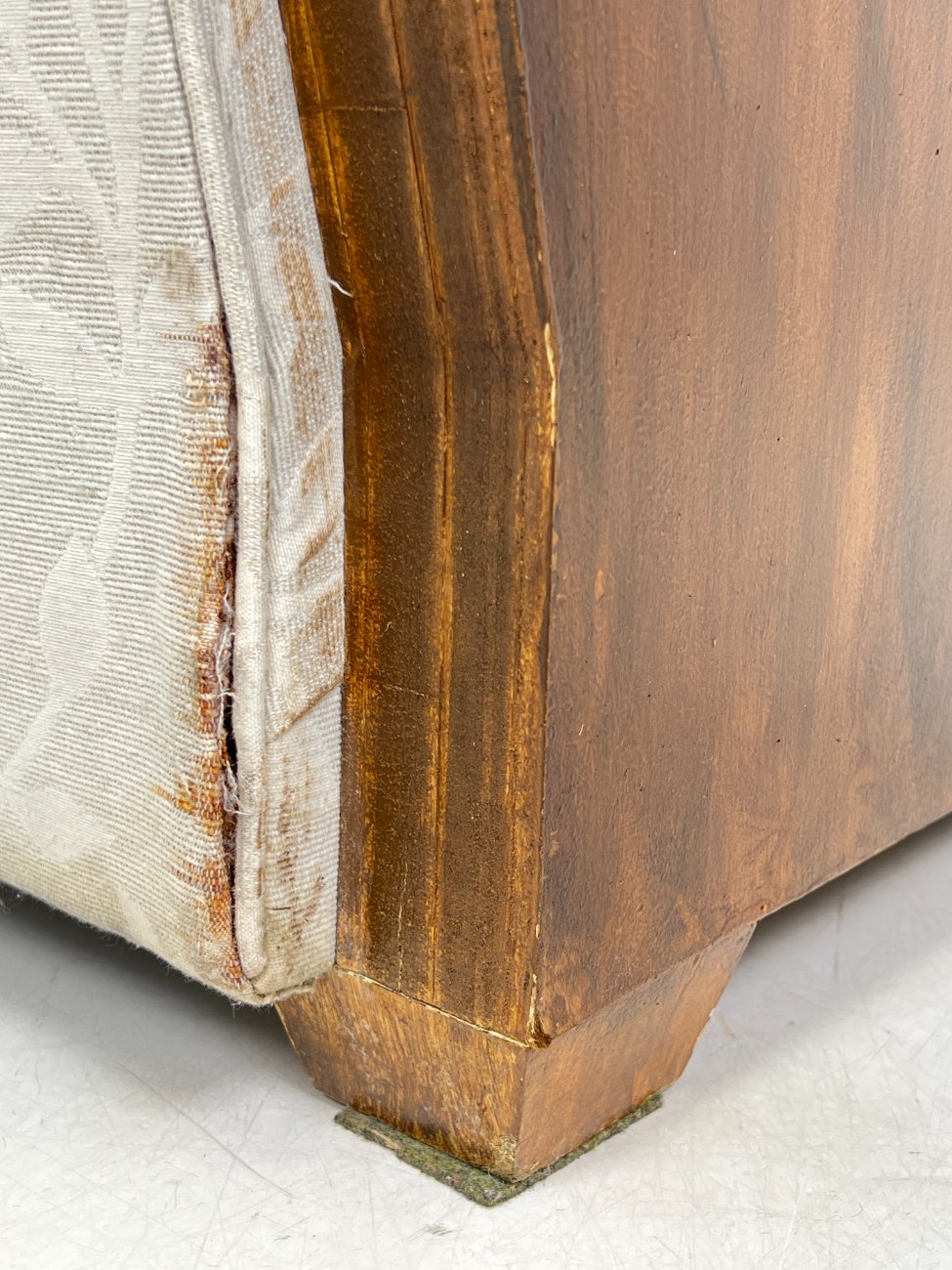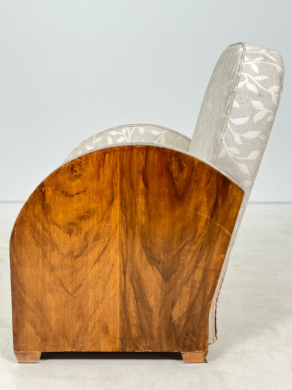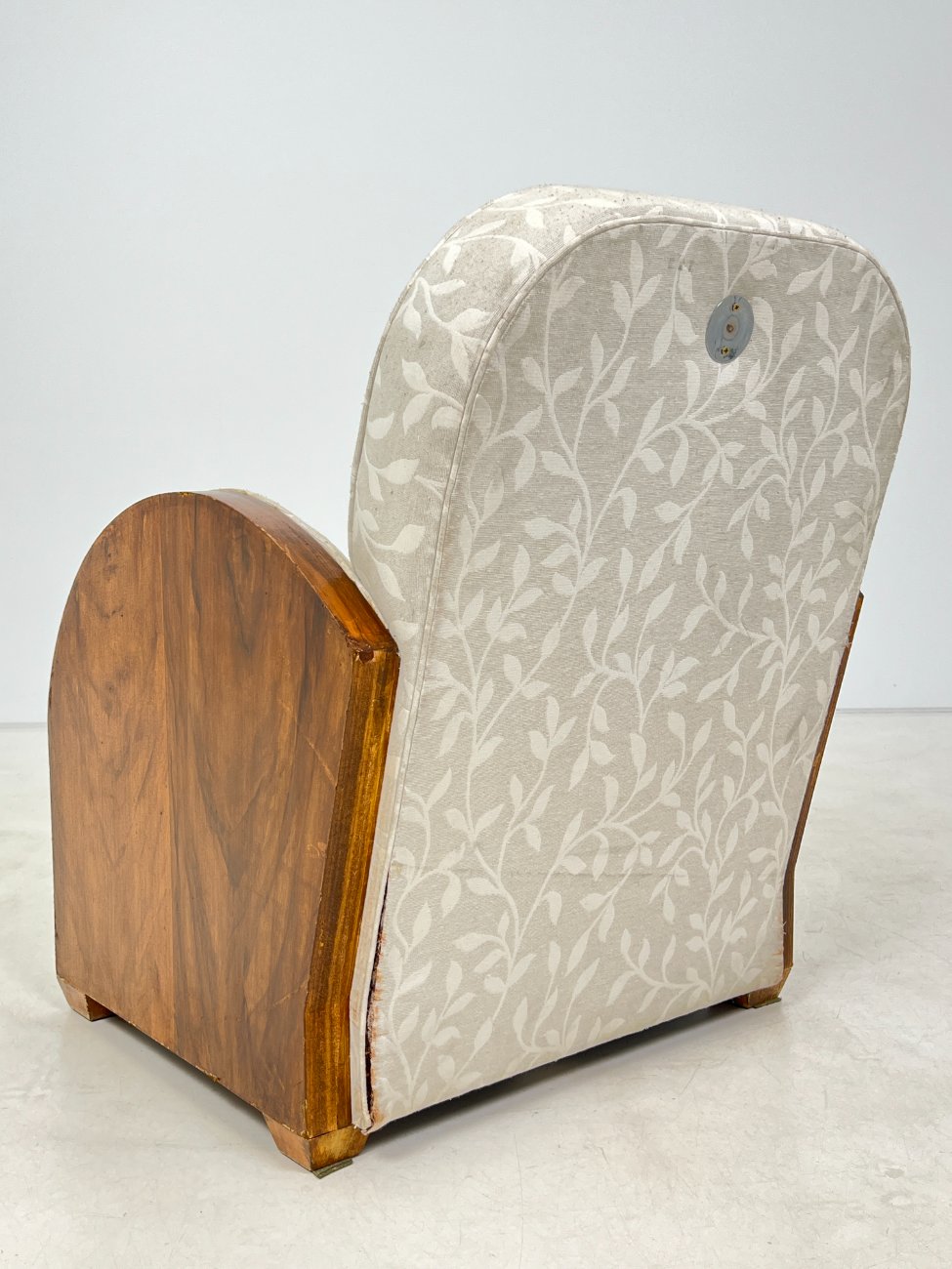 Art deco riešutmedžio foteliai šviesiu gobelenu 2 vnt. komplektas.