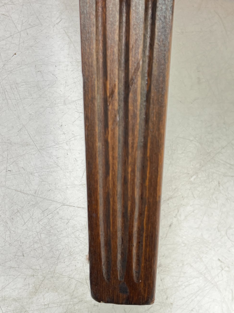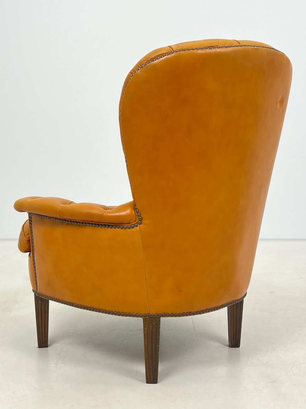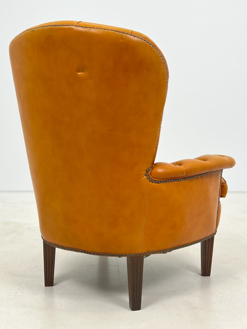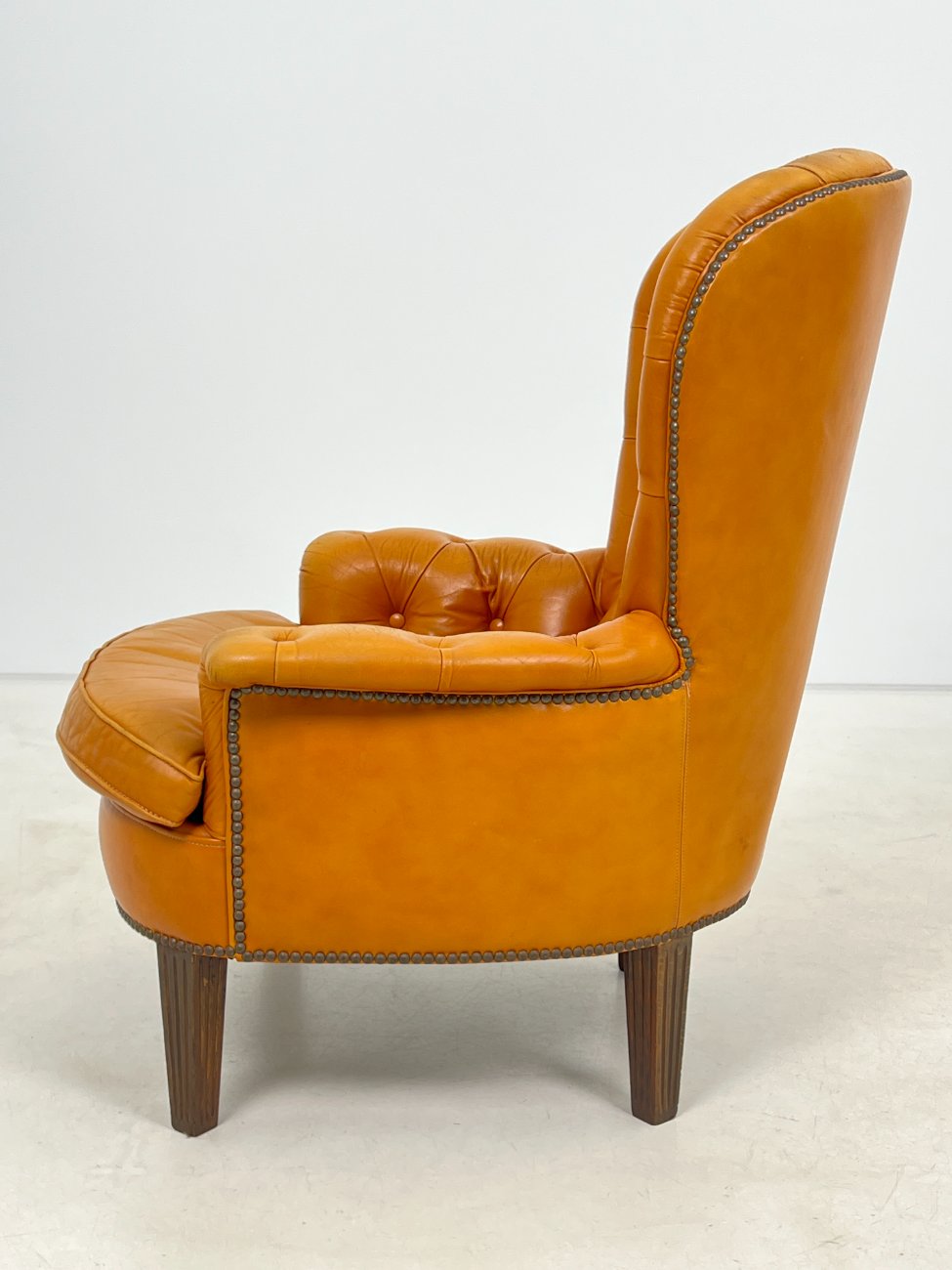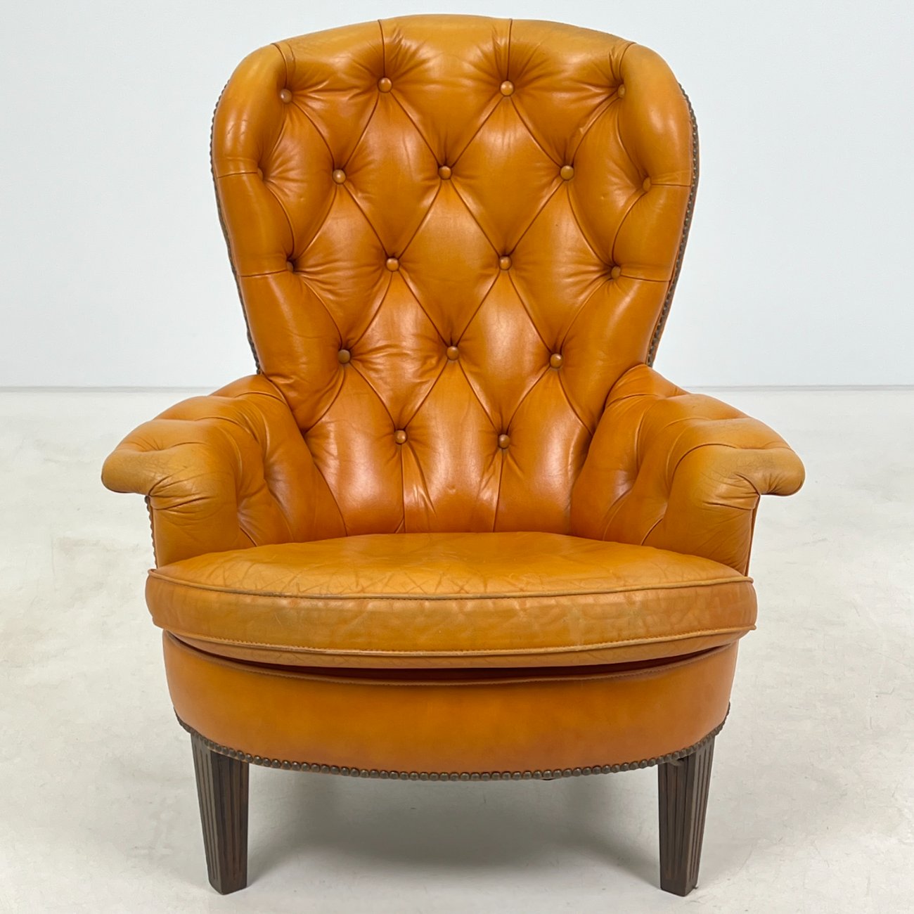 | Papildoma informacija | Sėdimosios dalies aukštis 43 cm. Nugarinėje dalyje yra įdūbimų, yra pabraižymų ant odinės dalies, trūksta sagos kairiajame porankyje, įplyšęs dugno pamušalas, pabraižymai ant kojų. |