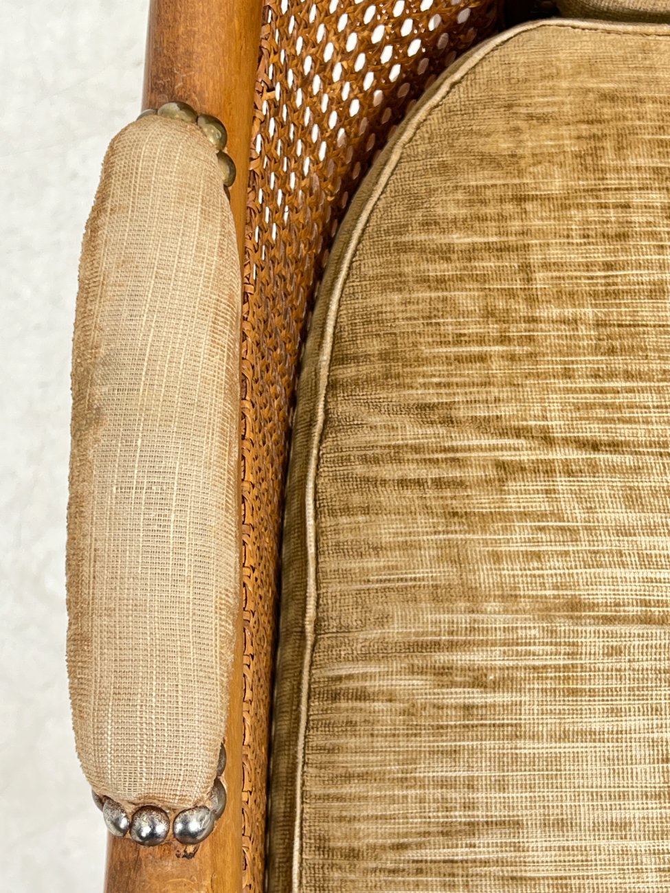 Riešutmedžio fotelis su ratanu ir gobelenu 72x67x87 cm, 45 cm