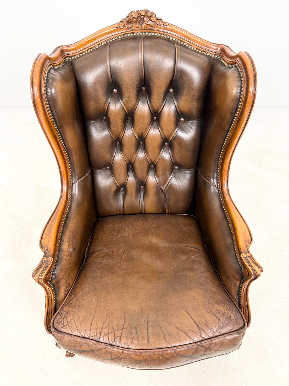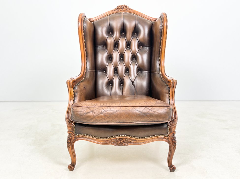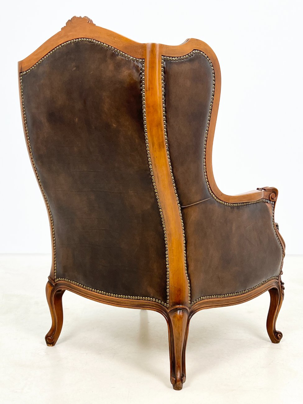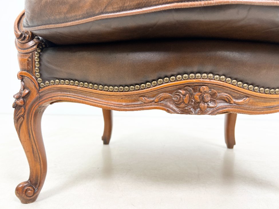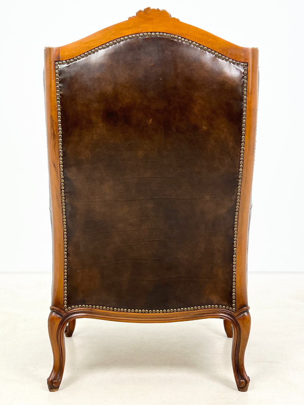 Riešutmedžio rėmo fotelis su oda 82x71x110,5 cm, 47 cm