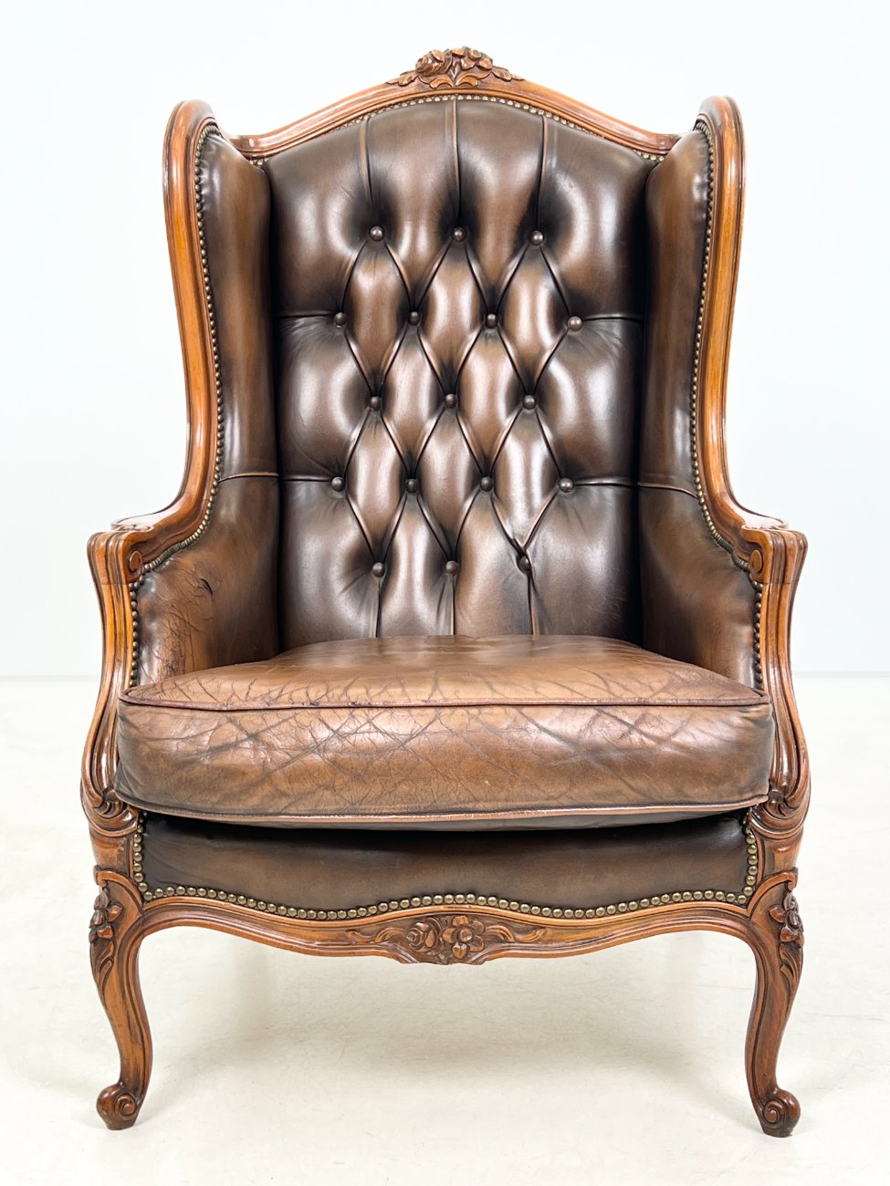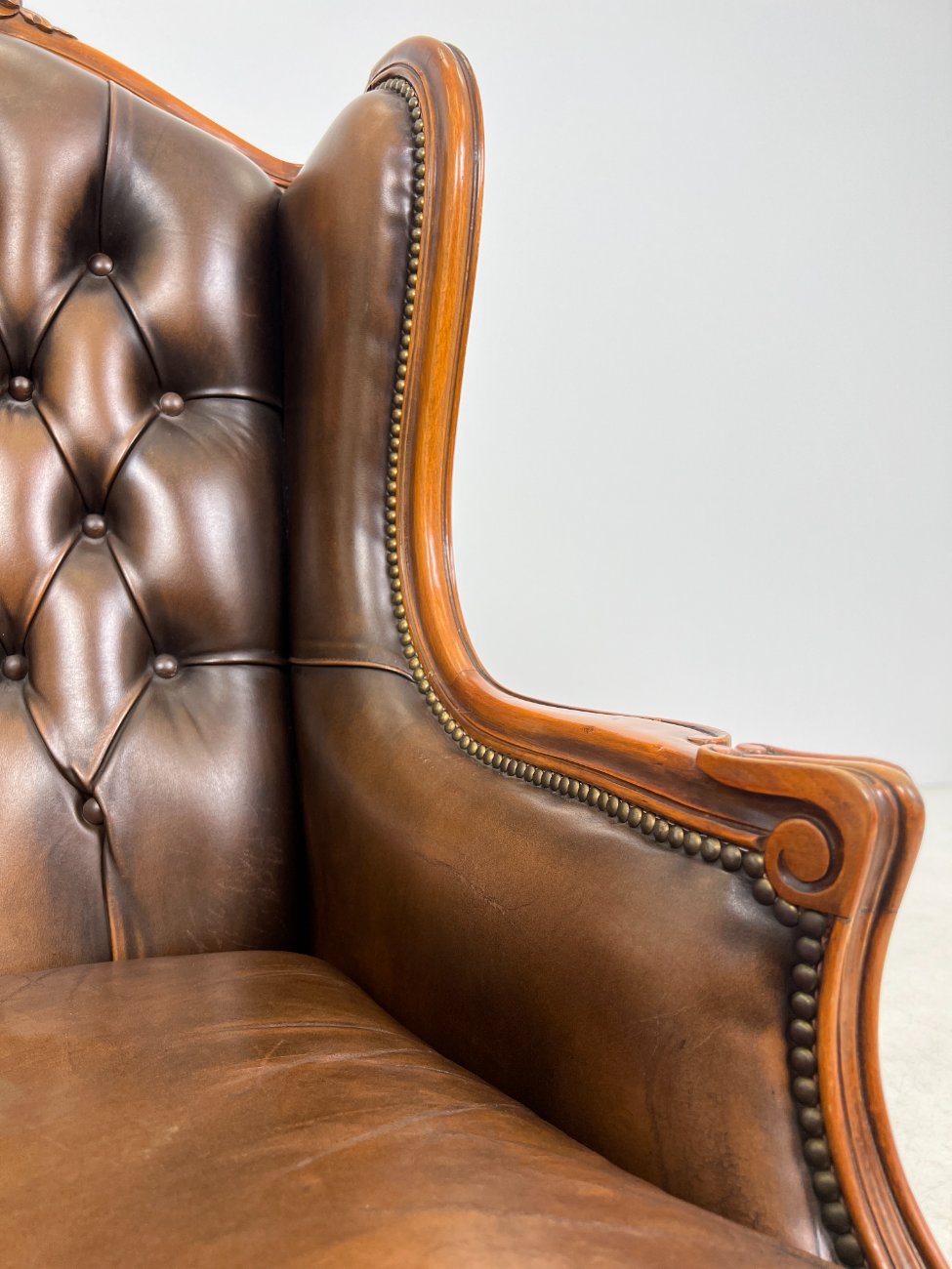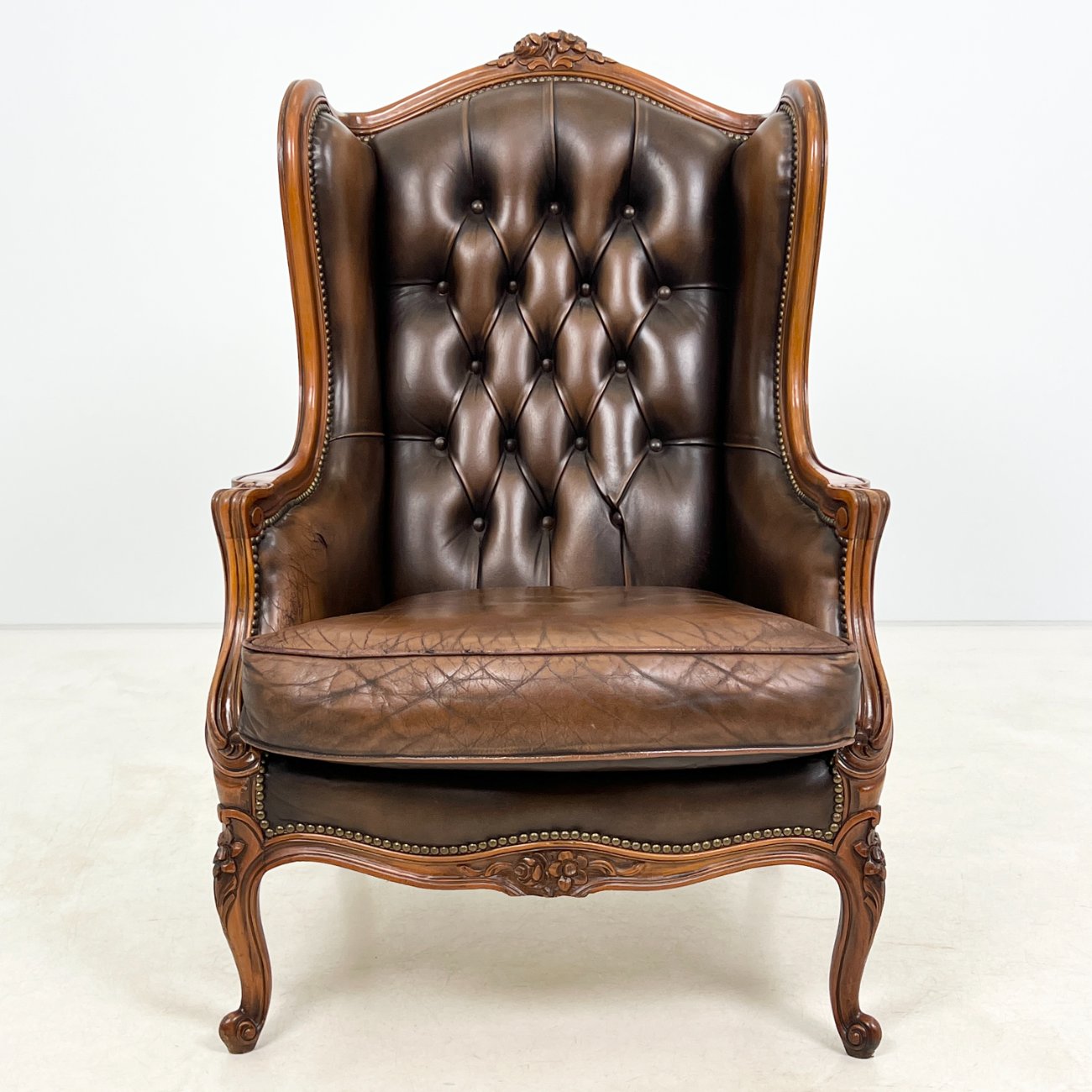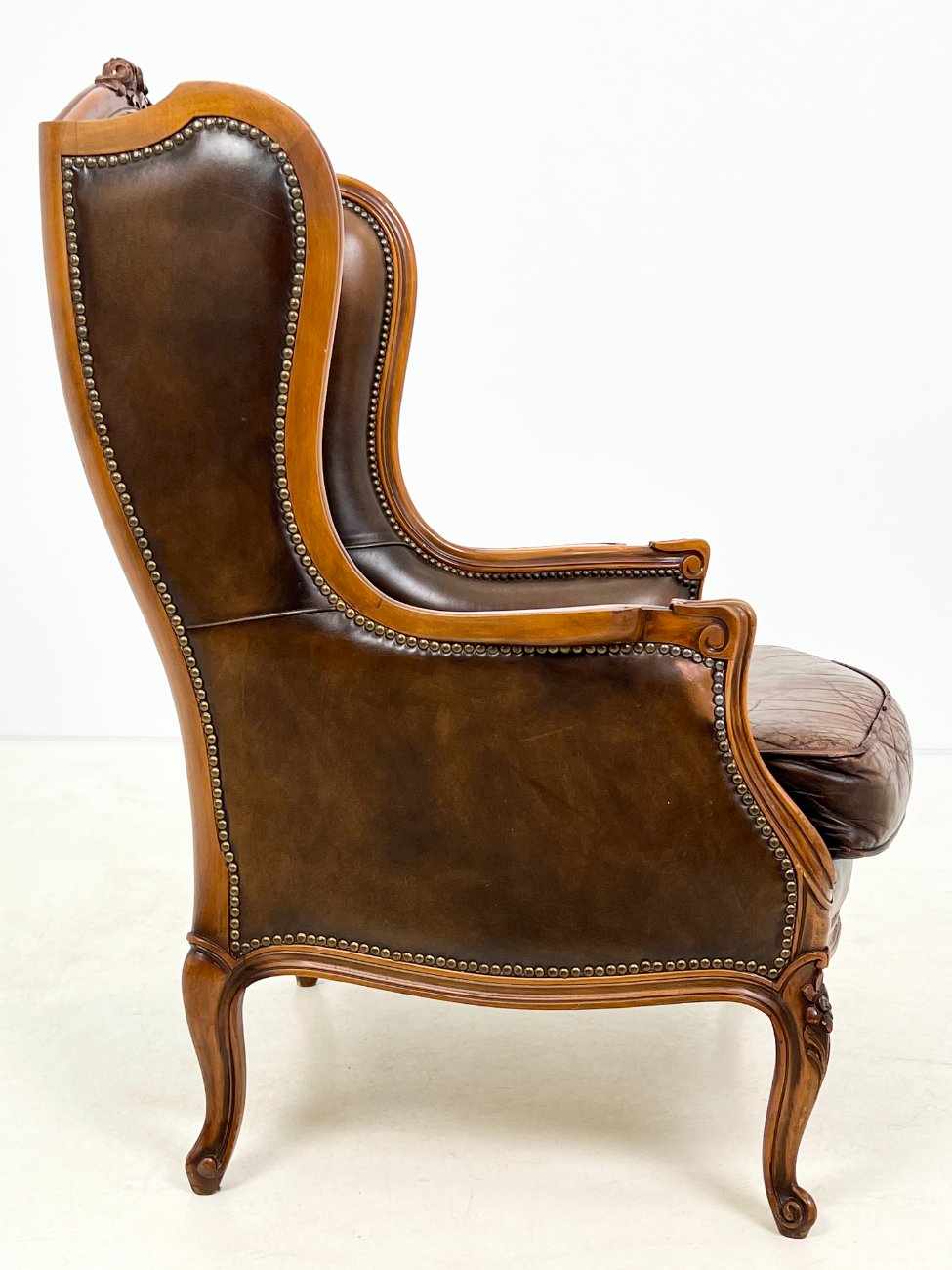 Riešutmedžio rėmo fotelis su oda 82x71x110,5 cm, 47 cm