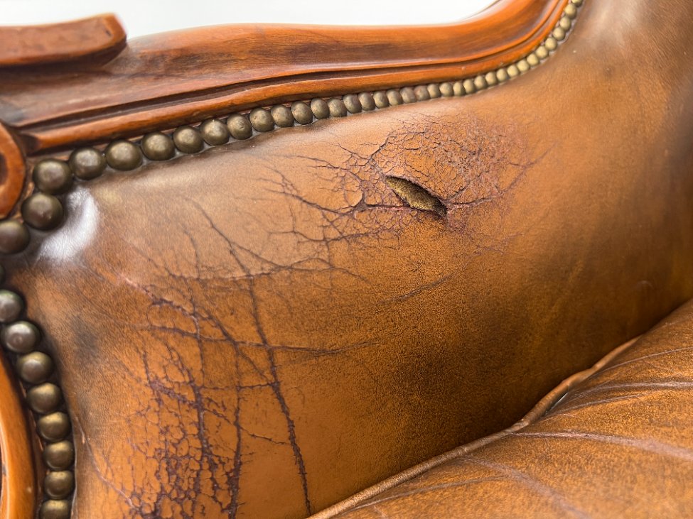 | Papildoma informacija | Po pagalve suplyšęs sėdimosios dalies pamušalas. Sėdimosios dalies pagalvės oda sutrūkinėjusi. Įplyšusi ir sutrūkinėjusi oda po dešiniuoju porankiu. Ant rėmo ir kojų yra pabraižymų., Sėdimosios dalies aukštis 47 cm. |