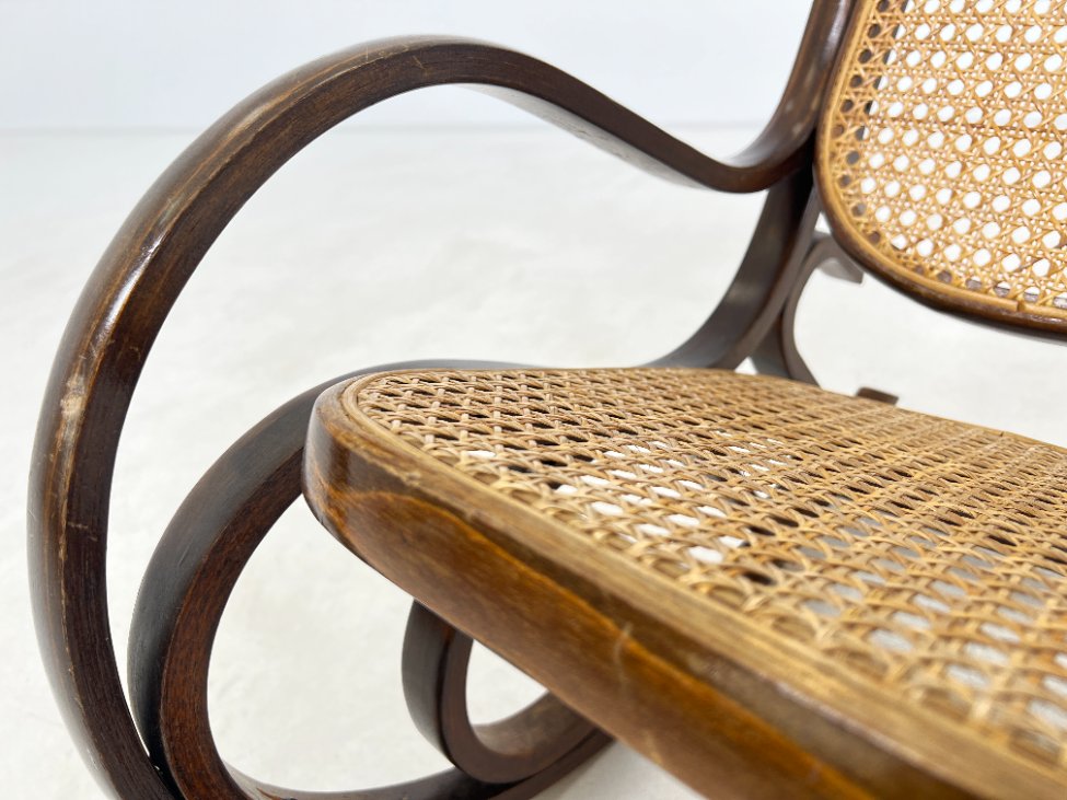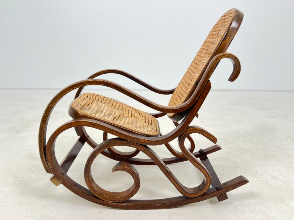 Vaikiškas Thonet stiliaus supamas krėslas su ratanu.
