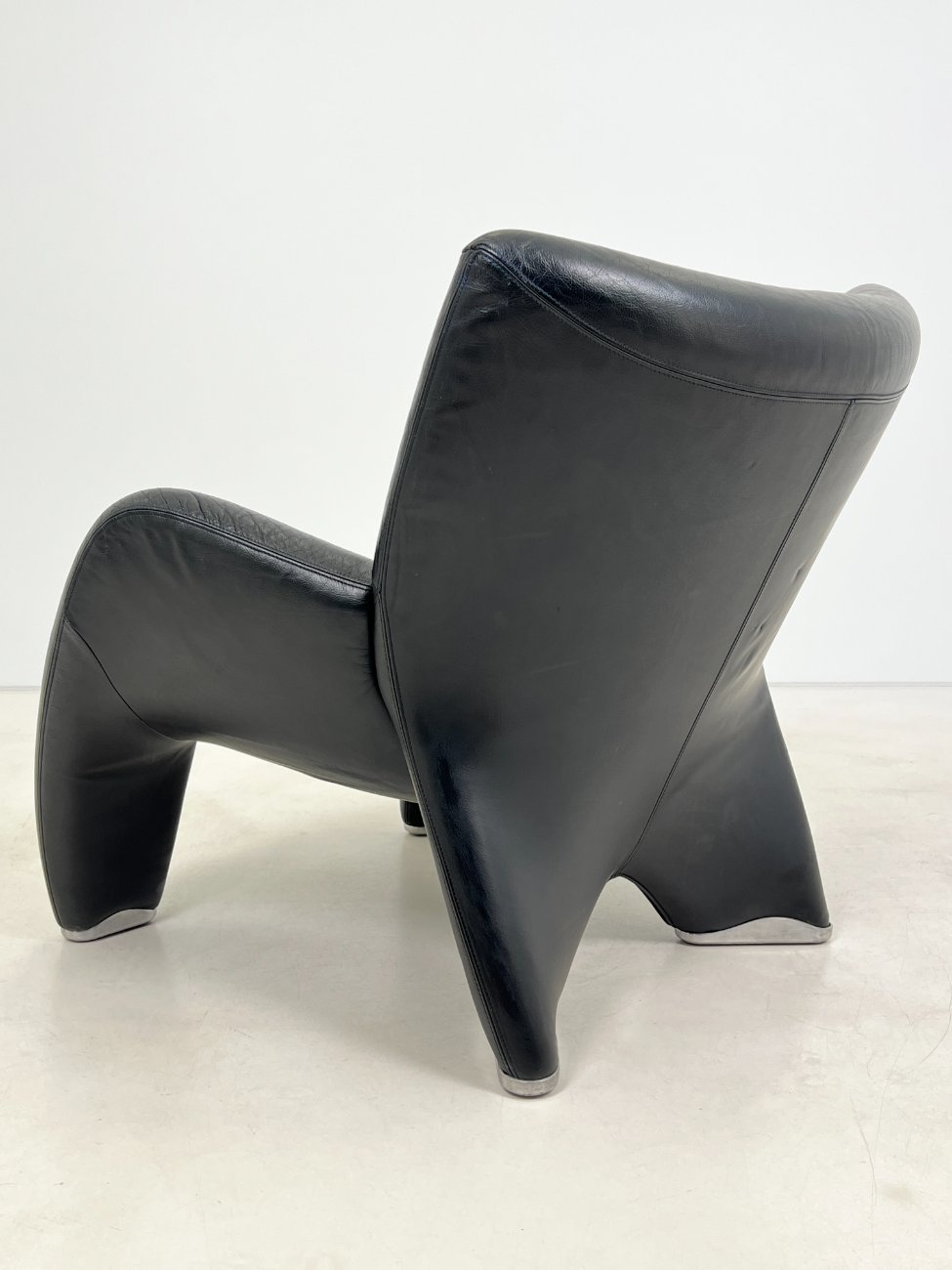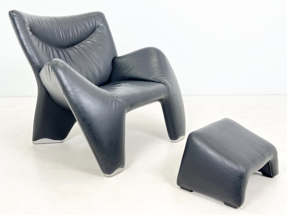 Vintažinis Leolux Echnaton odinis fotelis su pakoju.