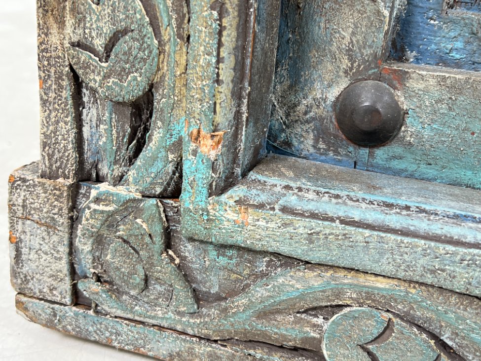 | Papildoma informacija | Yra paviršiaus pabraižymų, įmušimų, dažų pažeidimų, medienos įskilimų. Vietomis trūksta metalinių apdailų. |