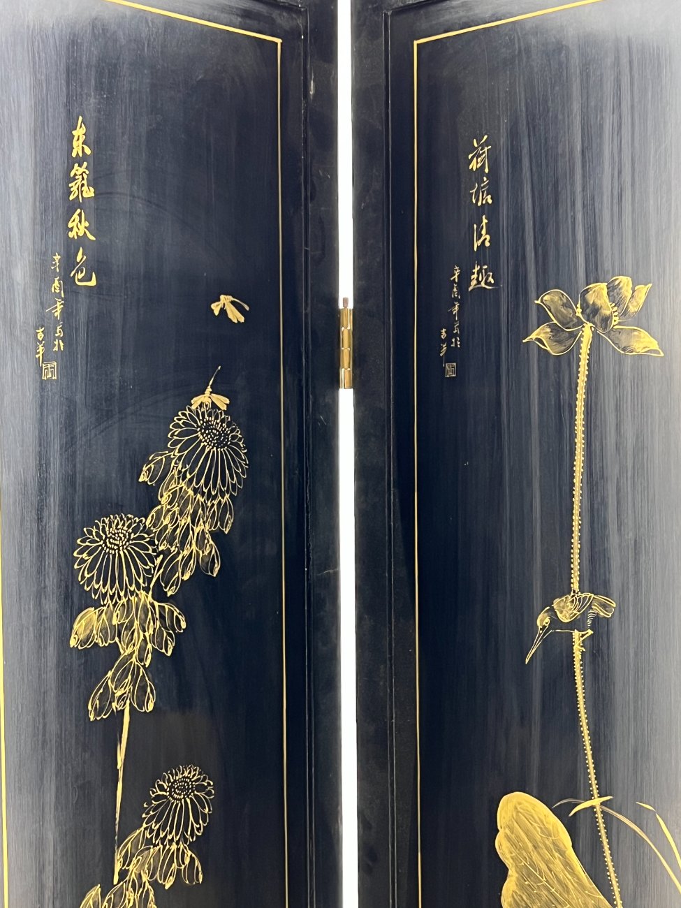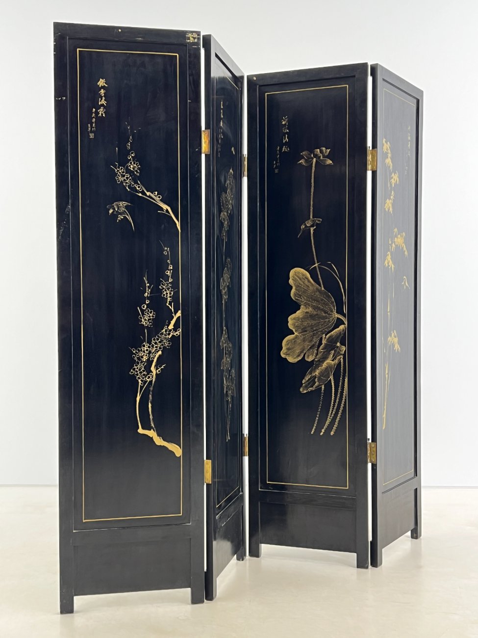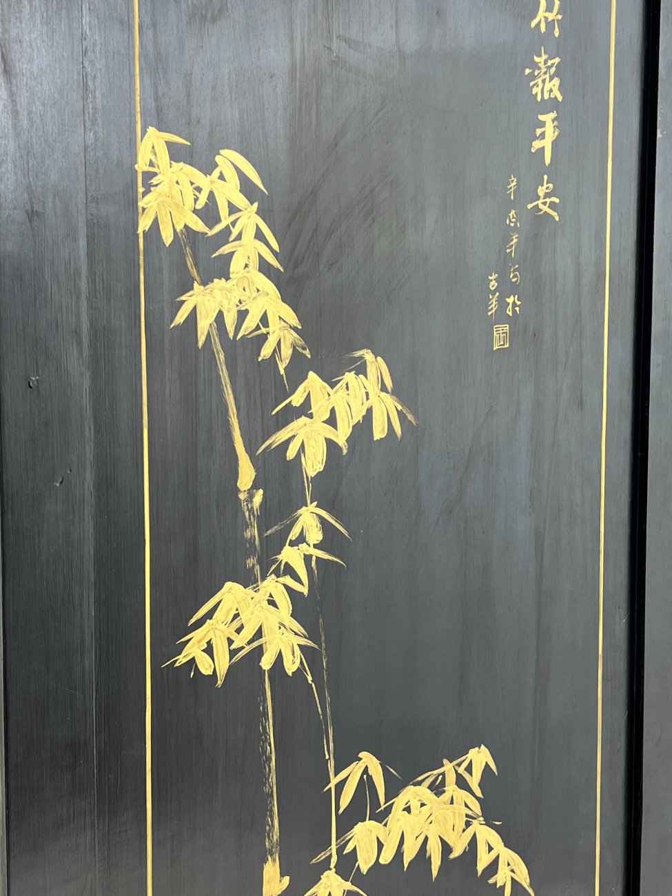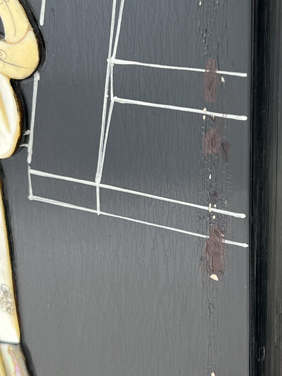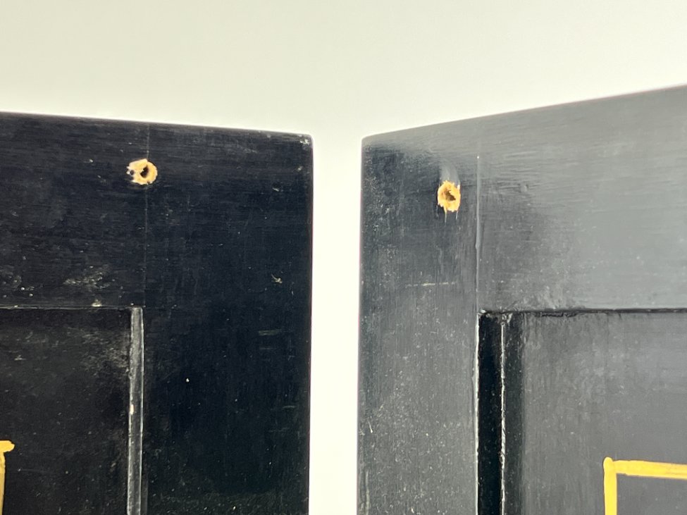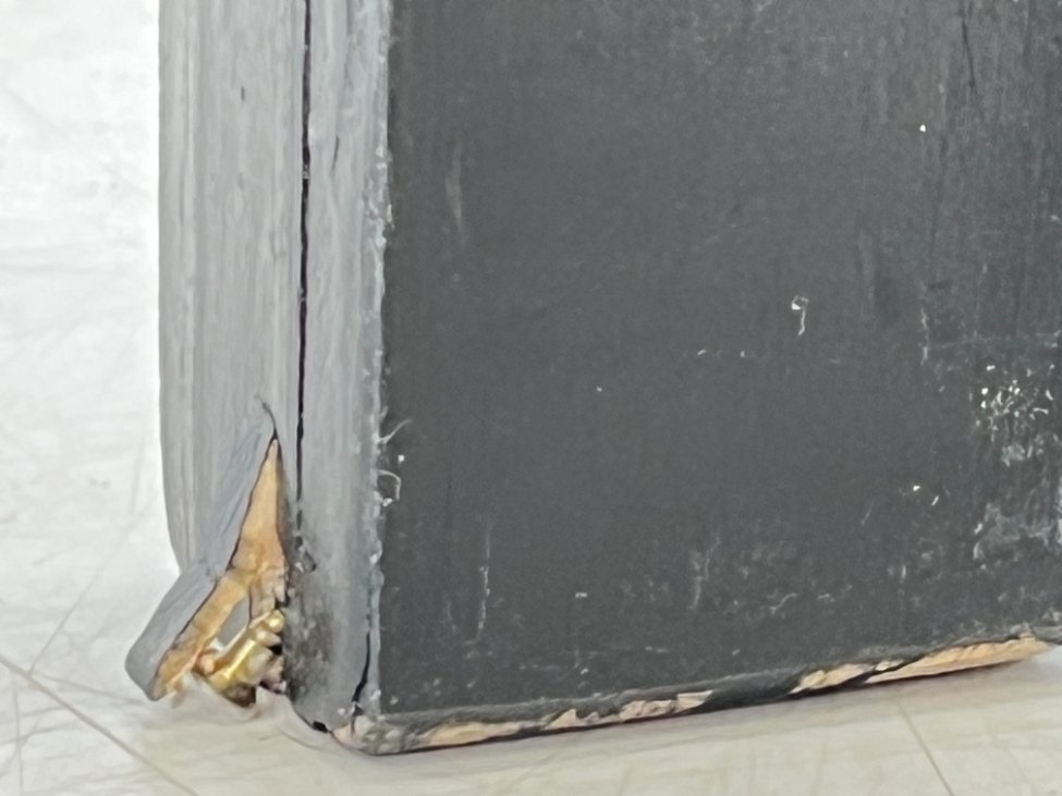 | Papildoma informacija | Pilnai išskleista 3x184x182,5 cm, pilnai suskleista 14x46x182,5 cm., Yra paviršiaus pabraižymų, įmušimų. Nugarinėje dalyje yra išgręžtos skylės. Įlaužta vienos kojos apačia. Vietomis yra dažų sutrūkinėjimų ir atšokinėjimų, ant viršaus uždažyta. |