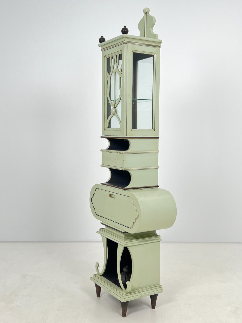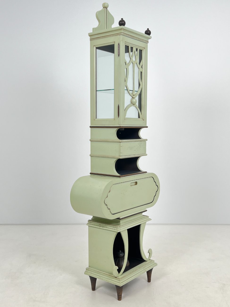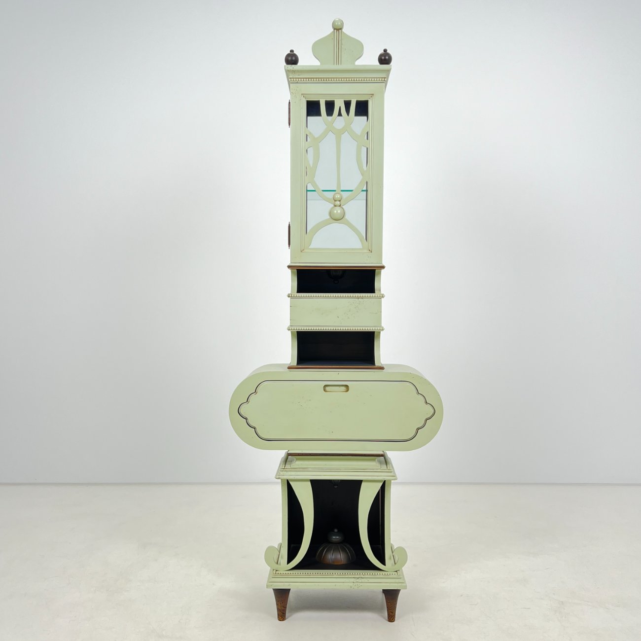 Art nouveau medinė indauja su stalčiais, raitytomis detalėmis 33x71x203 cm