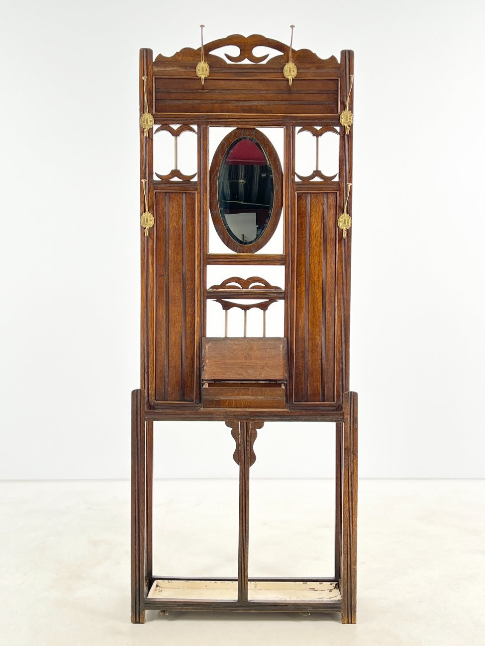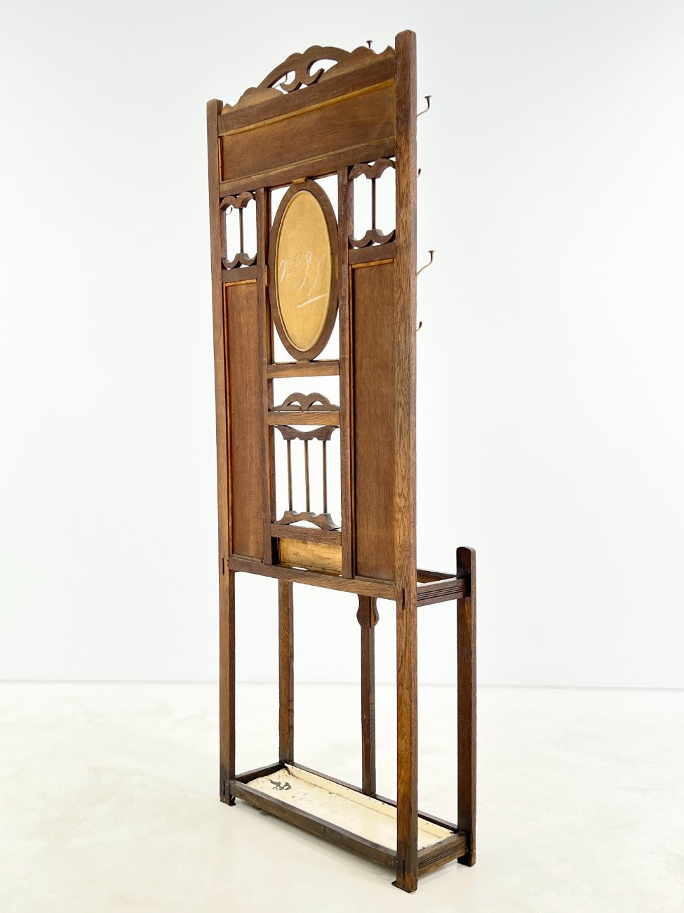 Ąžuolinis prieškambaris su veidrodžiu, kabliukais, skėtine.