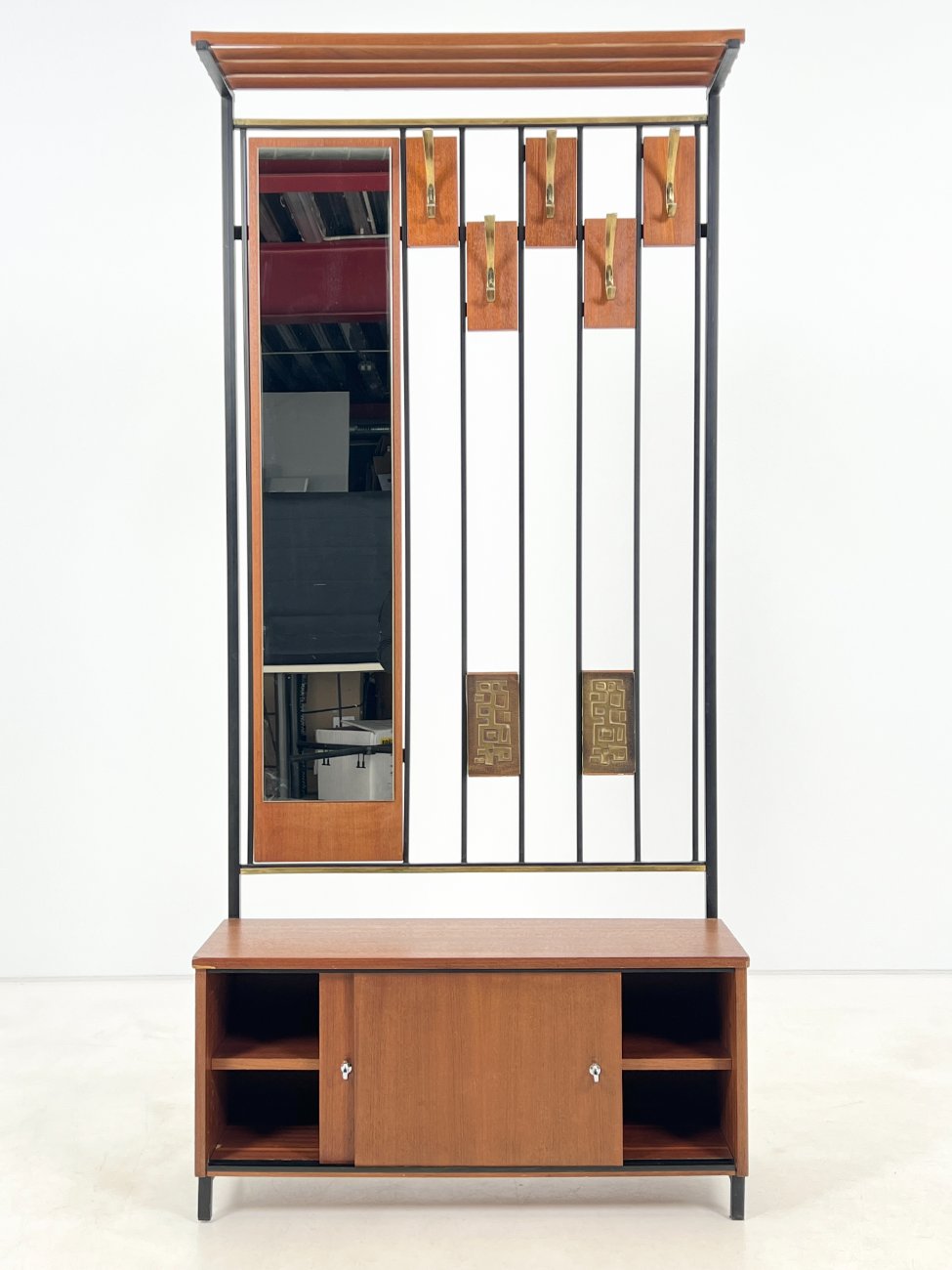 Vintažinis prieškambaris su veidrodžiu, kabykla ir spintele 34x86x183,5 cm
