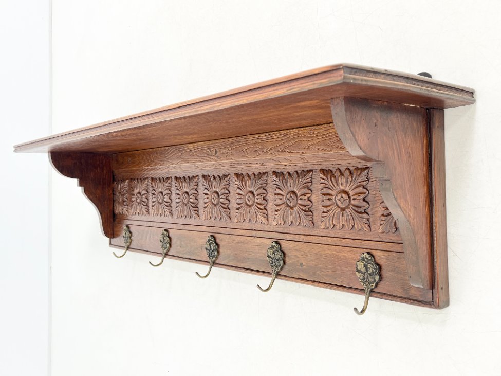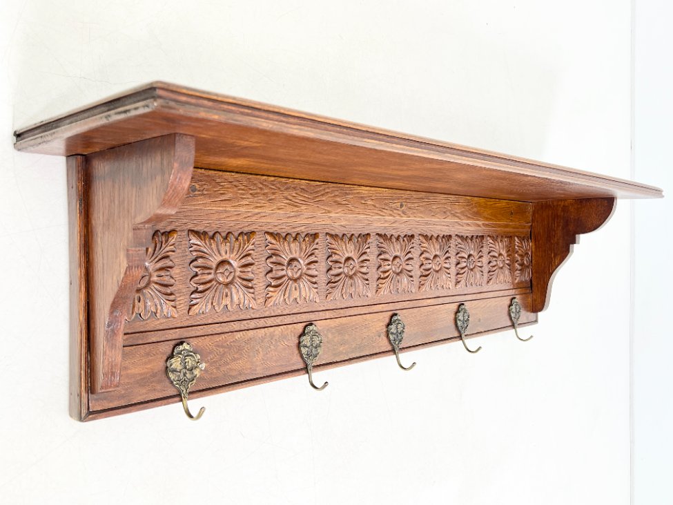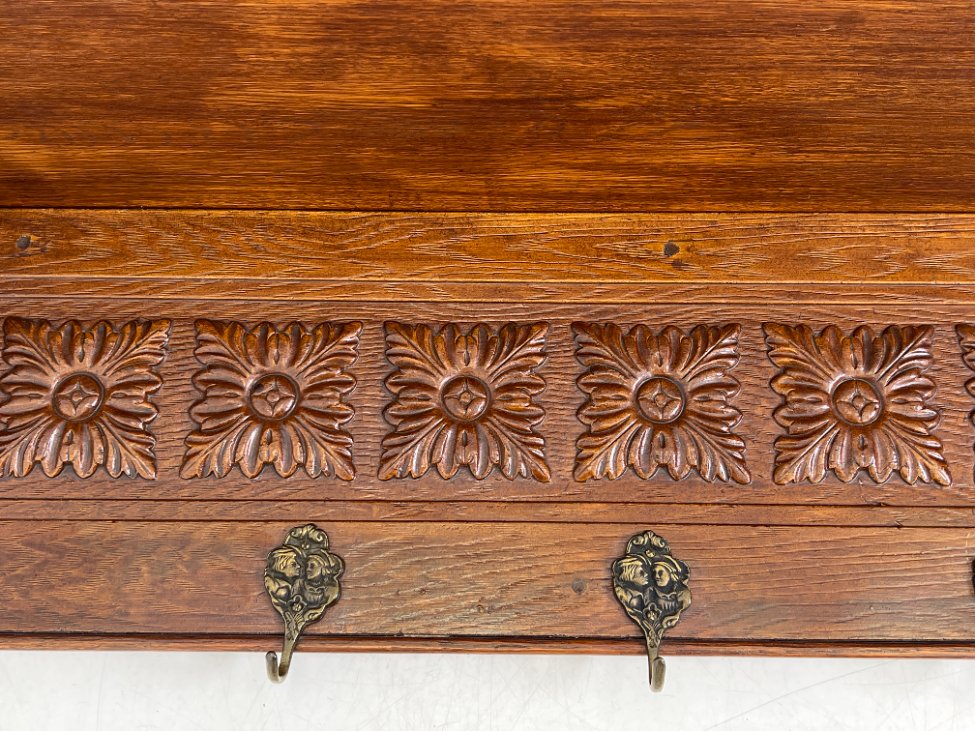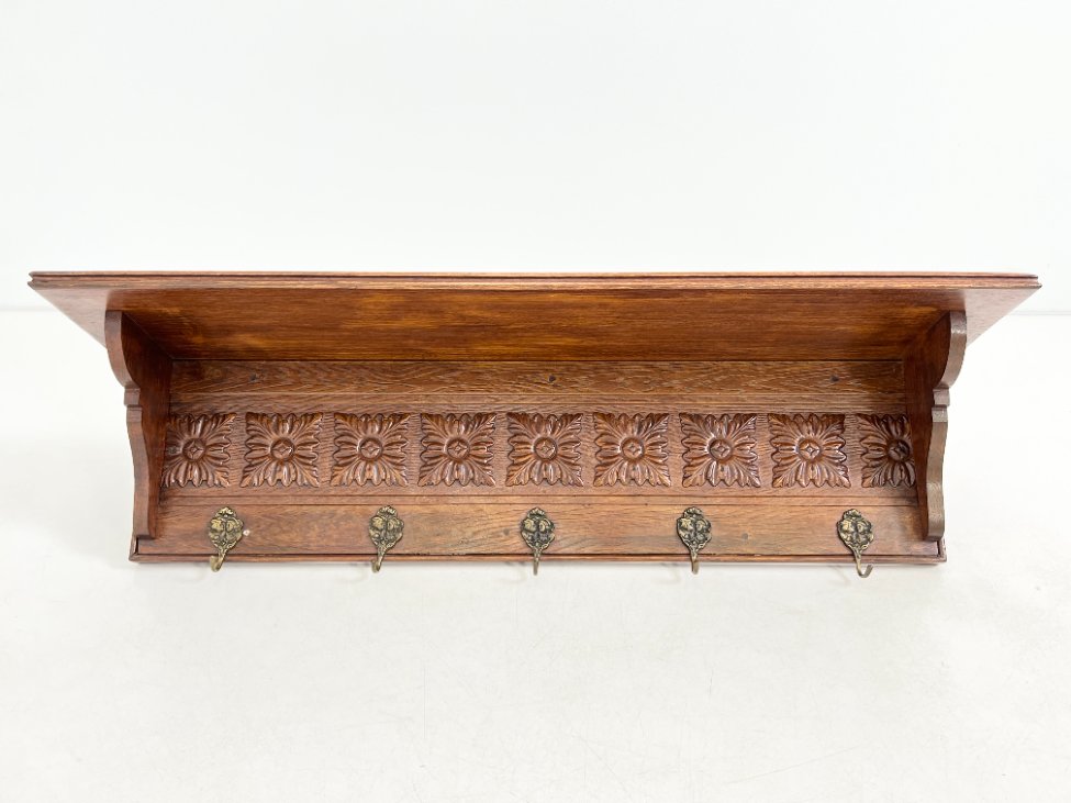 Ąžuolinė sieninė kabykla su penkiais žalvariniais kabliukais.