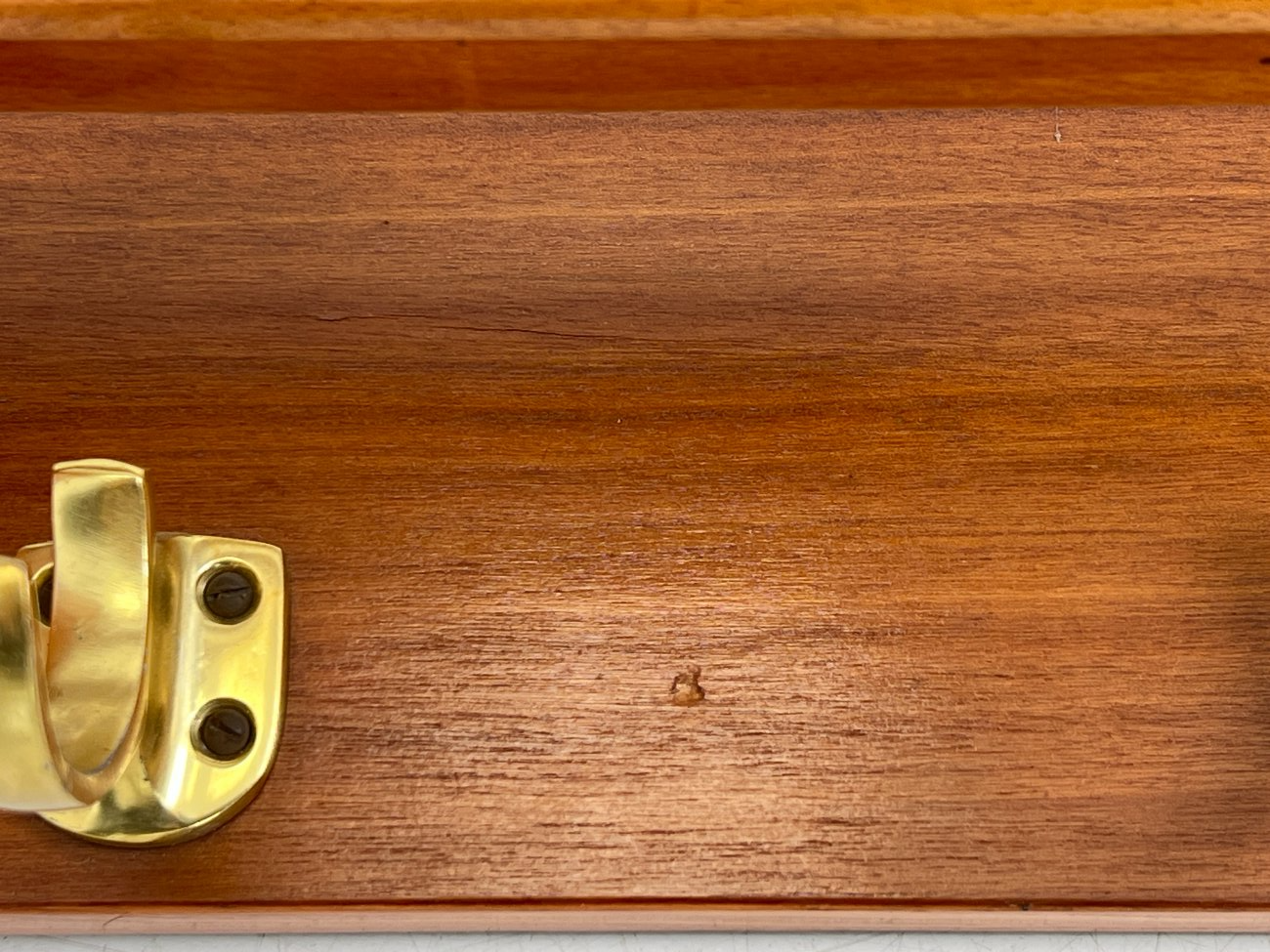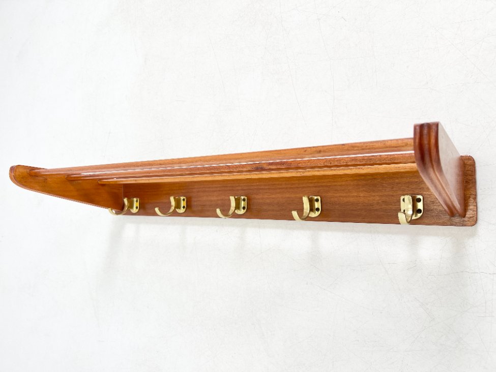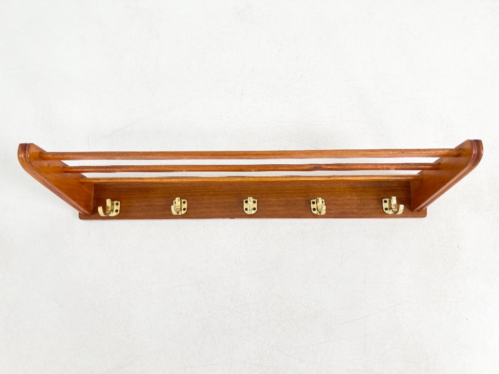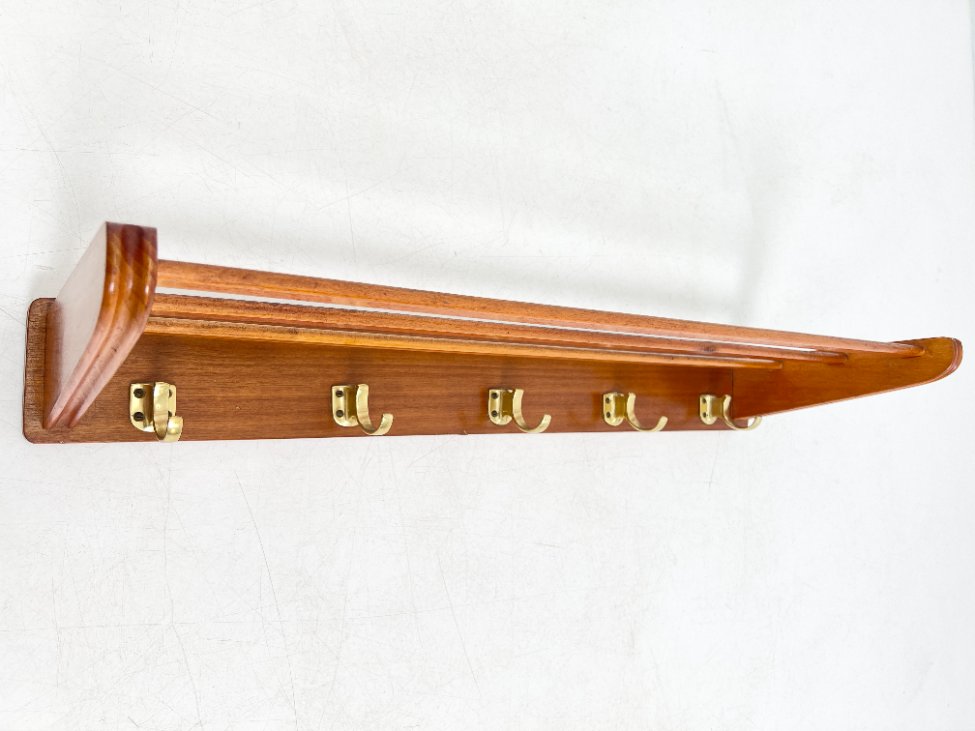 Sieninė medinė kabykla su penkiais aukso spalvos kabliukais 28x80x10 cm