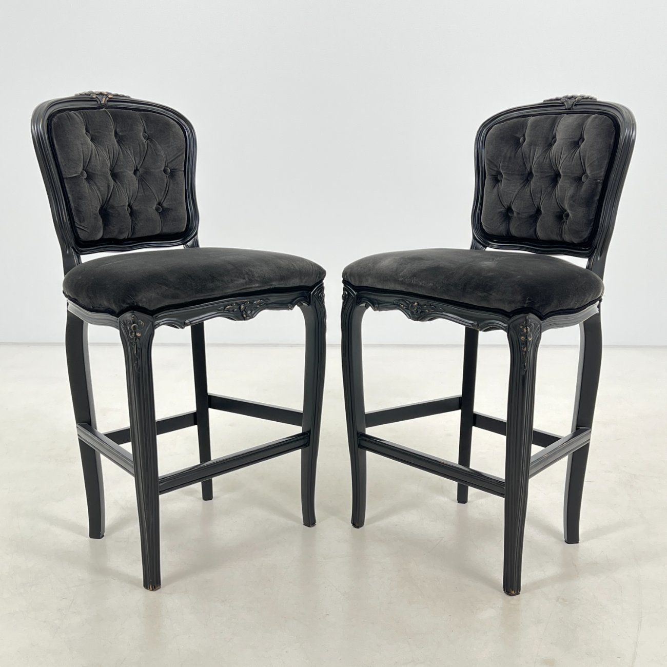 | Papildoma informacija | Sėdimosios dalies aukštis 66 cm. Vietomis apsitrynę medinių rėmų dažai, yra įbrėžimų. Sėdimosiose dalyse priekyje ties viduriu pasidėvėjęs veliūras. |
