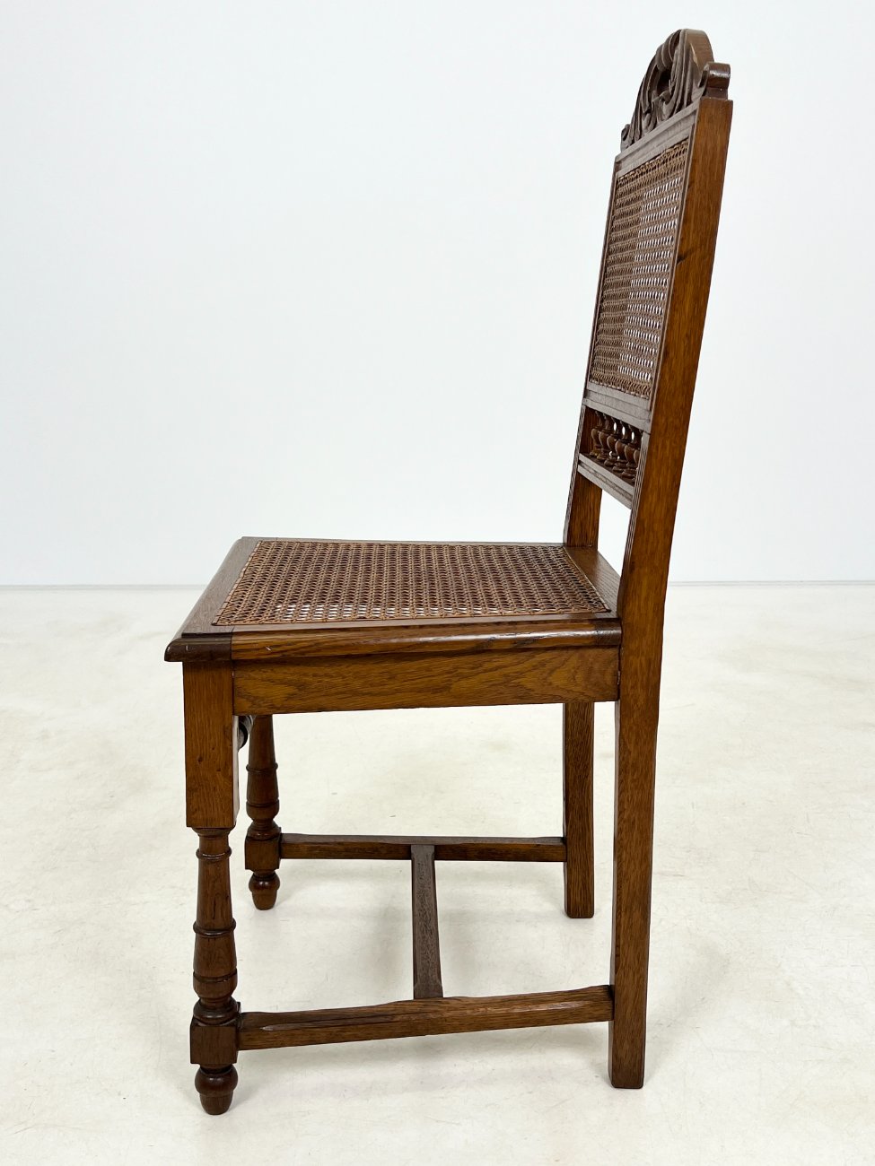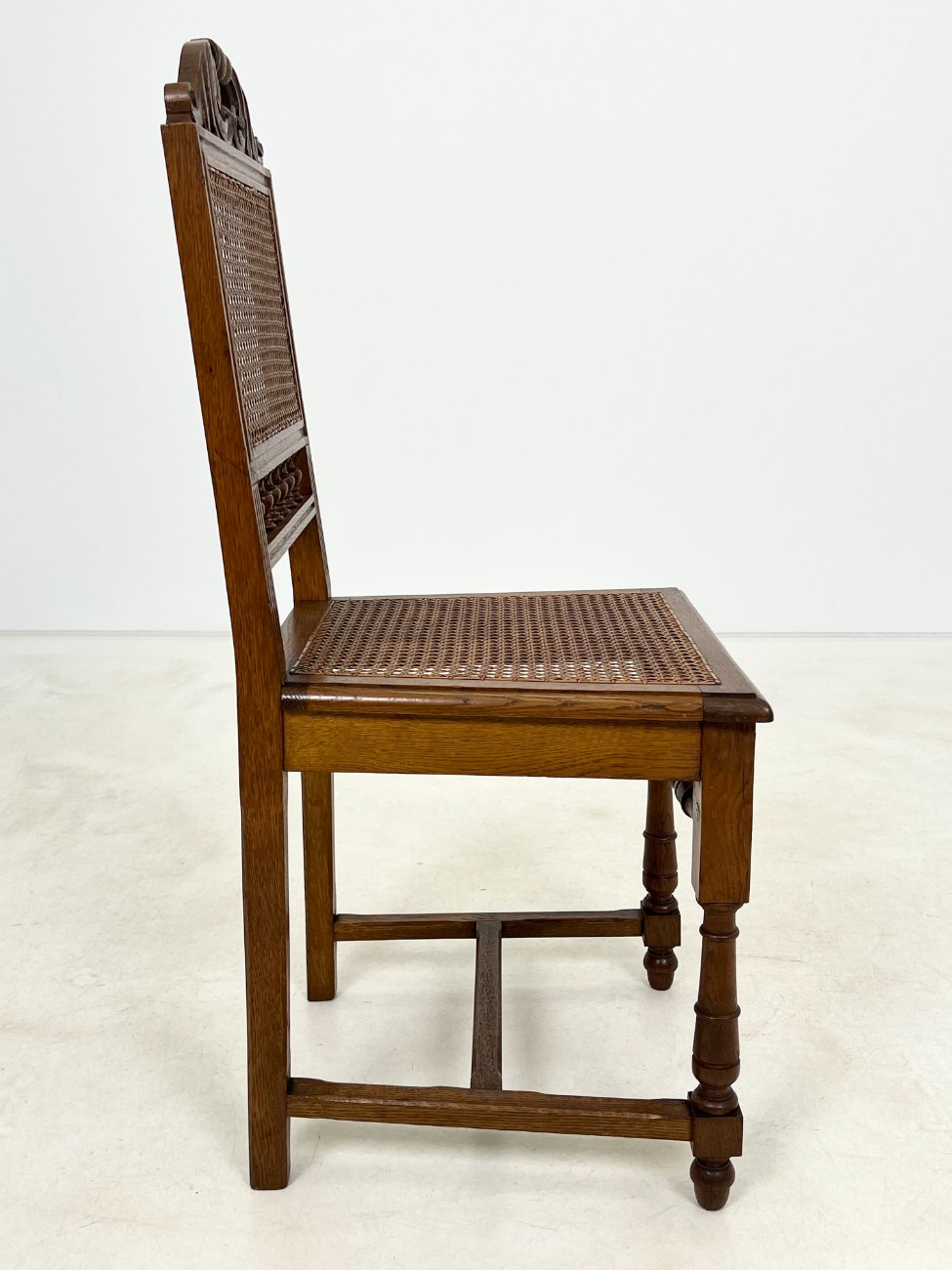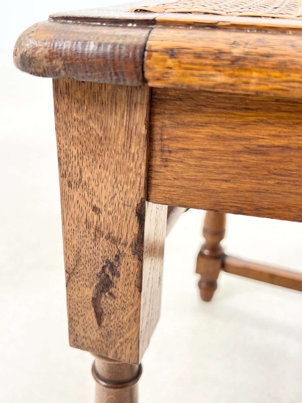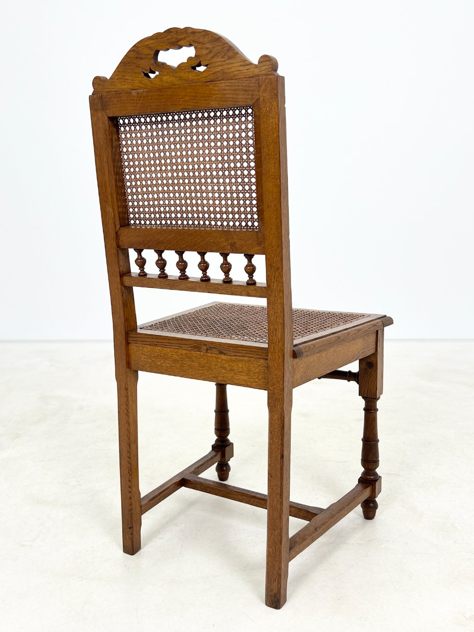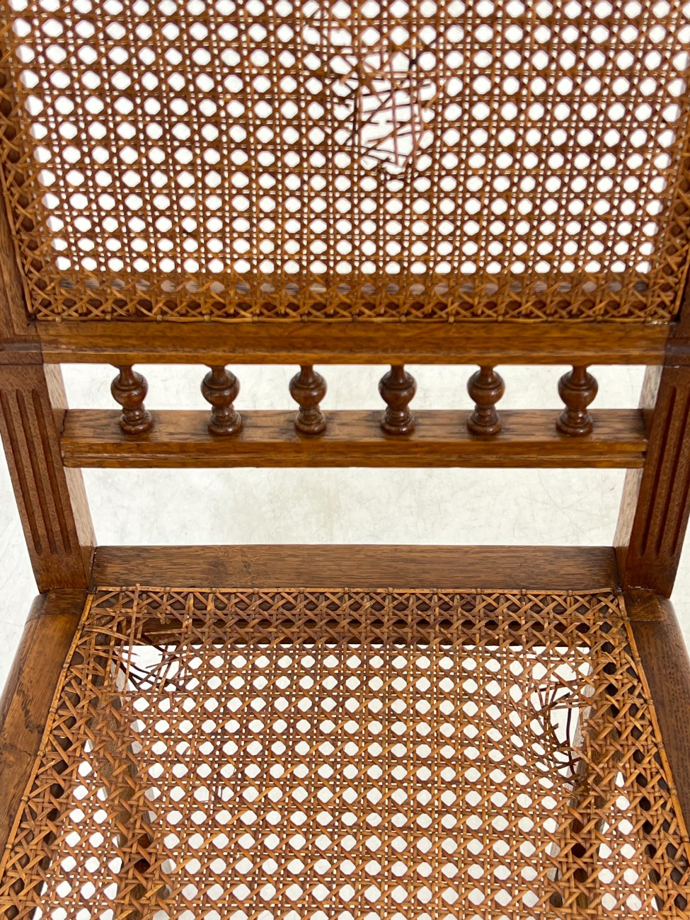 | Papildoma informacija | Sėdimosios dalies aukštis 47 cm. Dviejų kėdžių sėdimųjų dalių ratanai suplyšę. Trijų kėdžių sėdimųjų ir atlošų dalių ratanai suplyšę. Ant visų kėdžių rėmų ir kojų yra pabraižymų, įmušimų. |