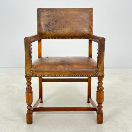 Ąžuolinis krėslas su oda 52x60x90,5 cm, 48 cm