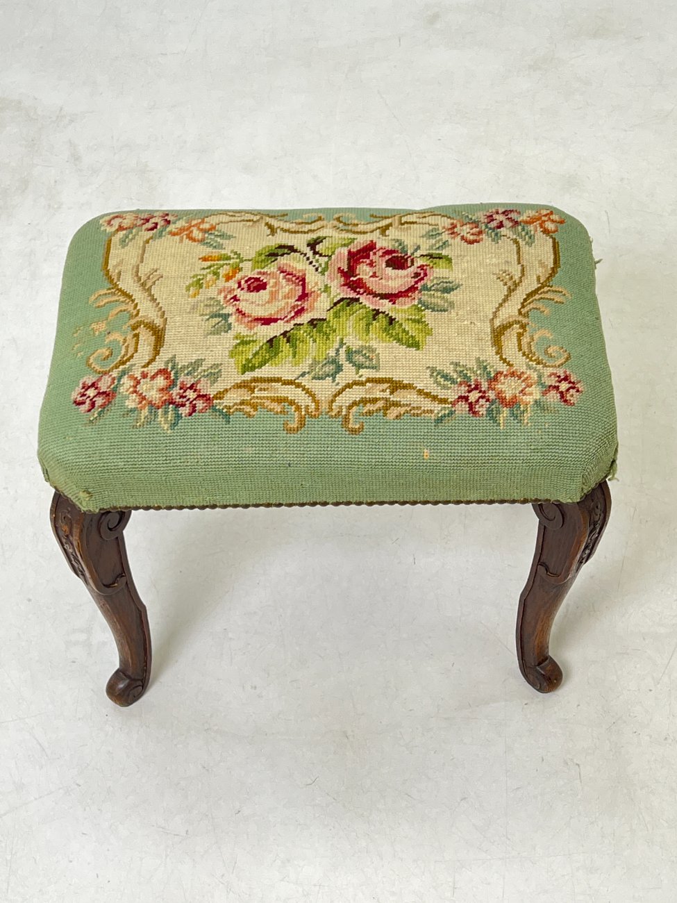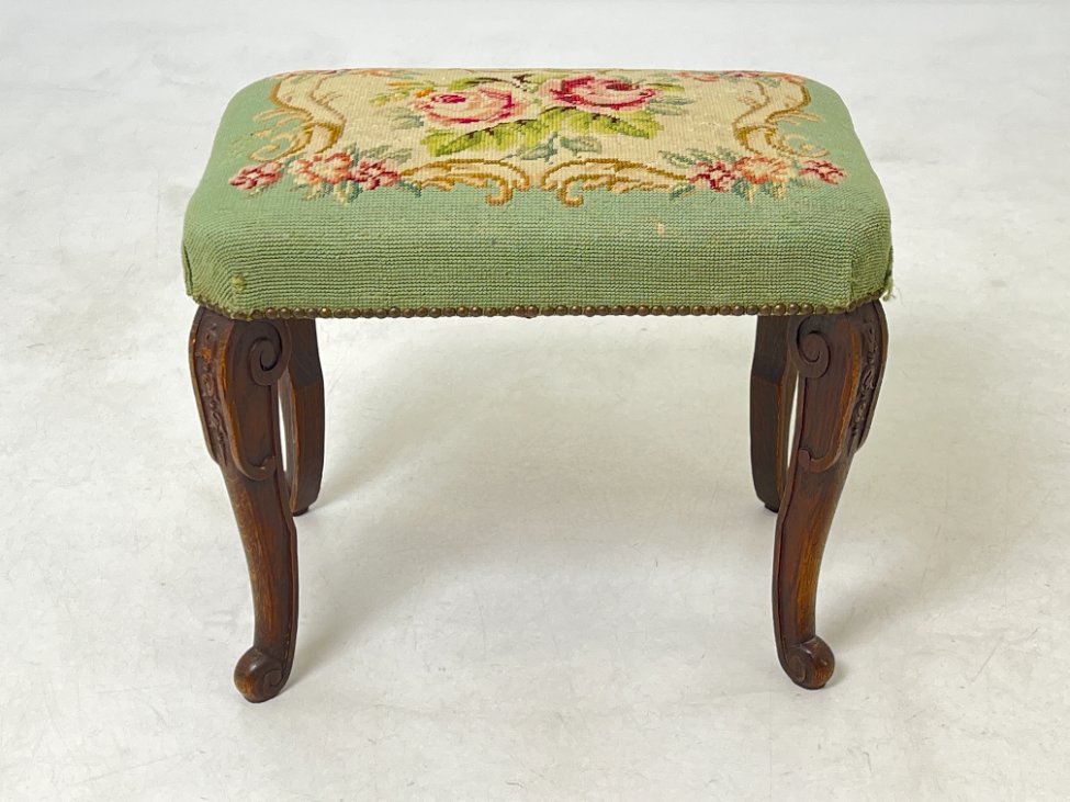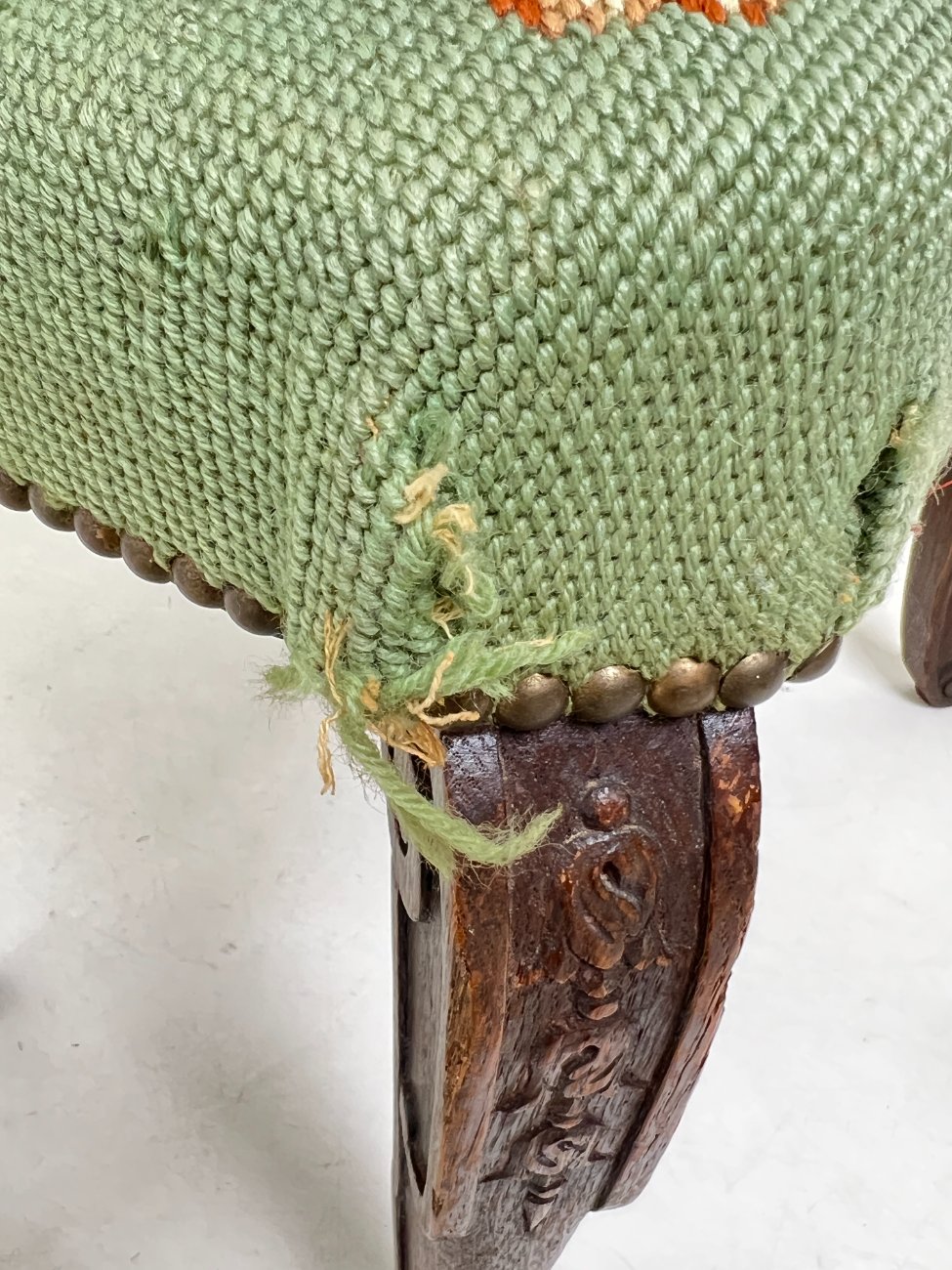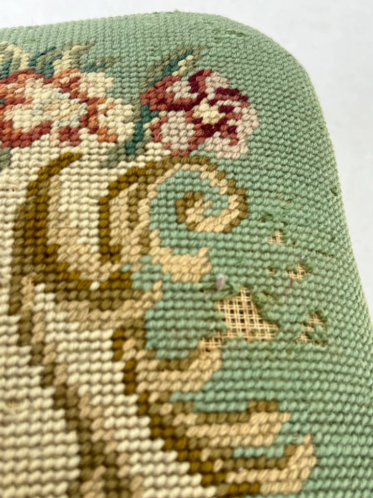| Papildoma informacija | gobelene yra išdilusių vietų,prie vienos kojos yra jo iširusi siūlė,visose kojose yra įmušimų, nusilimų ir balkšvų dėmių |