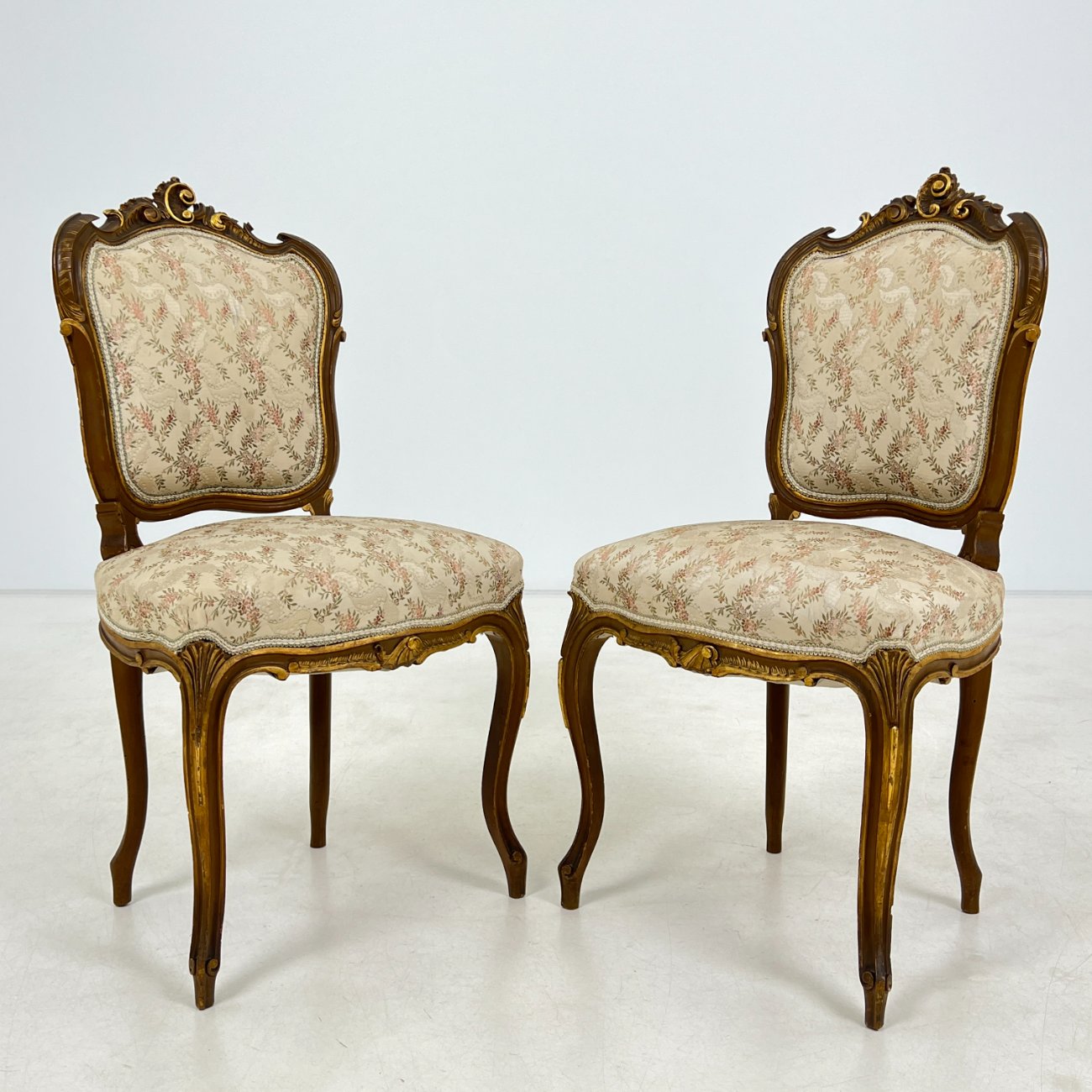 | Papildoma informacija | Ant abiejų kėdžių rėmų ir kojų yra pabraižymų, įmušimų, kinivarpų pažeidimų., Sėdimosios dalies aukštis 49 cm. Abiejų kėdžių atlošų gobelenai suplyšę. Vienos kėdės sėdimosios dalies gobelenas išpurvintas. |
