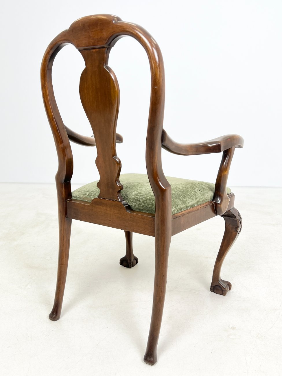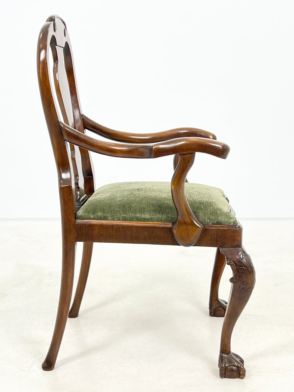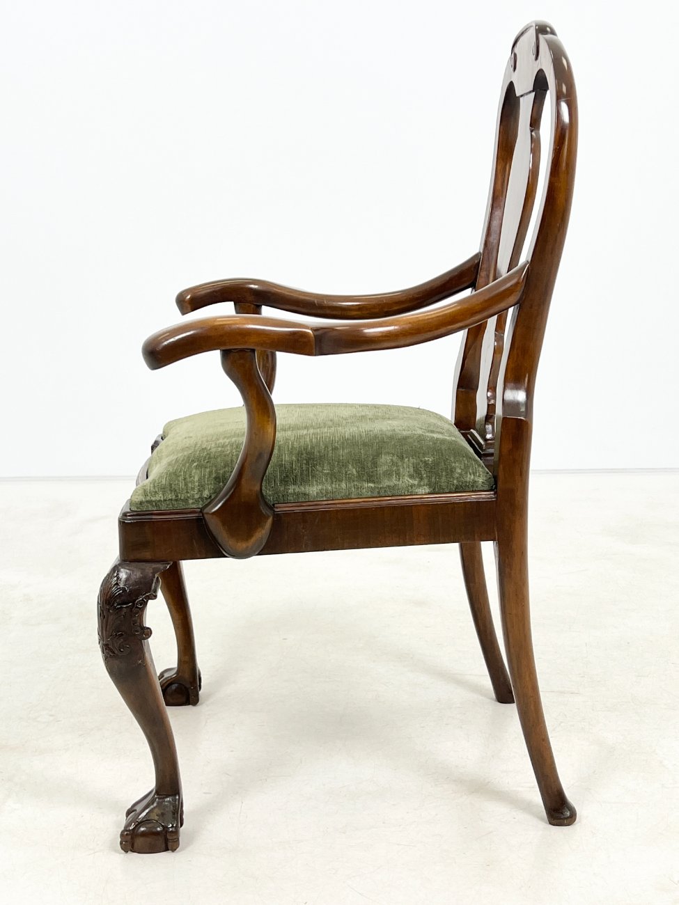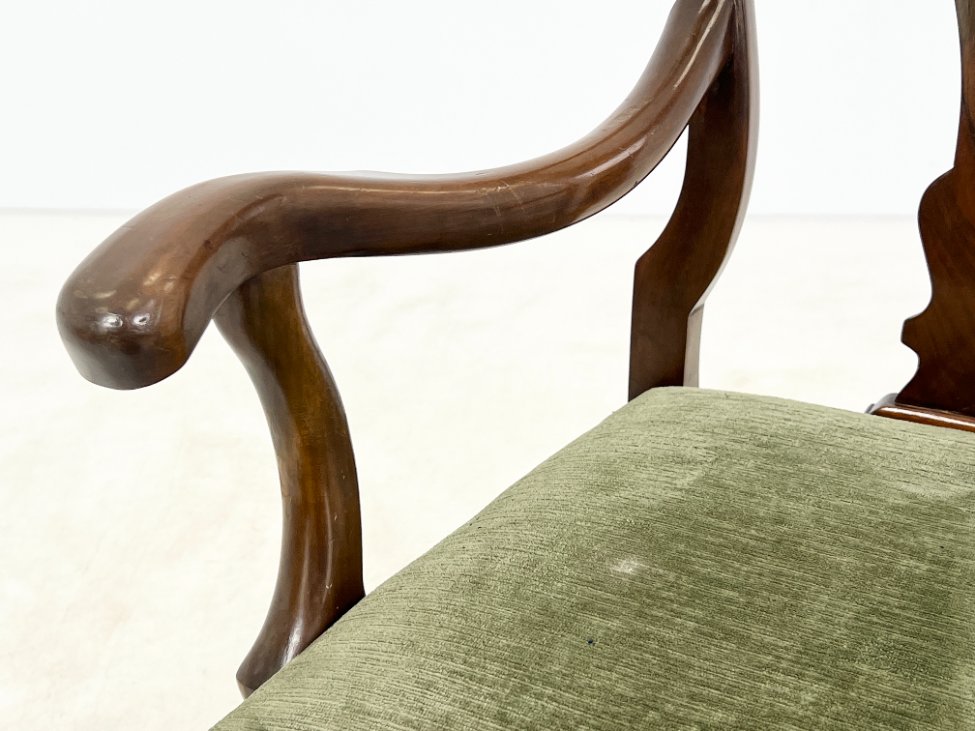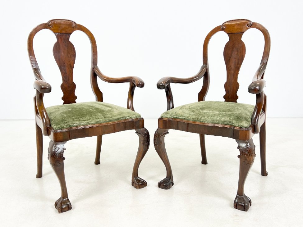 Chippendale stiliaus riešutmedžio krėslai su veliūru 2 vnt. komplektas.