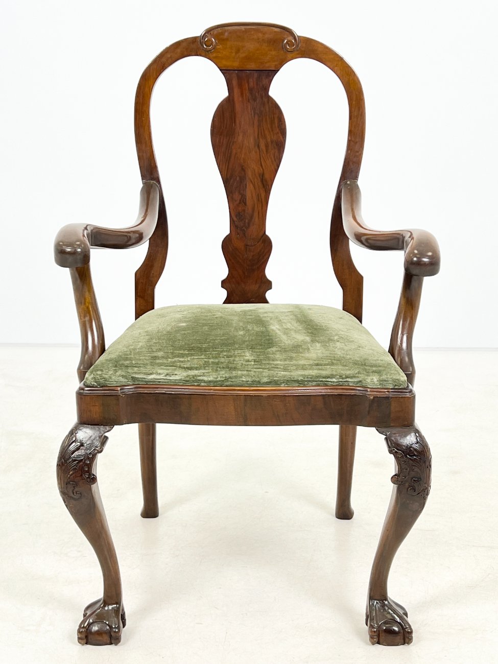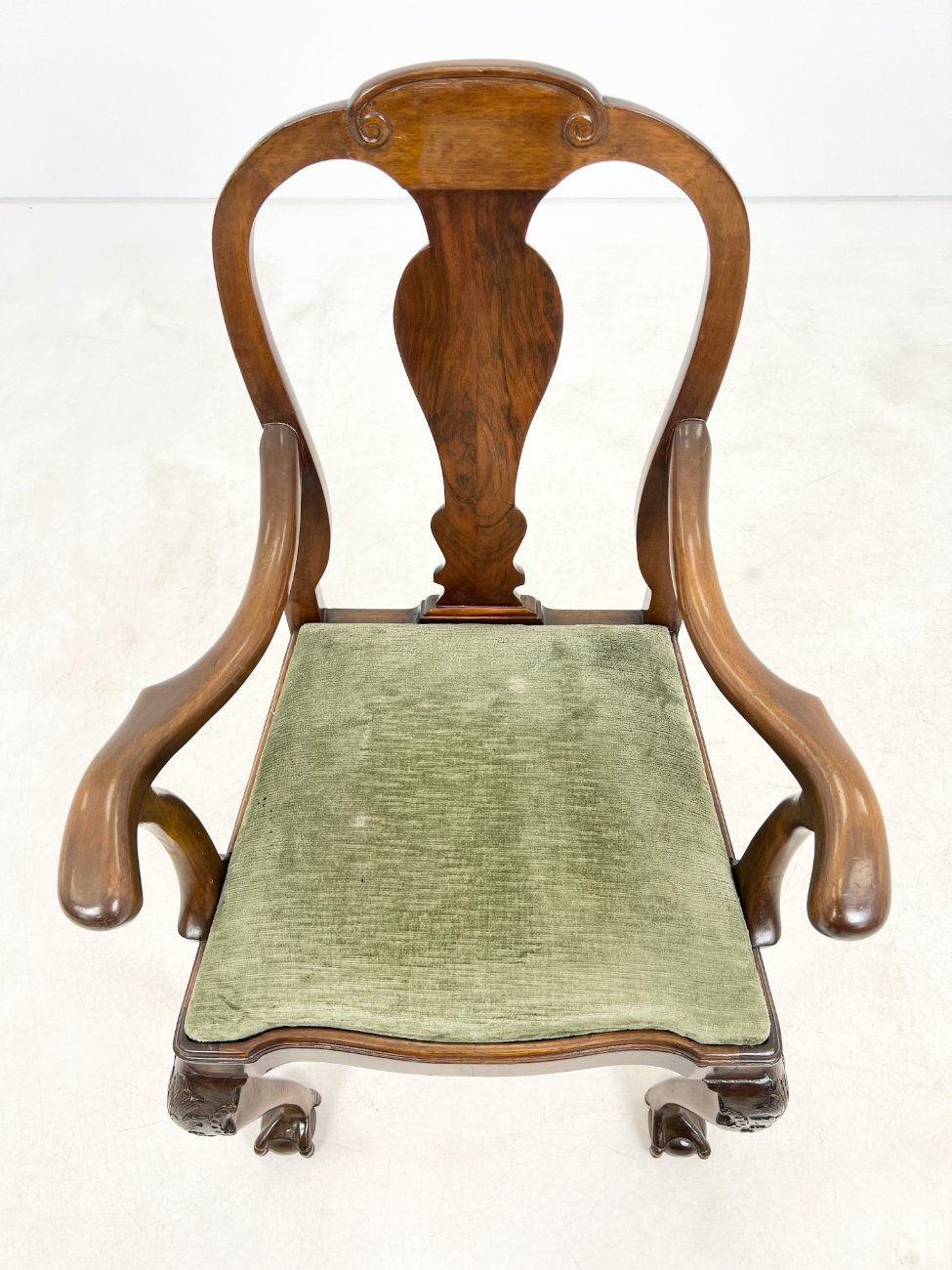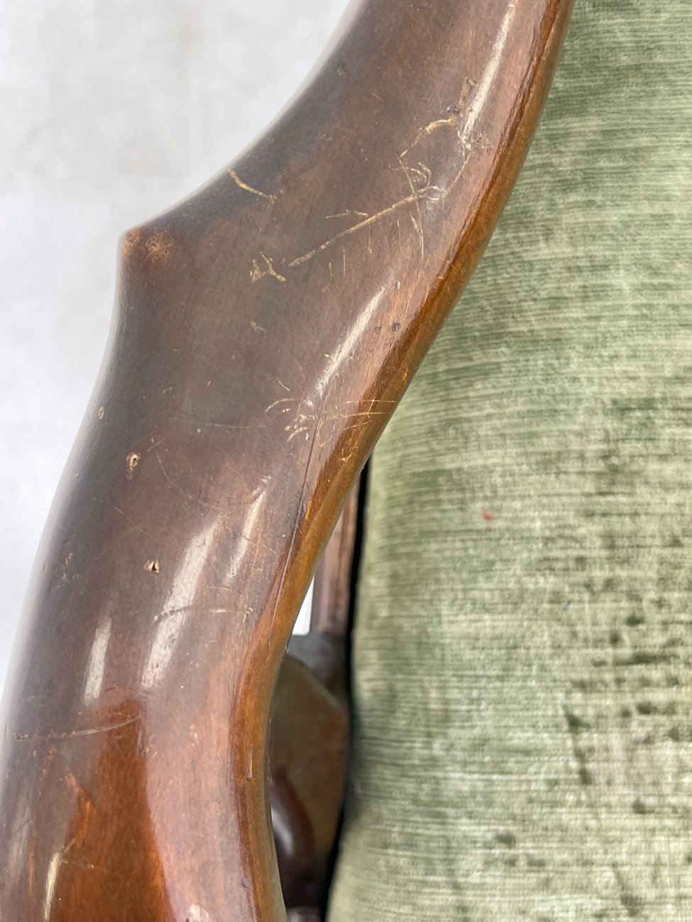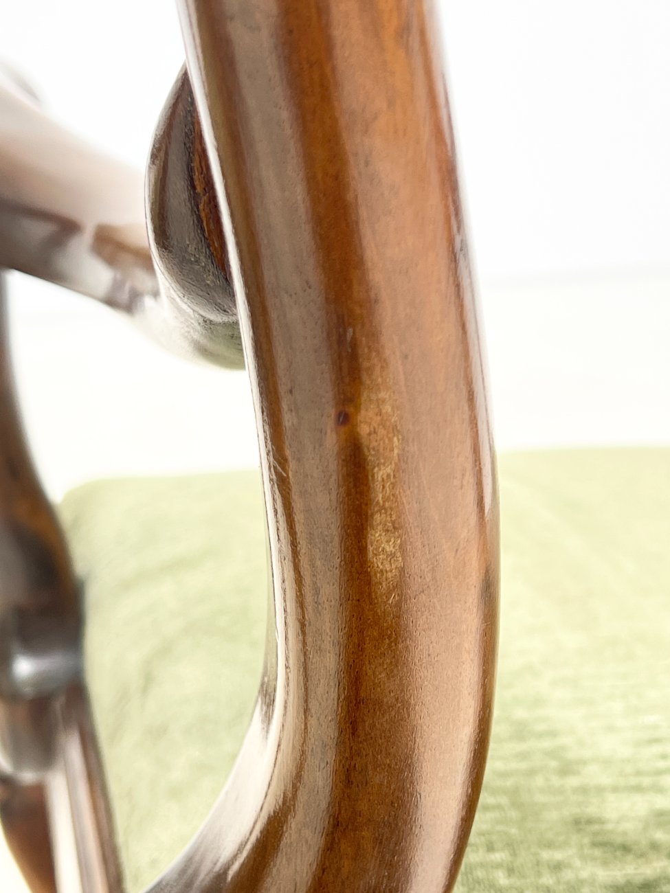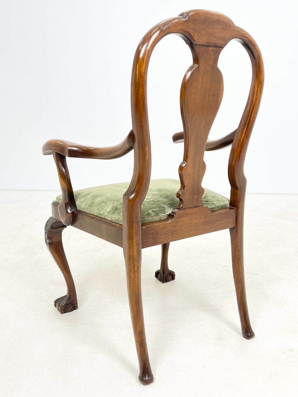 Chippendale stiliaus riešutmedžio krėslai su veliūru 2 vnt. komplektas.