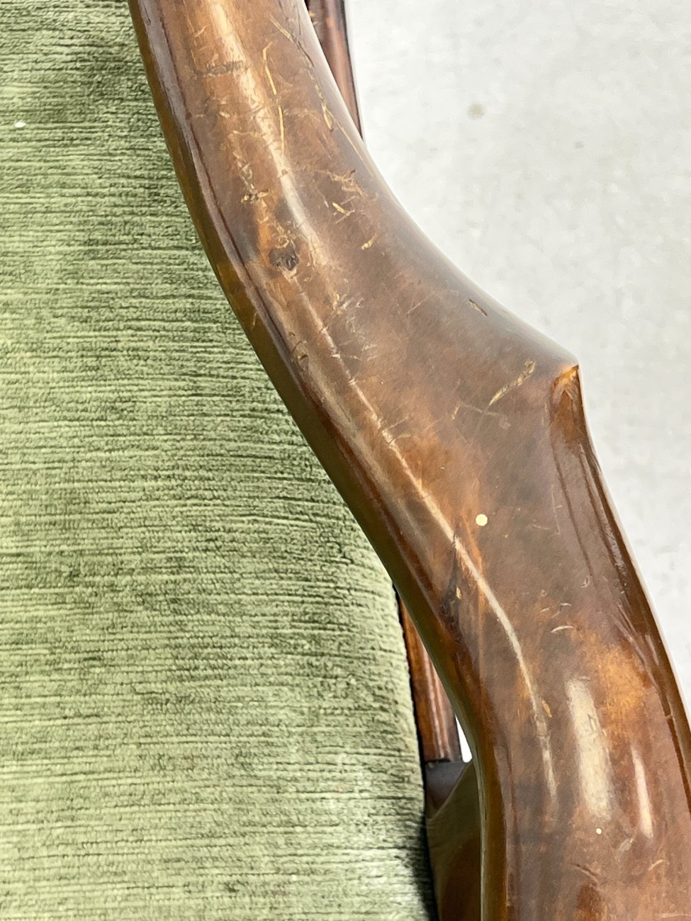 Chippendale stiliaus riešutmedžio krėslai su veliūru 2 vnt. kompl. 59x61x100 cm, 48 cm