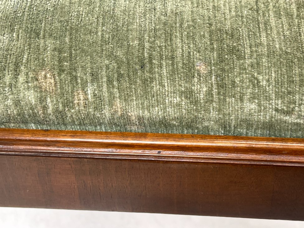| Papildoma informacija | Sėdimosios dalies aukštis 48 cm. Ant abiejų krėslų rėmų ir kojų yra pabraižymų, įmušimų. Ant abiejų krėslų sėdimųjų dalių veliūro yra dėmių. |