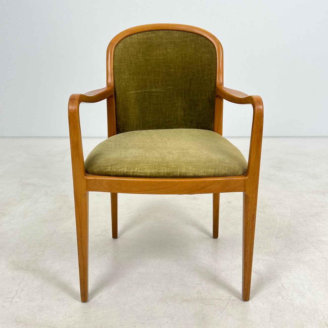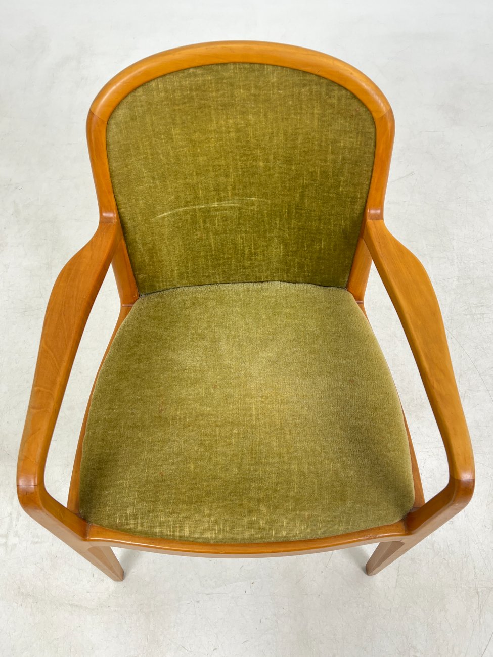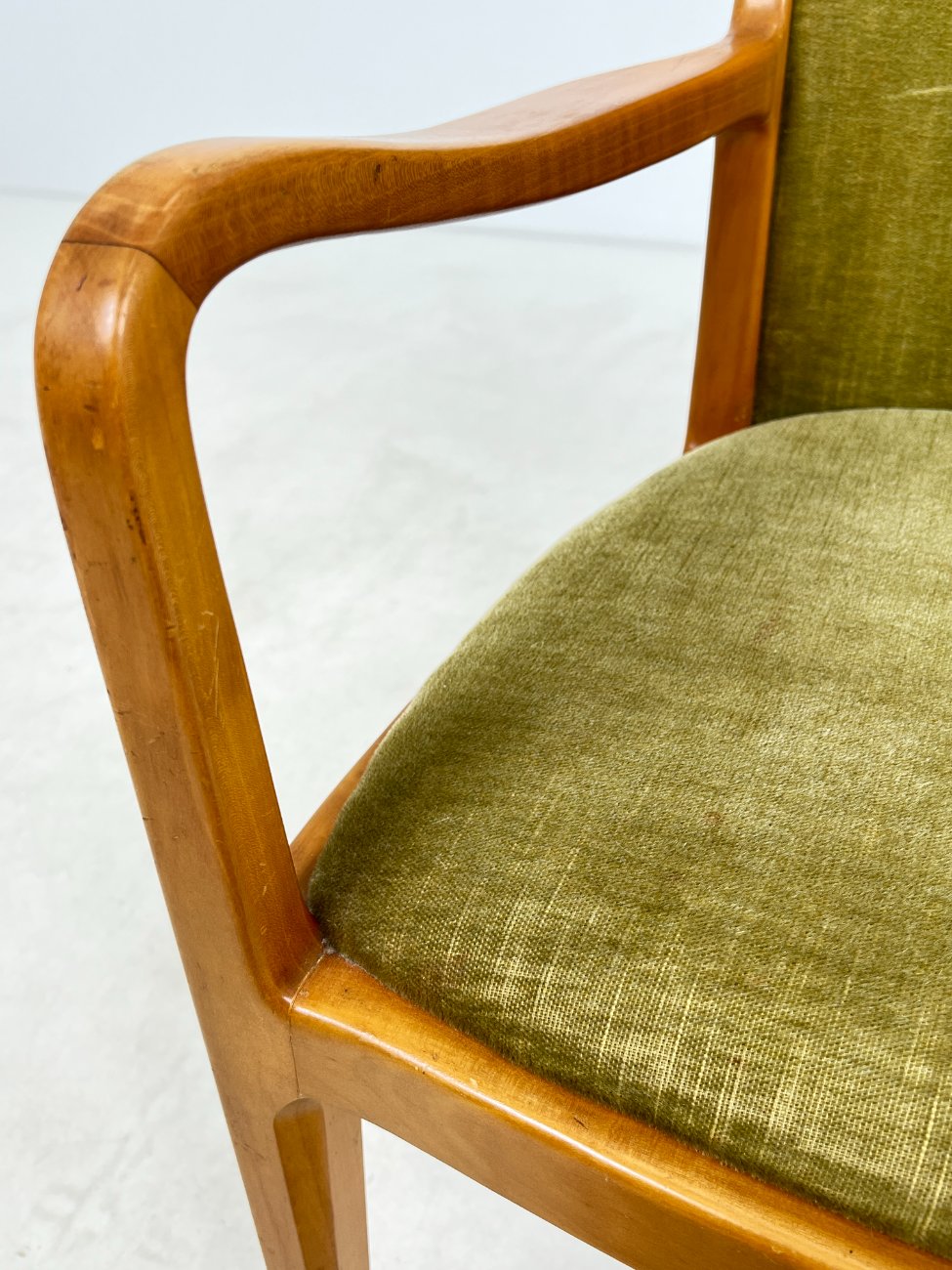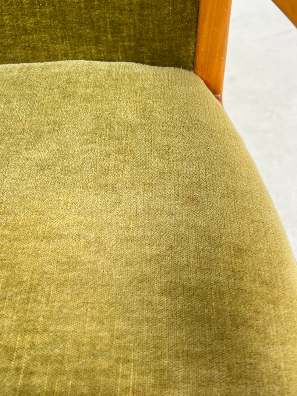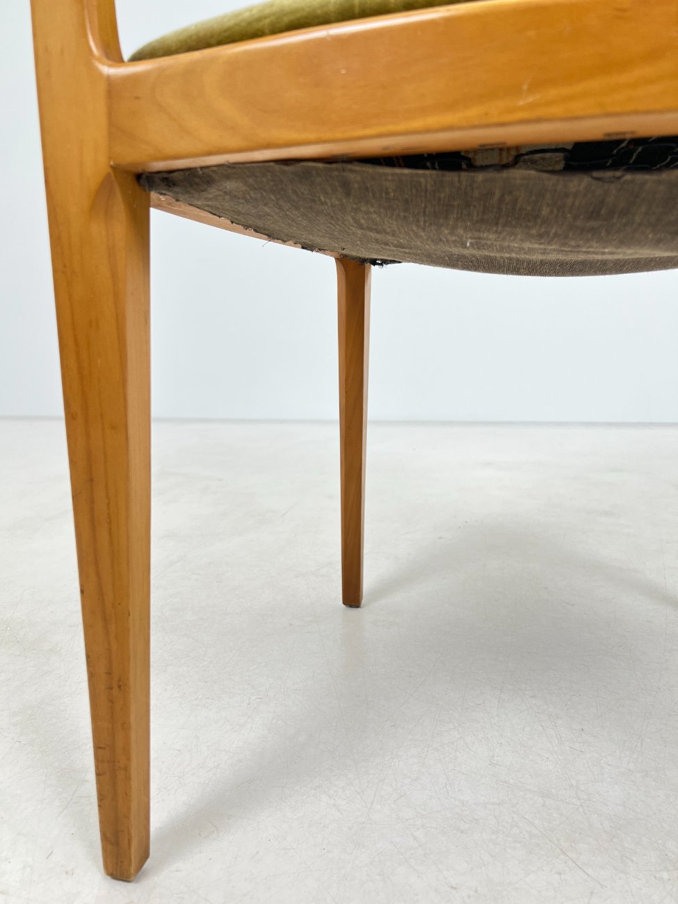 | Papildoma informacija | Sėdimosios dalies aukštis 48 cm. Ant tikmedžio rėmo yra pabraižymų. Ant gobeleno yra dėmių. |