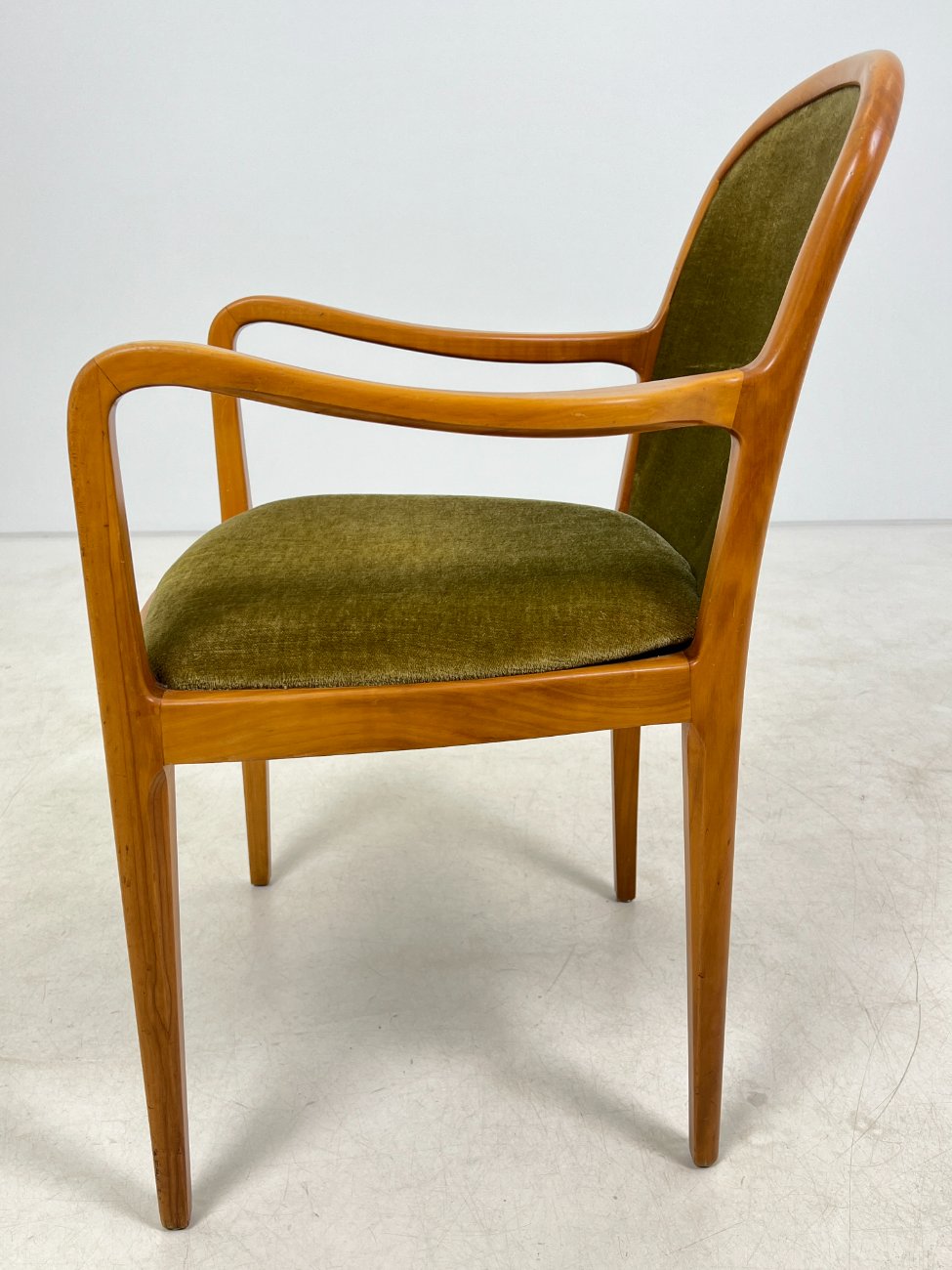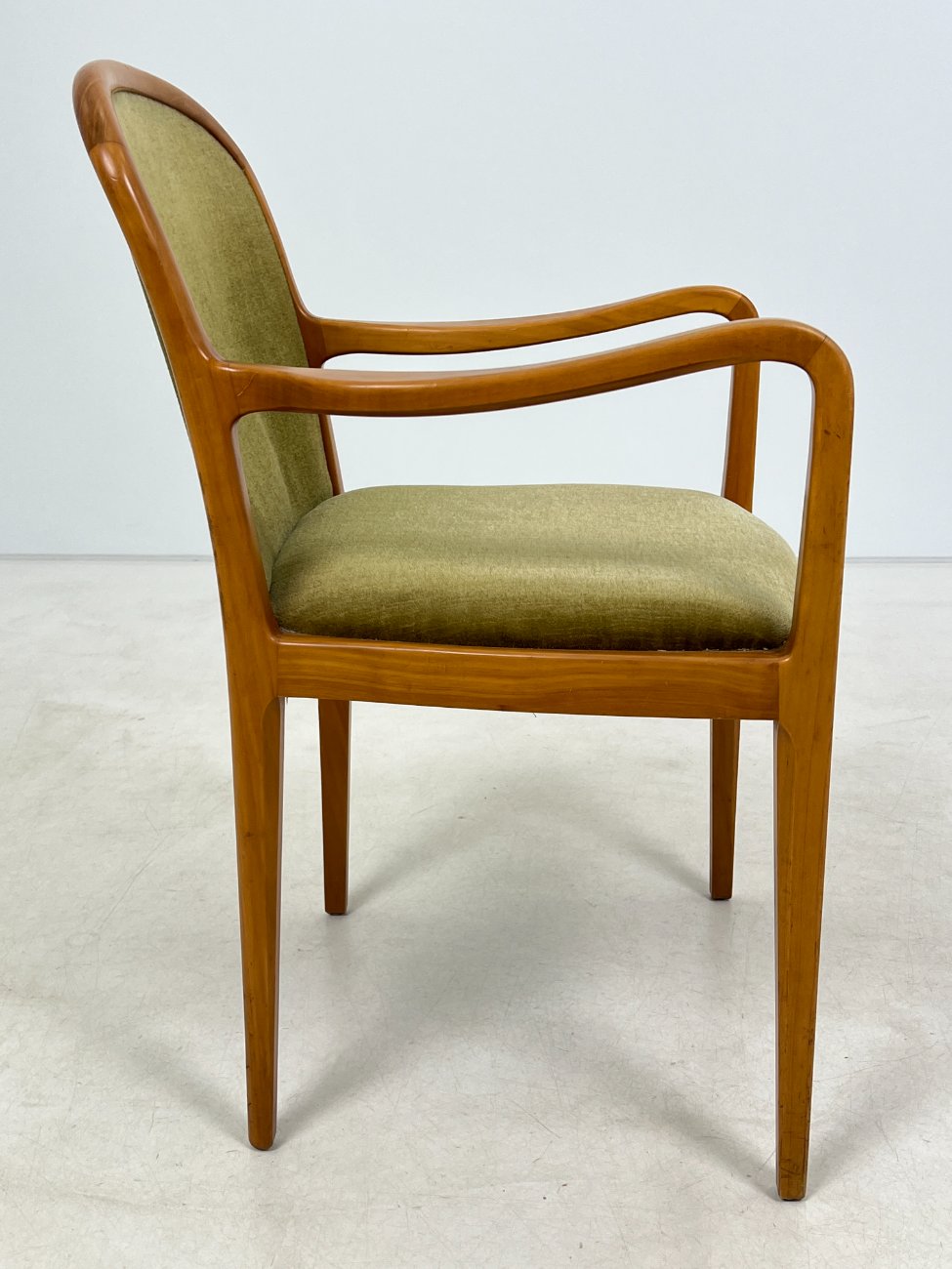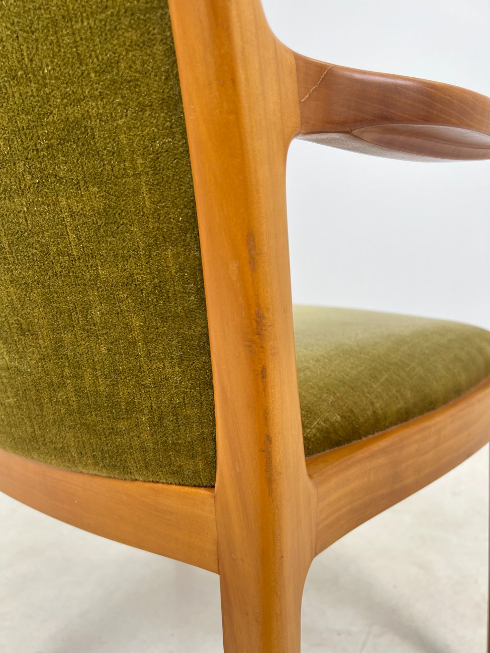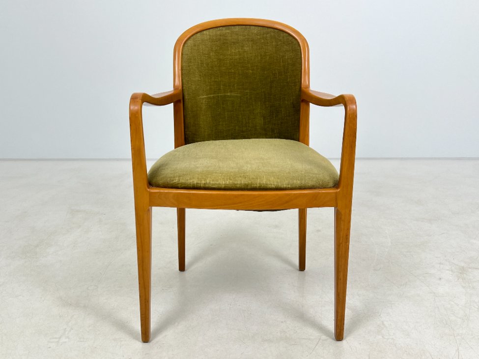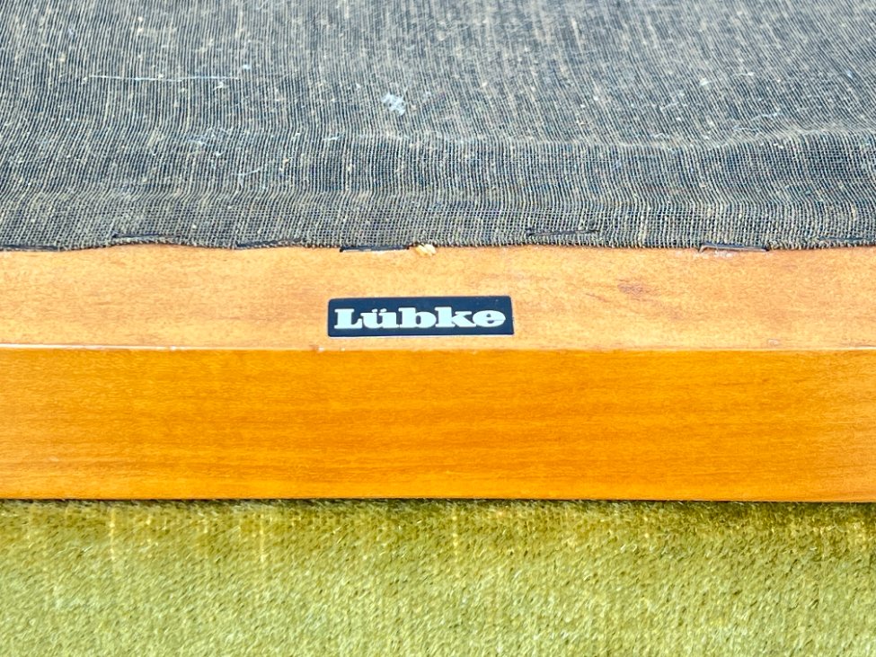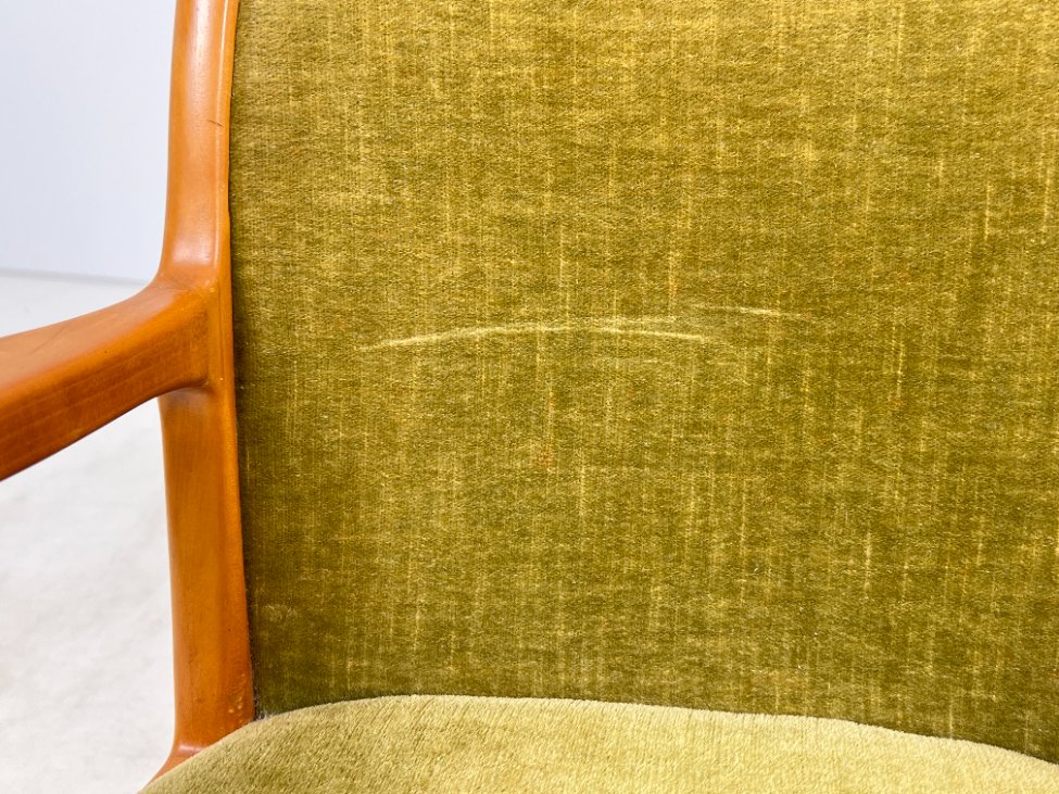 Mid Century “Lübke” tikmedžio krėslas su gobelenu.