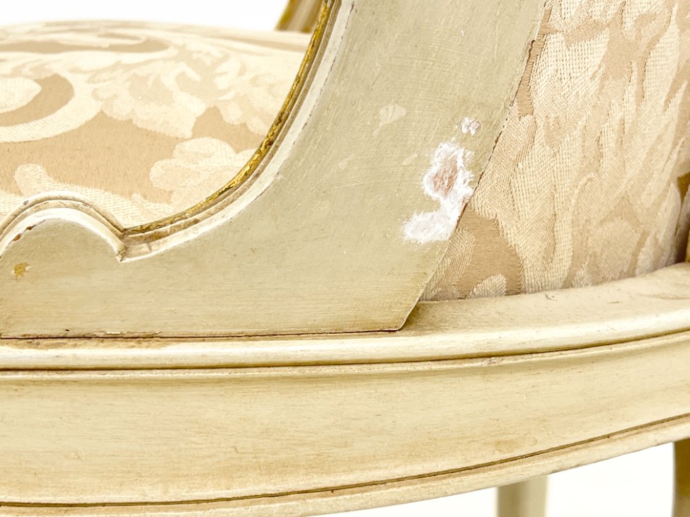 | Papildoma informacija | Sėdimosios dalies aukštis 46 cm. Ant rėmo ir kojų yra pabraižymų, įmušimų, dažų pažeidimų. |