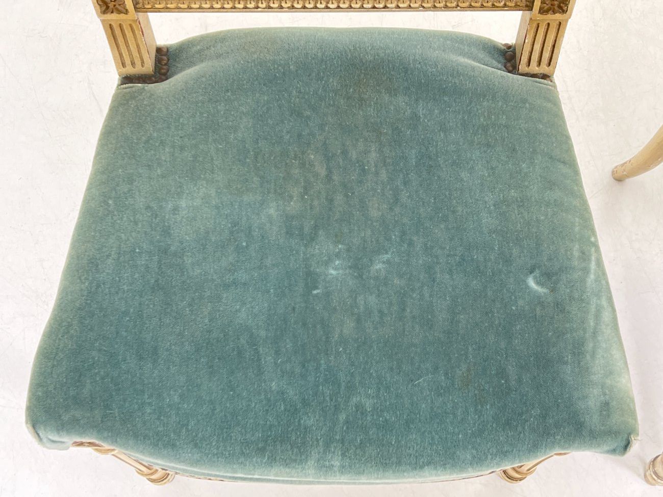 | Papildoma informacija | Sėdimosios dalies aukštis 48 cm. Visų kėdžių gobelenai išpurvinti. Visų kėdžių rėmų ir kojų dažai pabraižyti. |