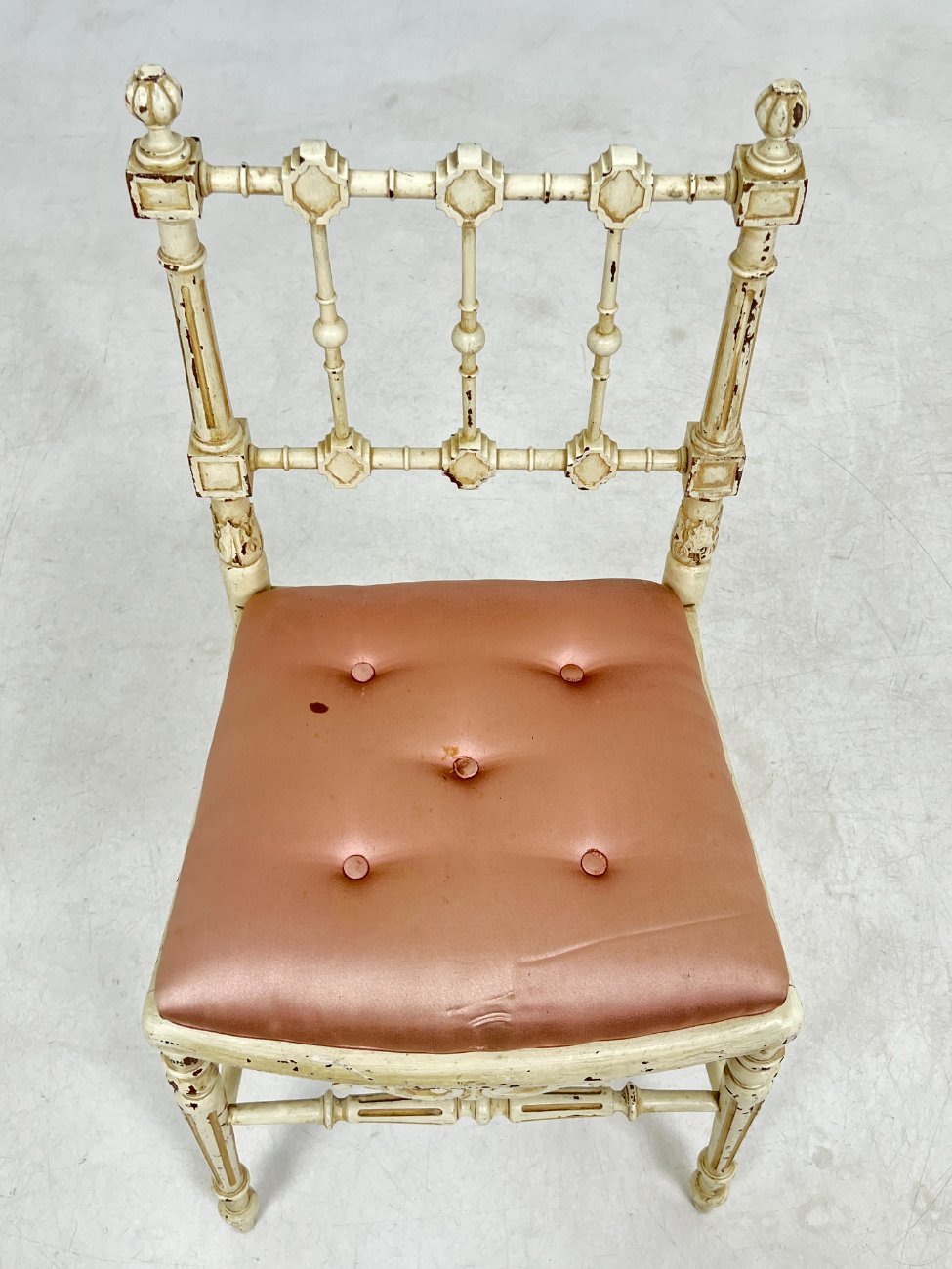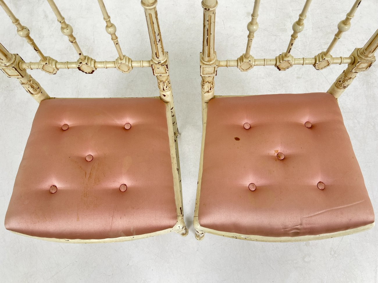 | Papildoma informacija | Sėdimosios dalies aukštis 51 cm. Ant abiejų kėdžių gobelenų yra dėmių. Abiejų kėdžių rėmų ir kojų pažeisti dažai. |