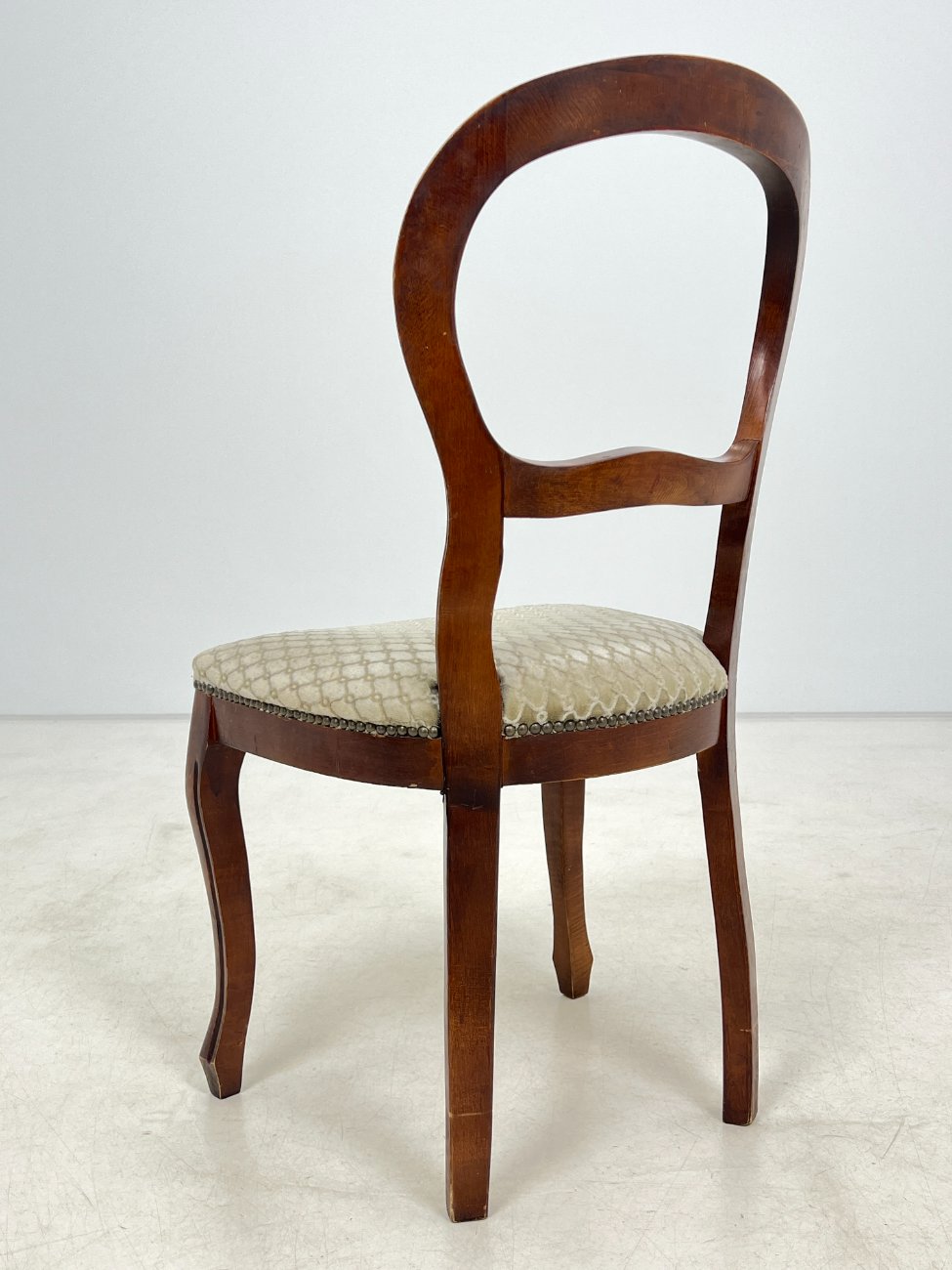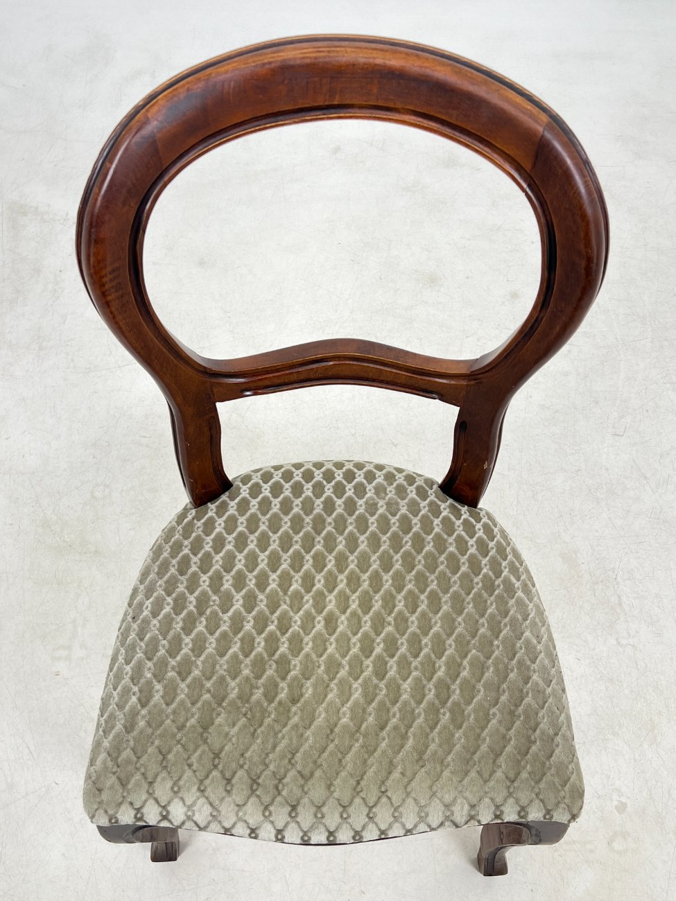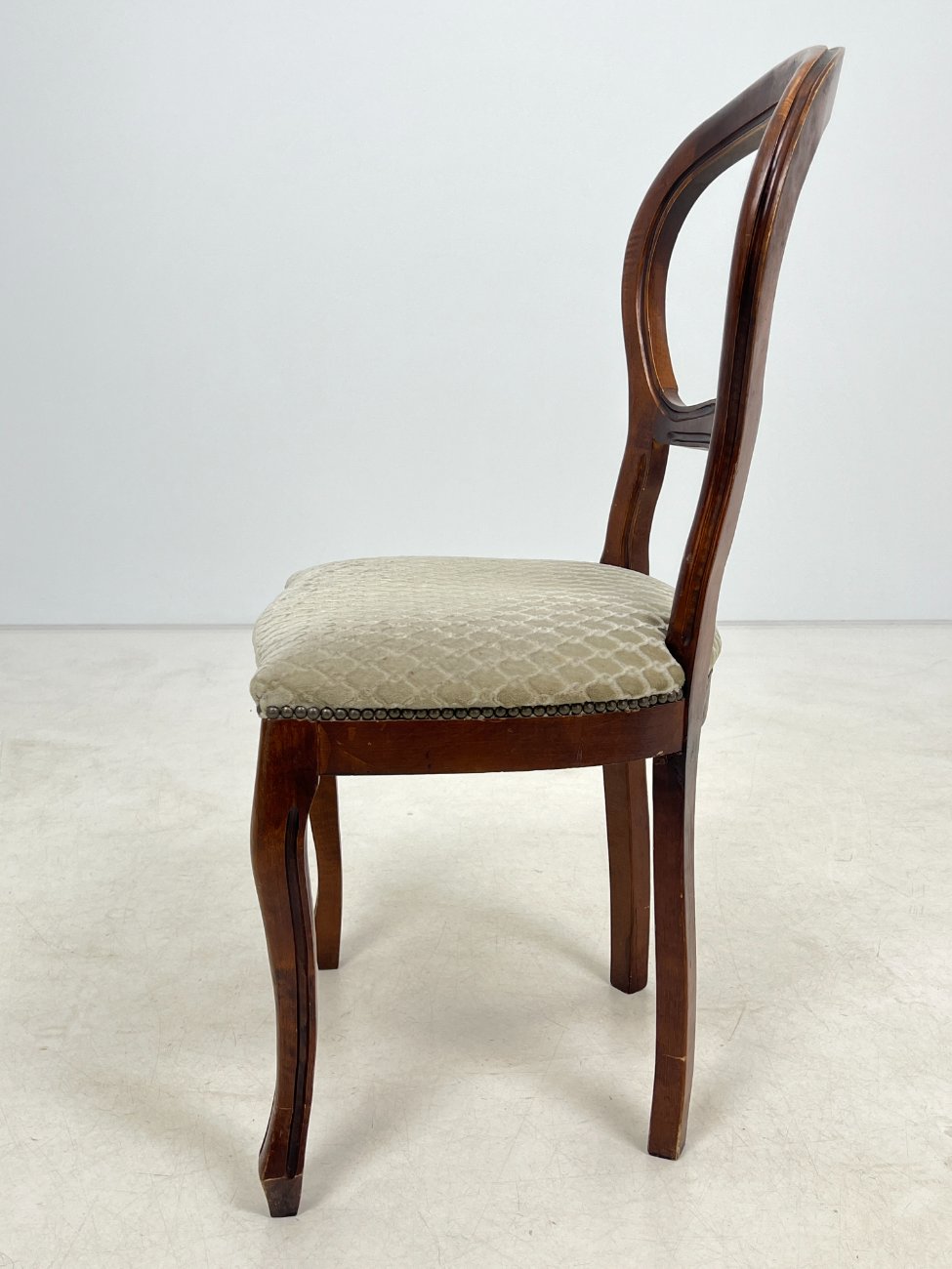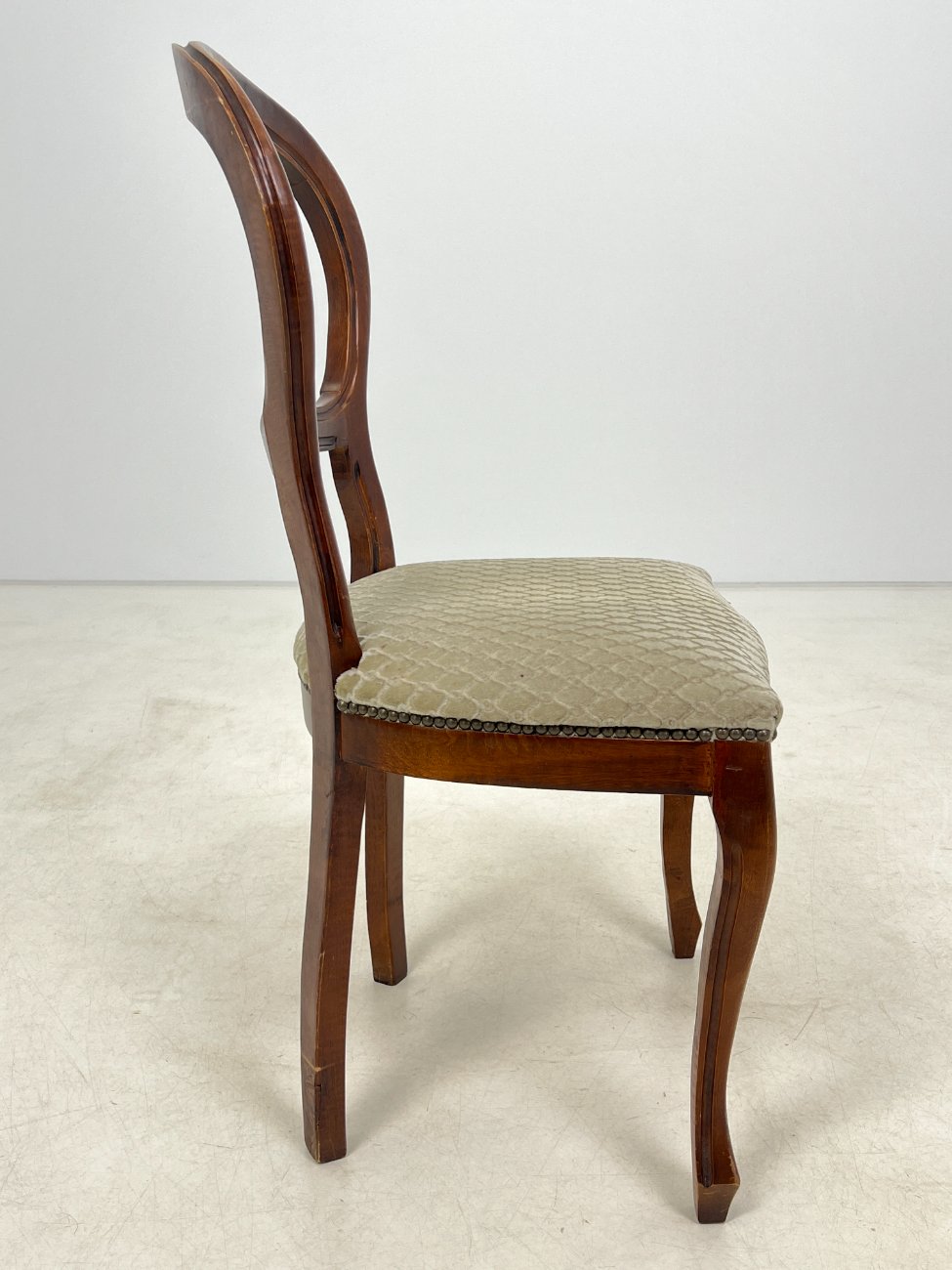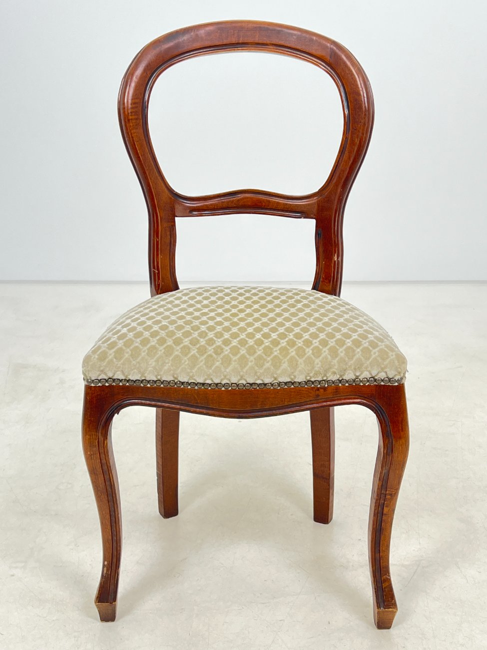 | Papildoma informacija | Sėdimosios dalies aukštis 48 cm. Ant gobeleno yra dėmelių. Vietomis nežymiai pabraižytas rėmas. Vertikaliai įskilusi galinės dešinės kojos apačia |
