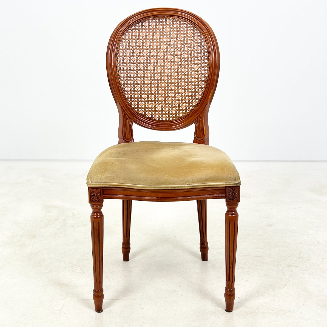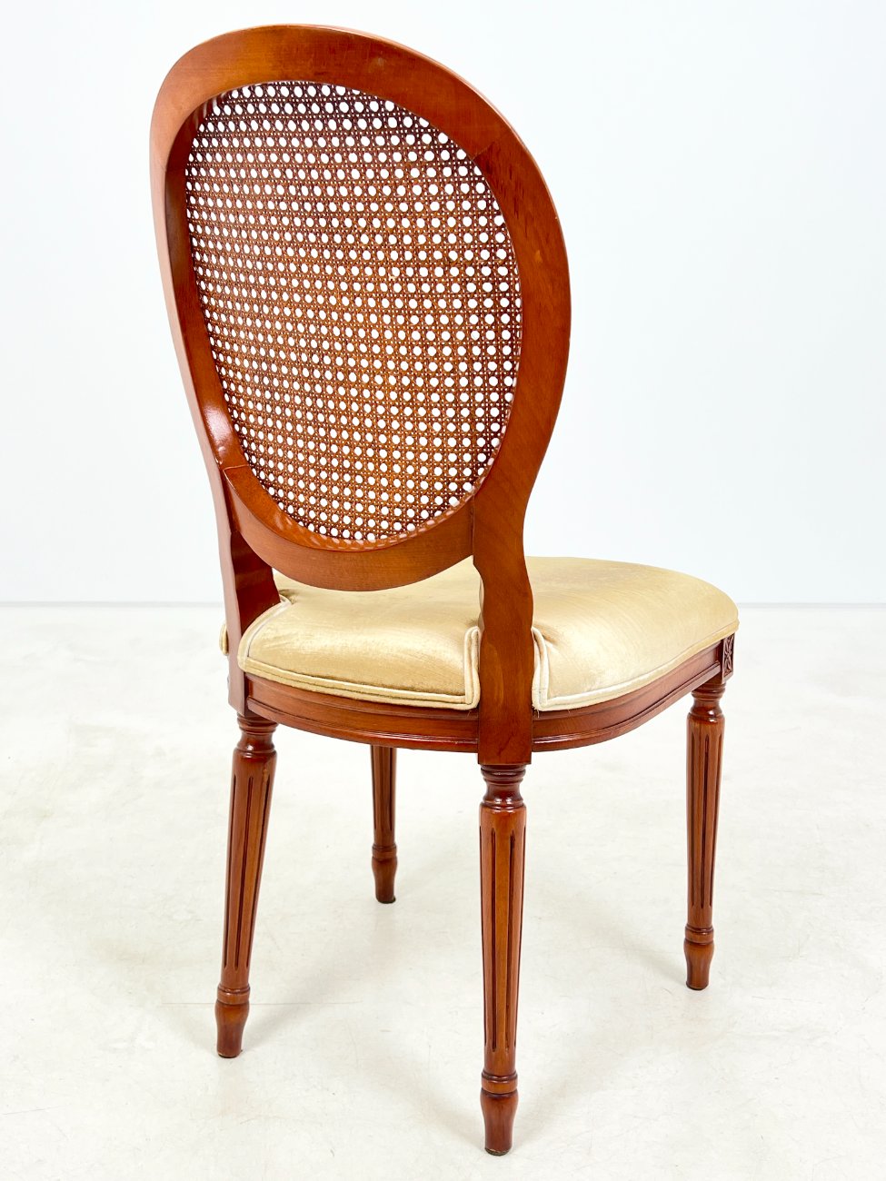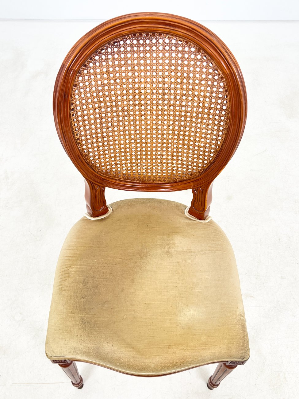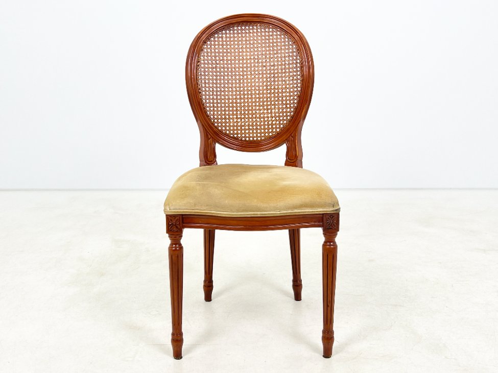 Riešutmedžio kėdė su gobeleno sėdimąja ir ratano atlošu 56x49x98 cm, 50 cm