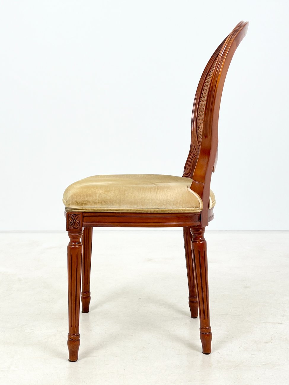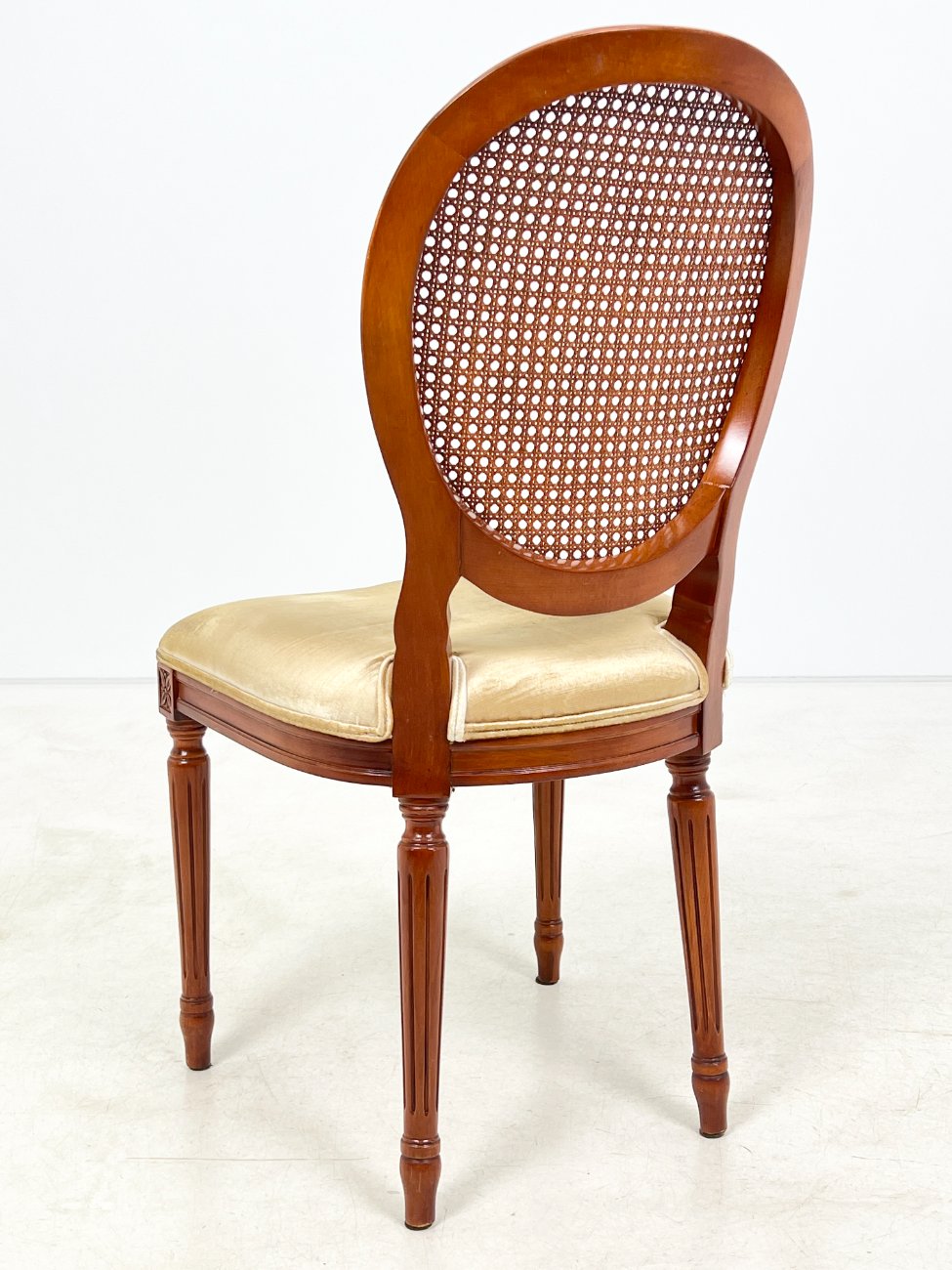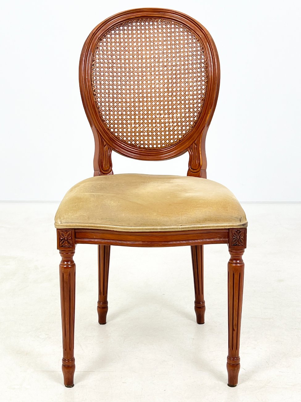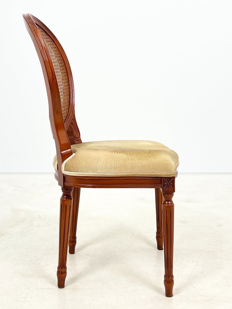 Riešutmedžio kėdė su gobeleno sėdimąja ir ratano atlošu 56x49x98 cm, 50 cm