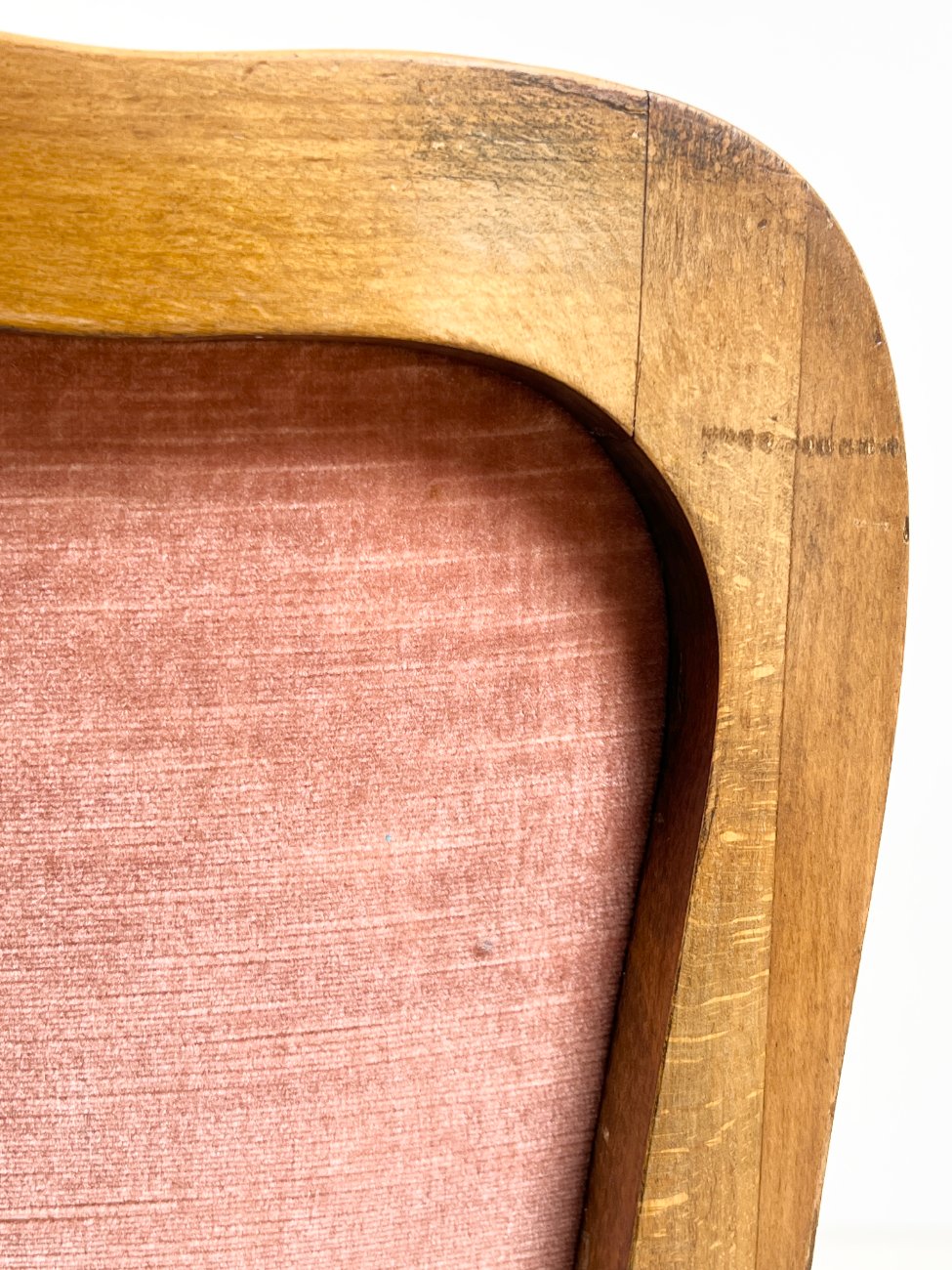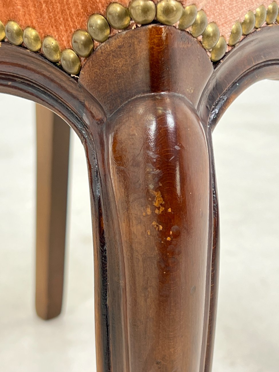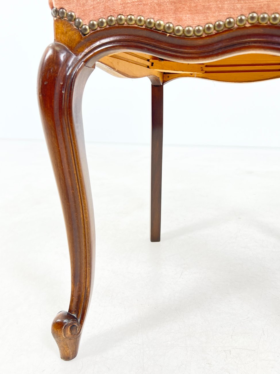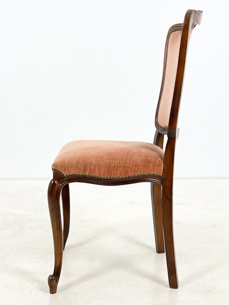 Riešutmedžio kėdės su rausvos spalvos gobelenu 6 vnt. komplektas.