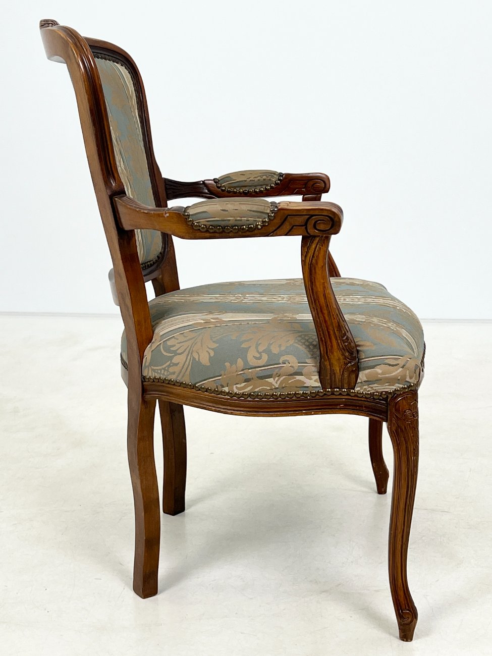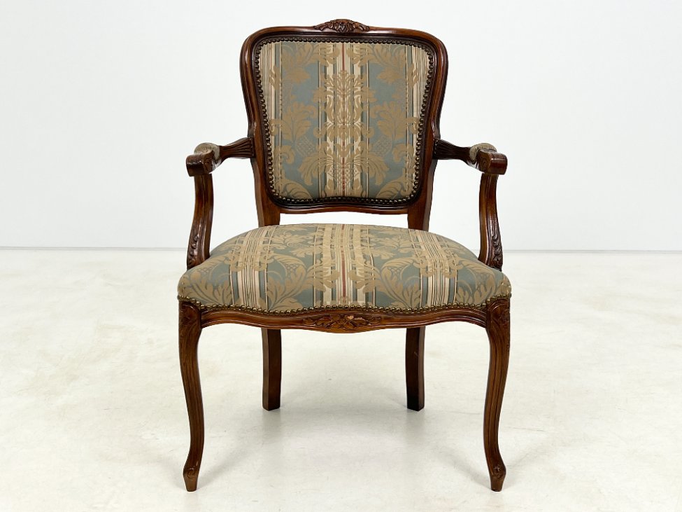 | Papildoma informacija | Sėdimosios dalies aukštis 44 cm. Yra rėmo ir kojų pabraižymų, dešiniajame porankyje pakitusi medienos dažų spalva. Pasidėvėjęs ir išpurvintas porankių gobelenas. |