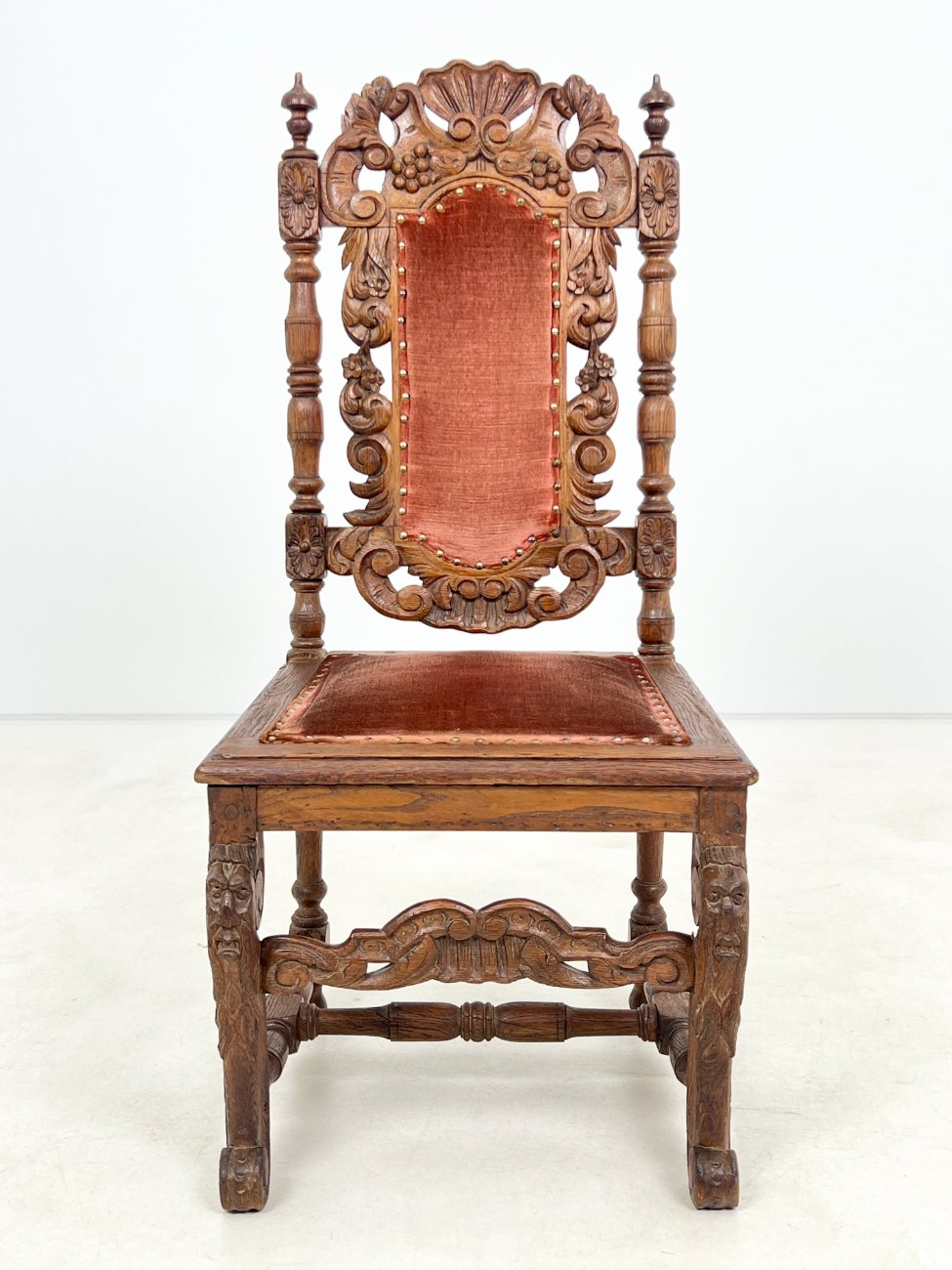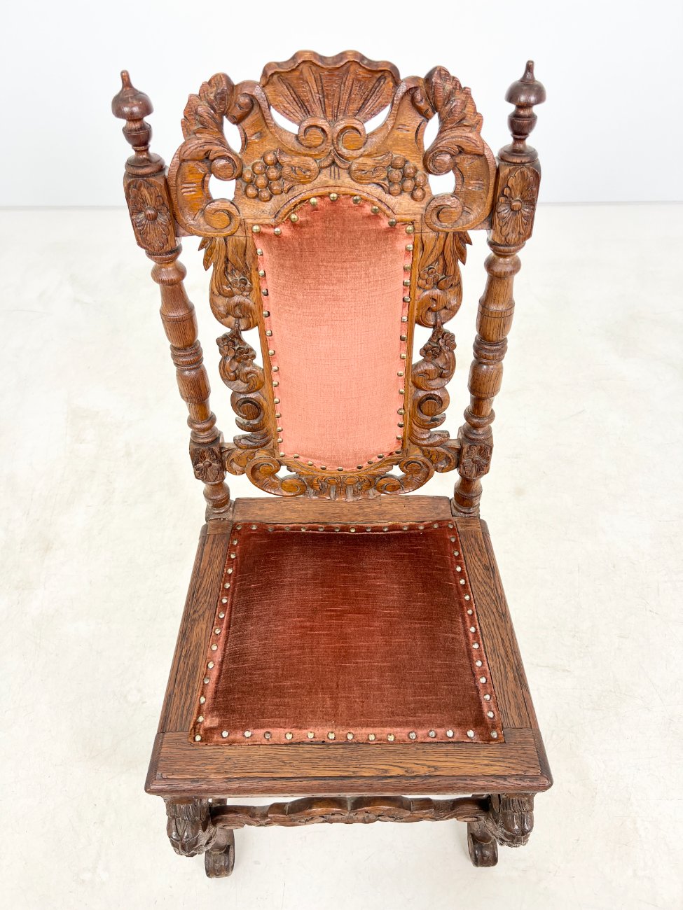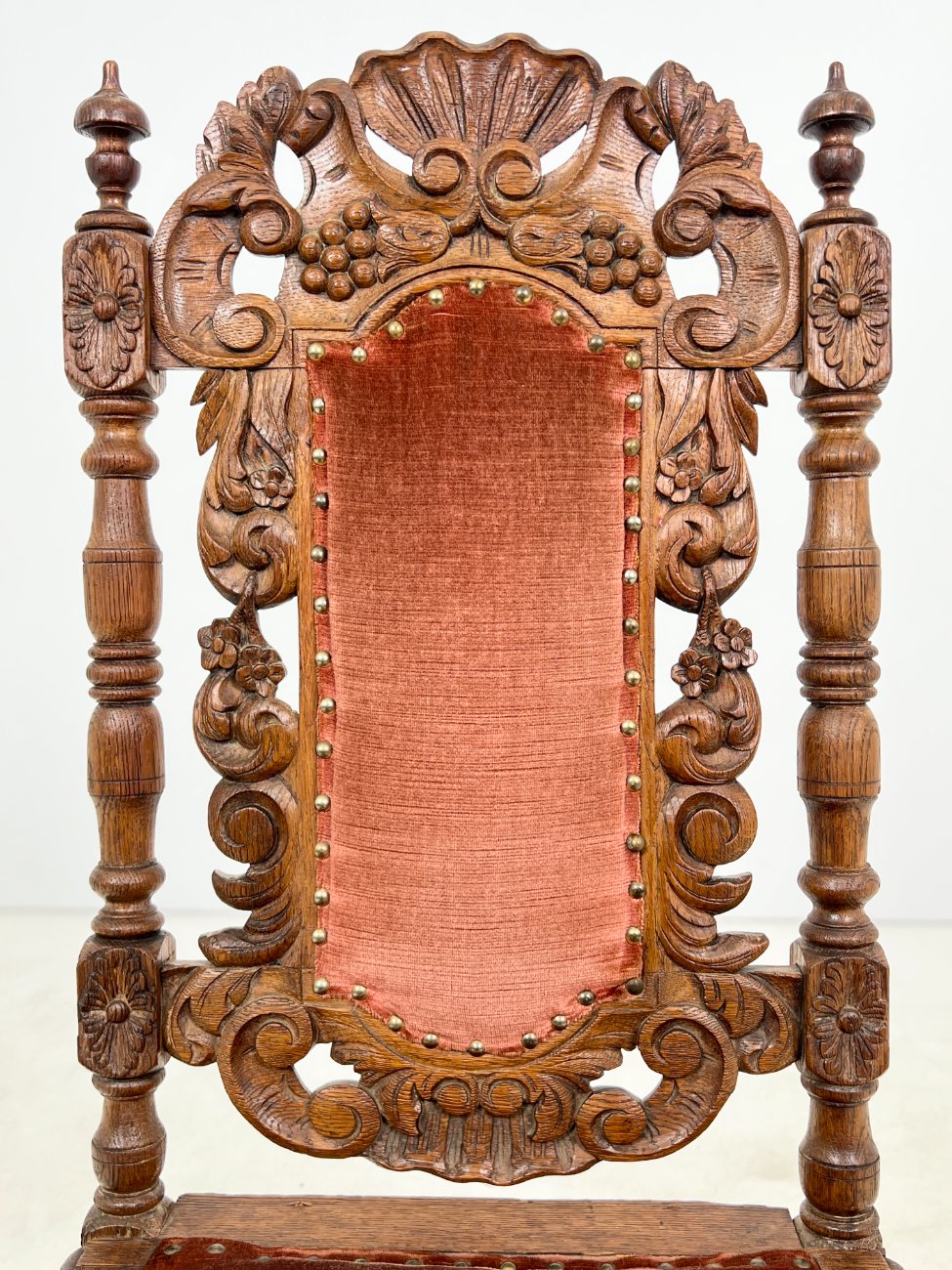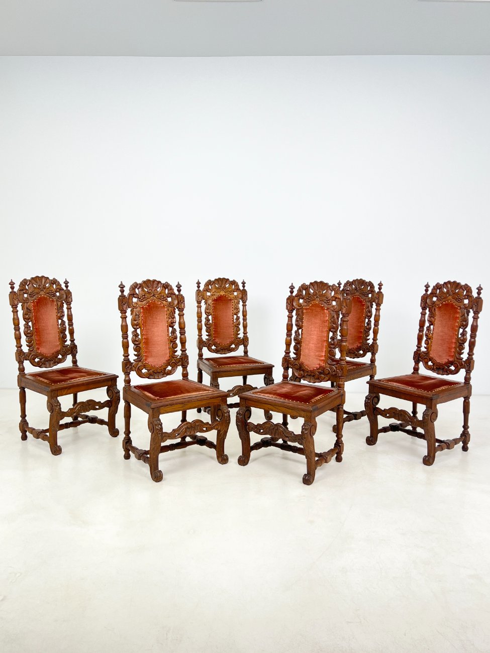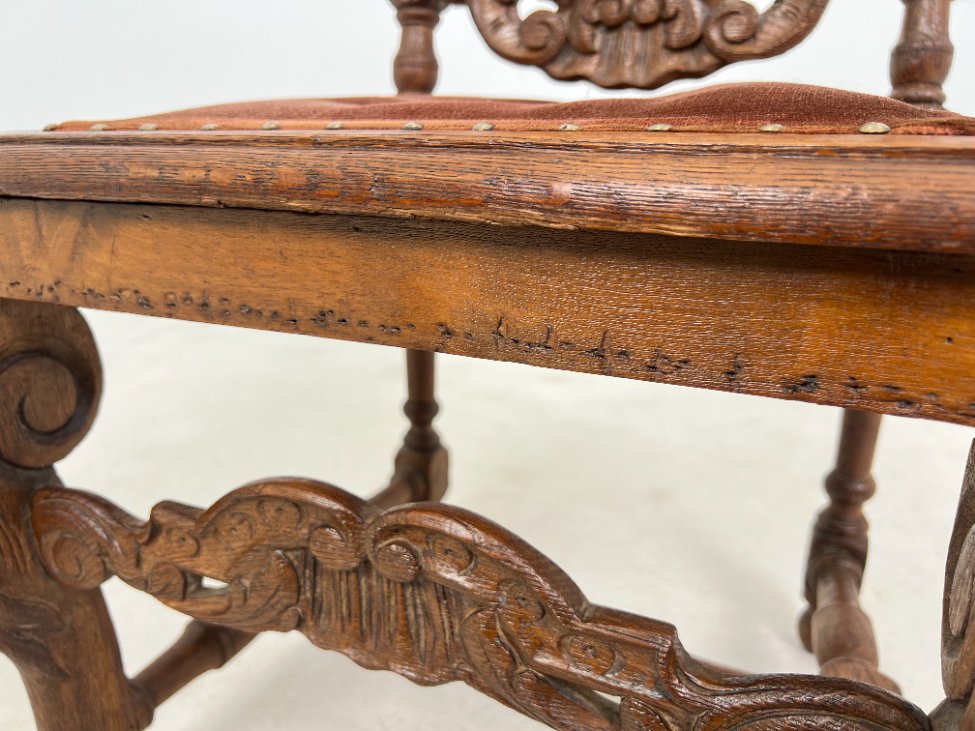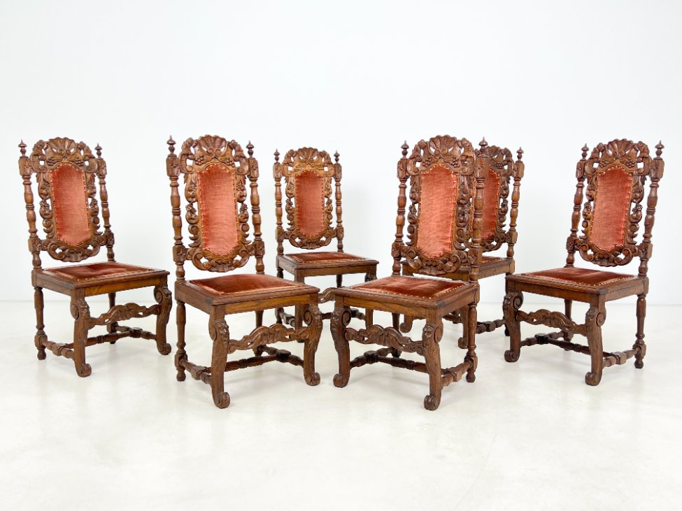 Senovinės drožinėtos ąžuolinės kėdės restauracijai 6 vnt. kompl. 54x51x107,5 cm, 45 cm