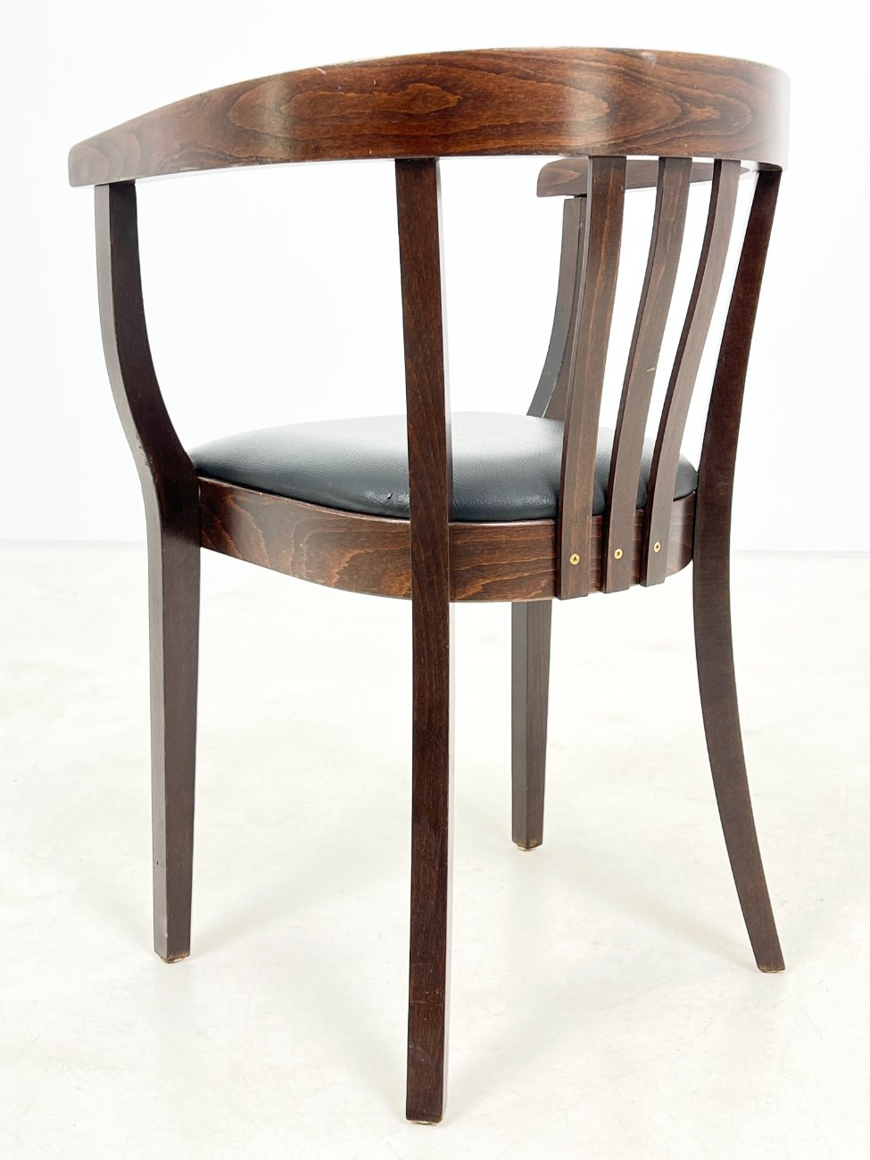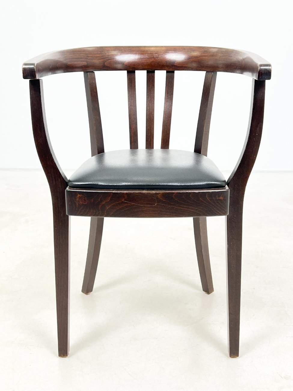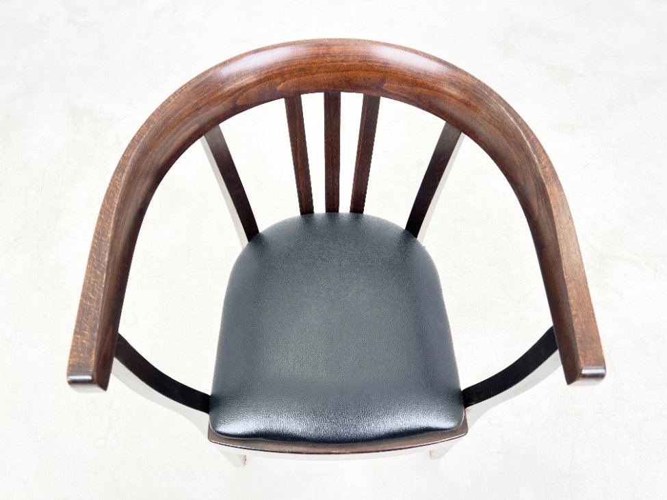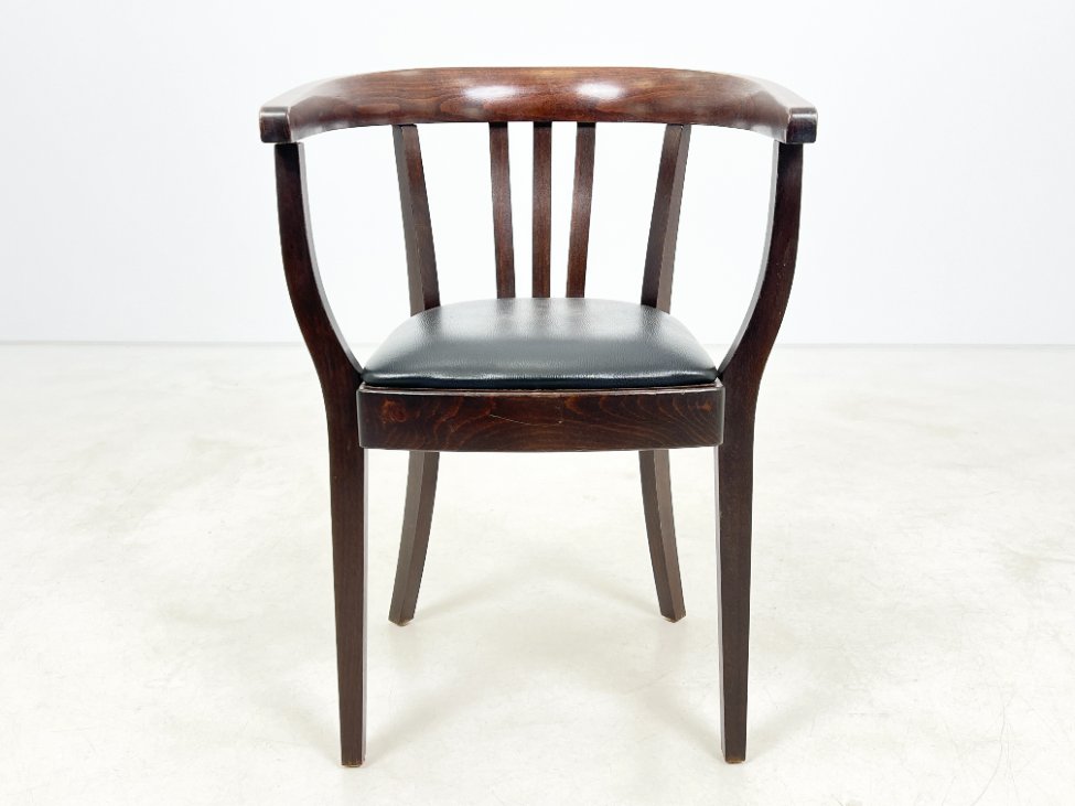 Thonet stiliaus medinis krėslas su eko odos sėdimąja dalimi.