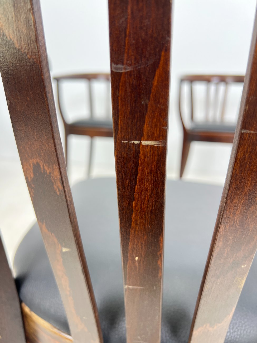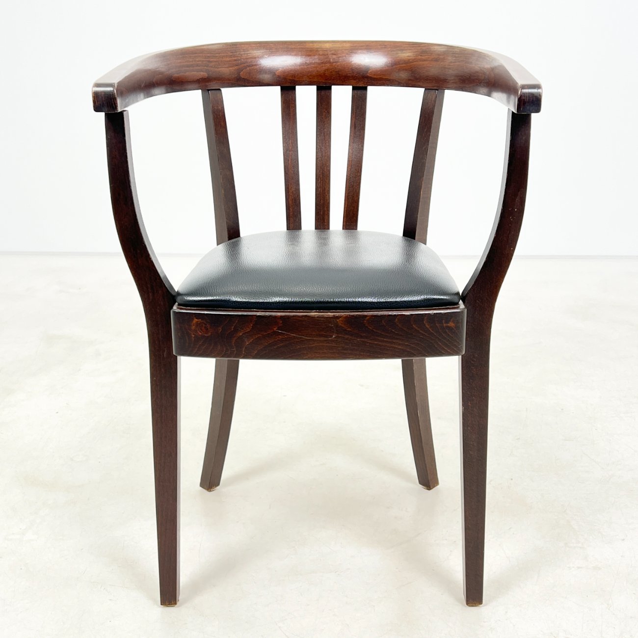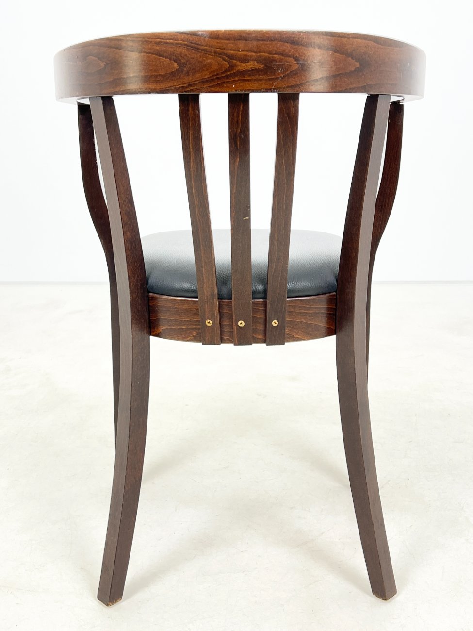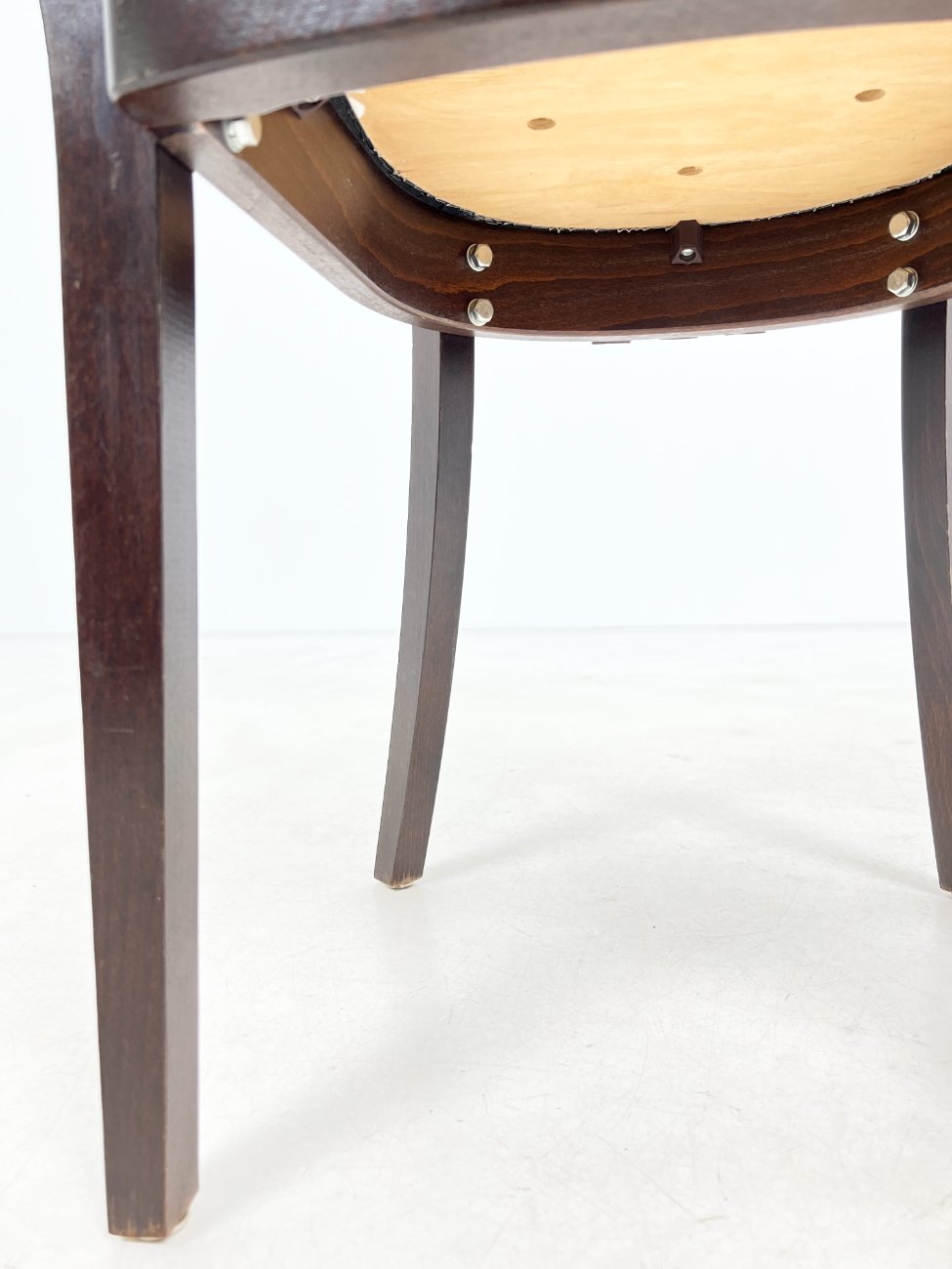 Thonet stiliaus medinis krėslas su eko odos sėdimąja dalimi.