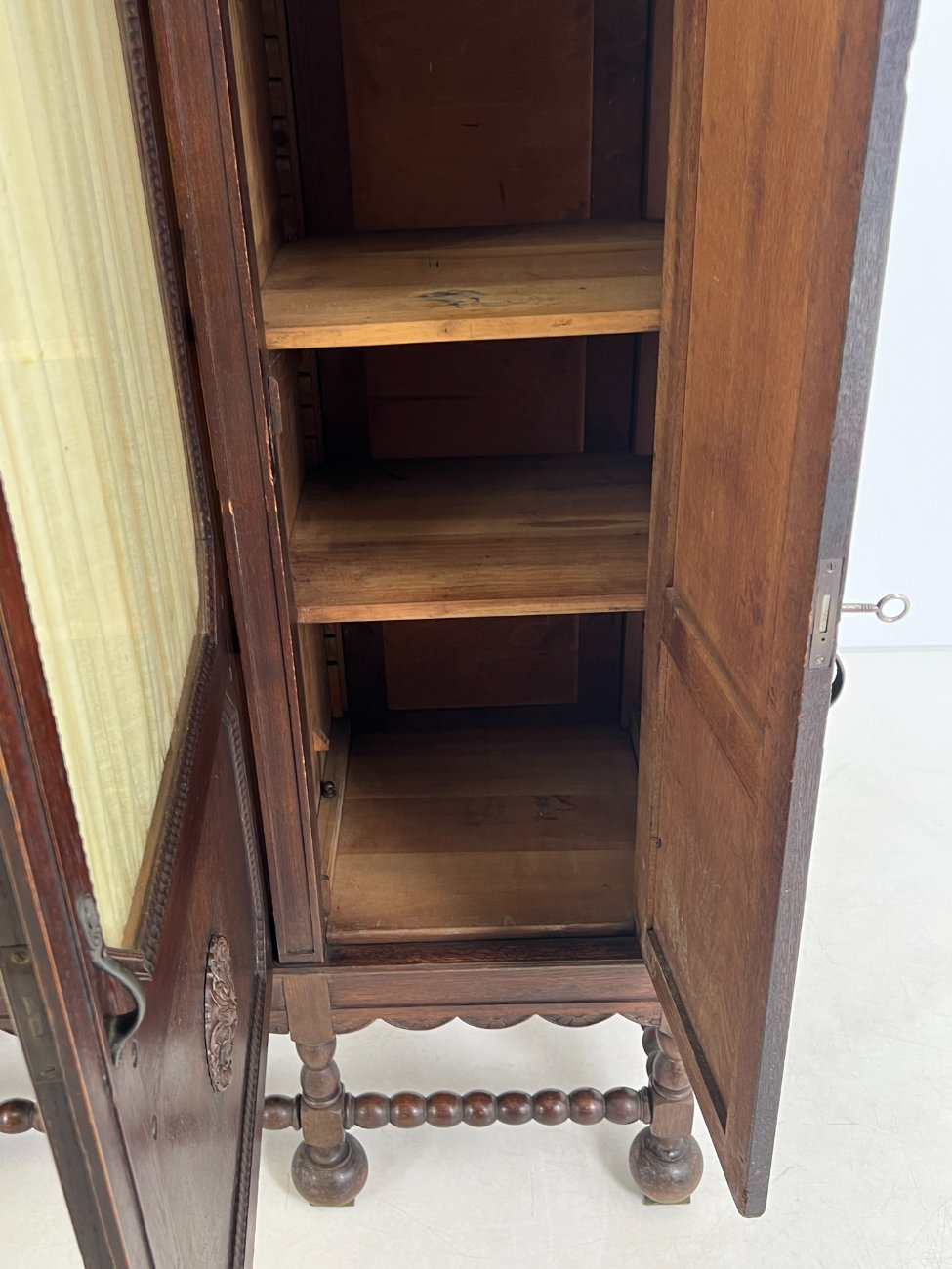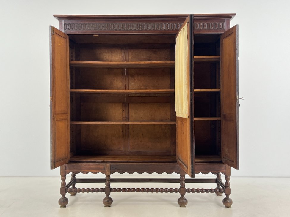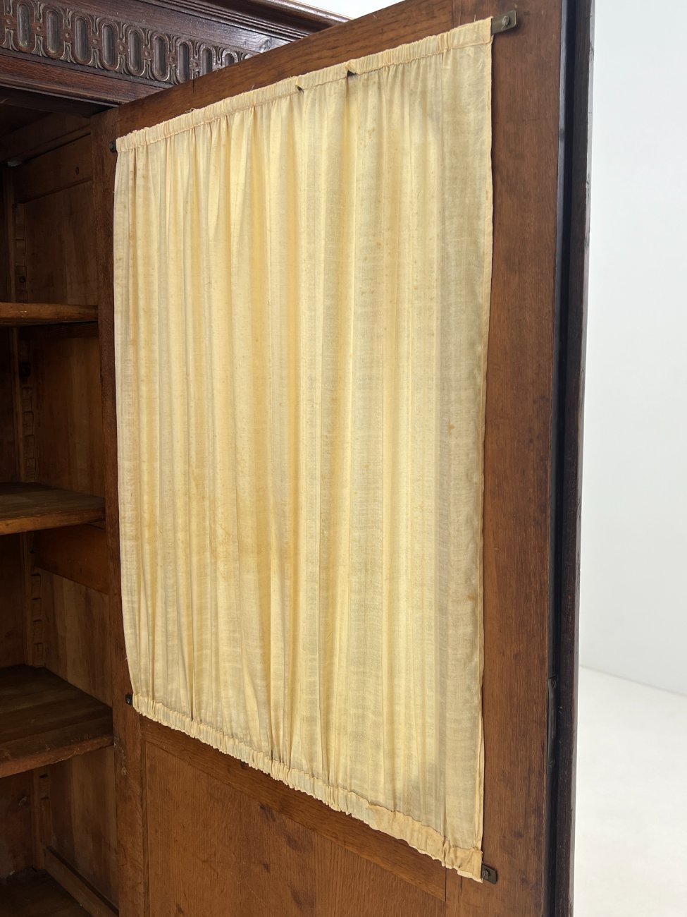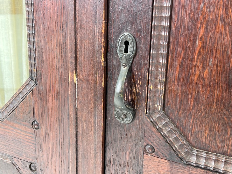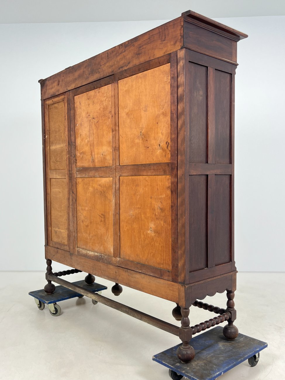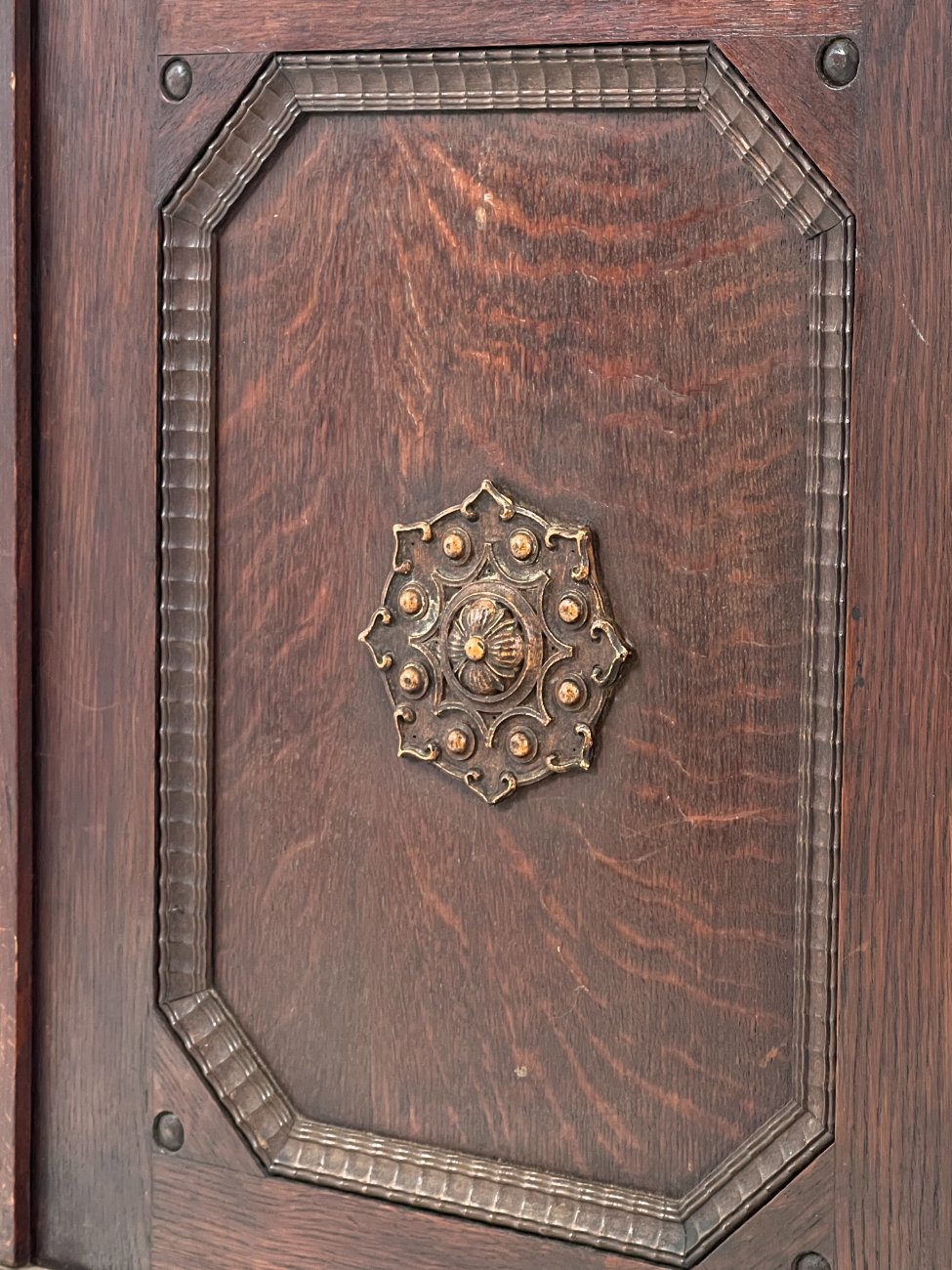 Ąžuolinė drožinėta trijų durų knygų spinta.