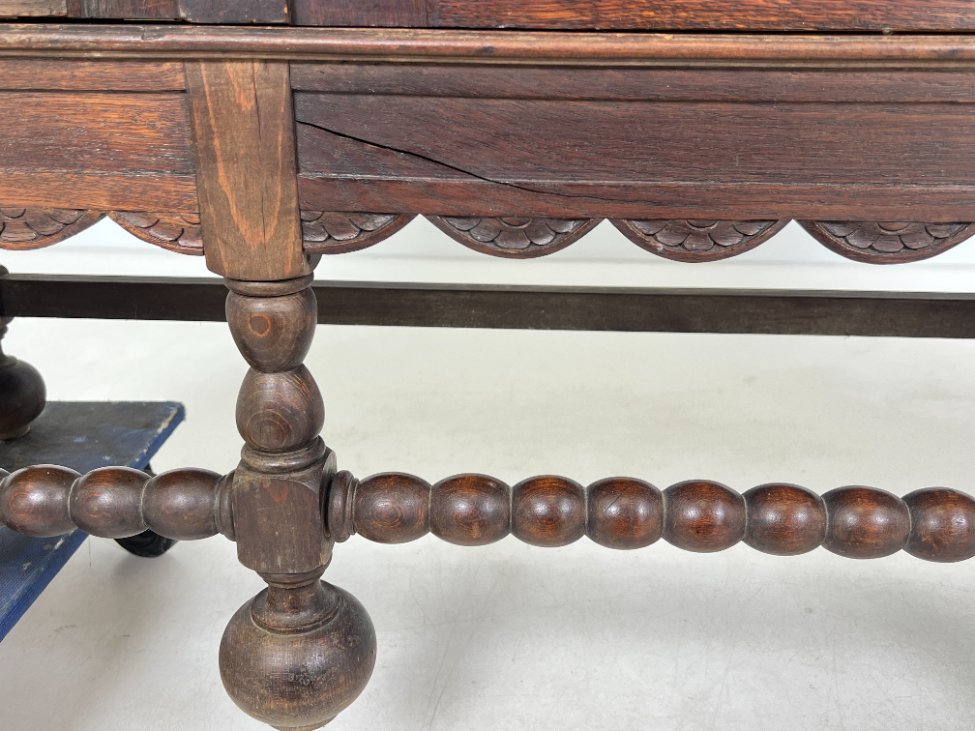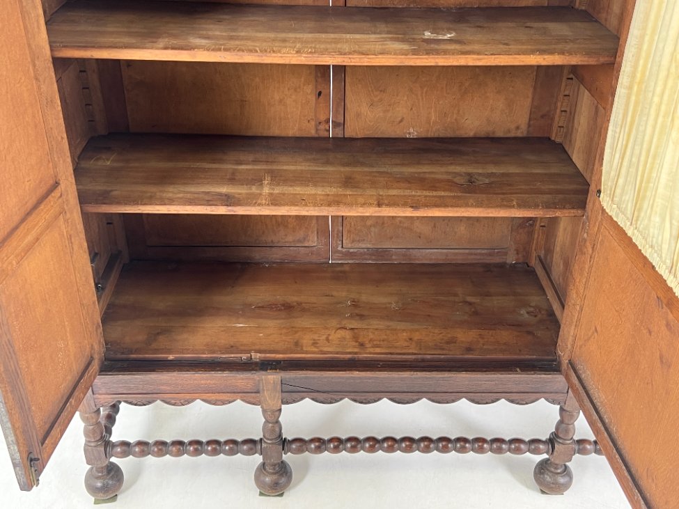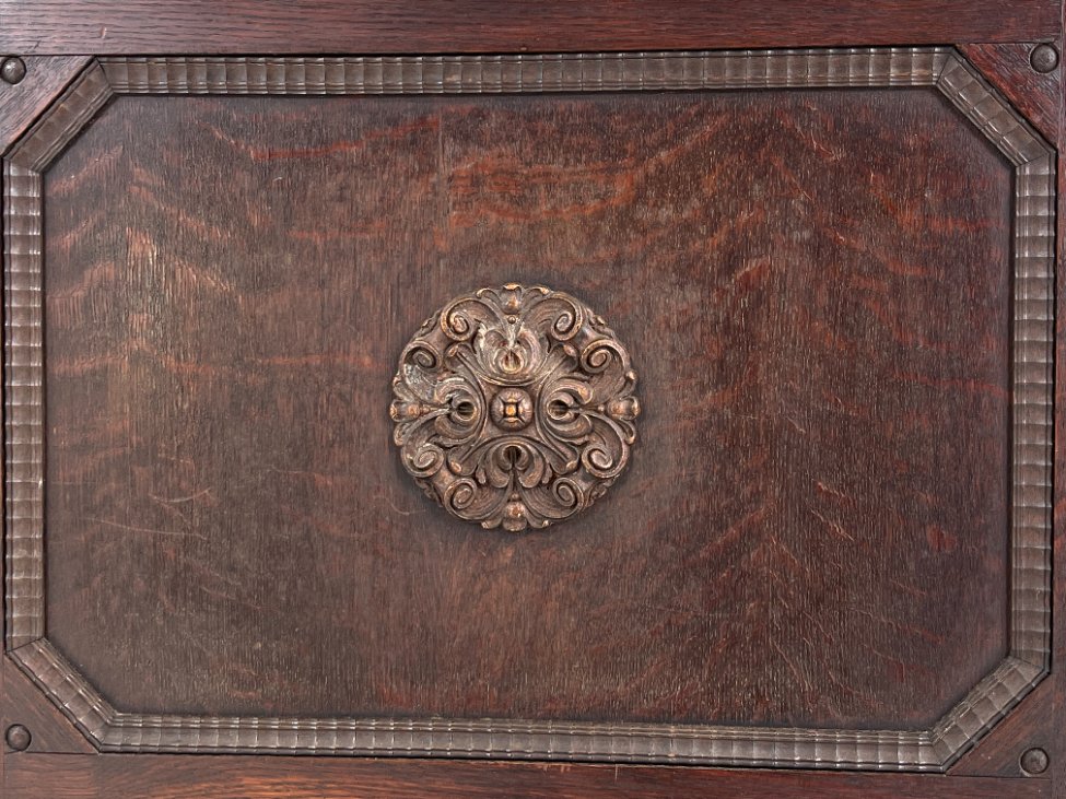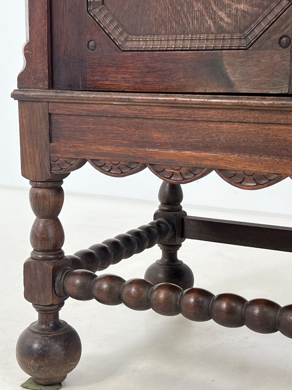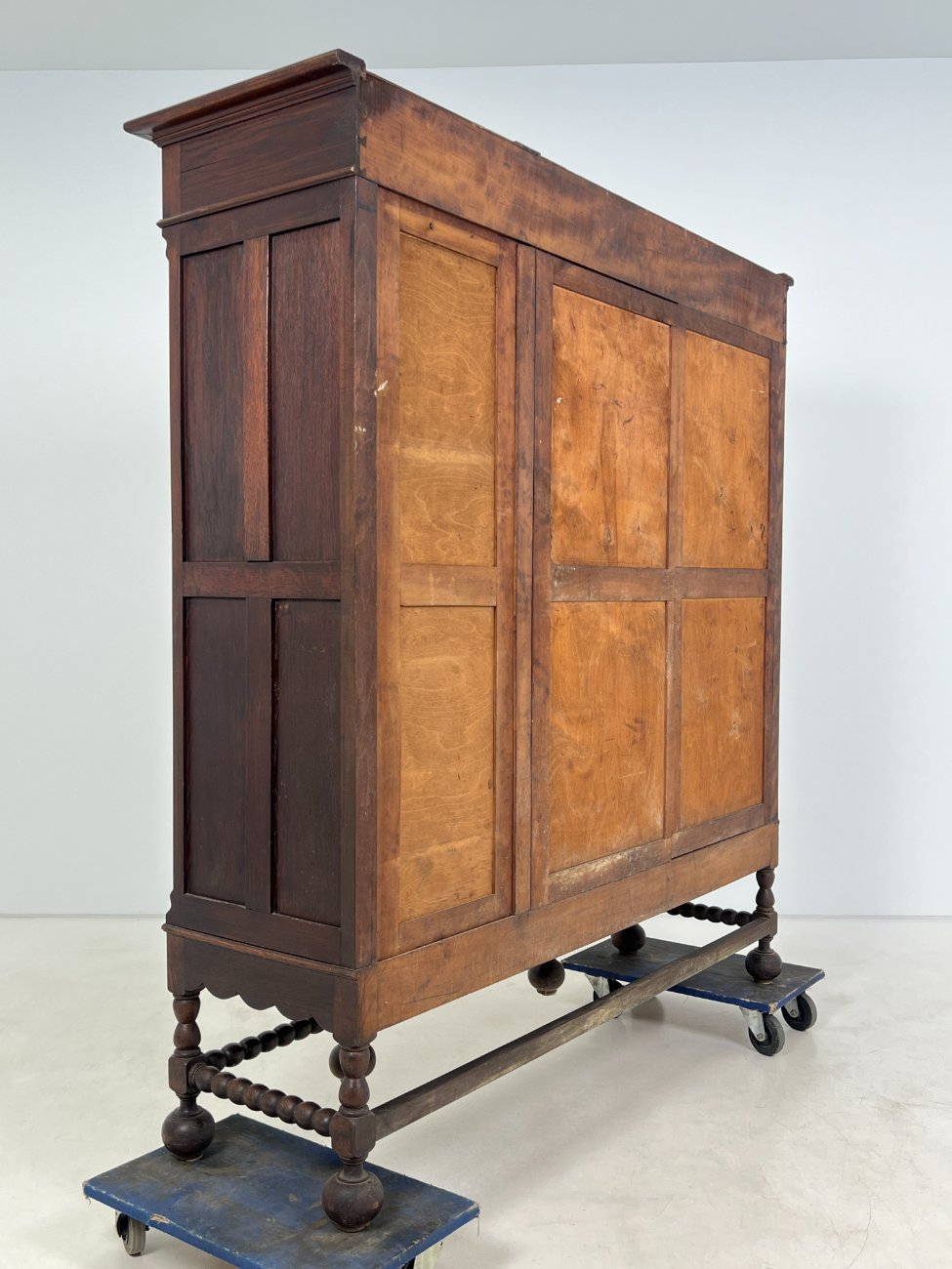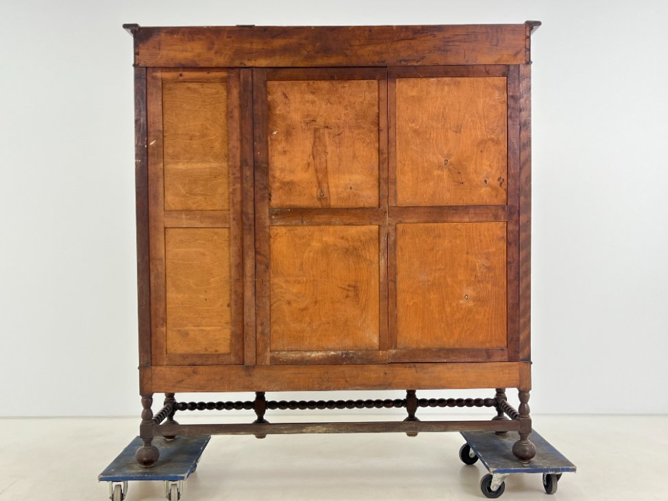 Ąžuolinė drožinėta trijų durų knygų spinta.