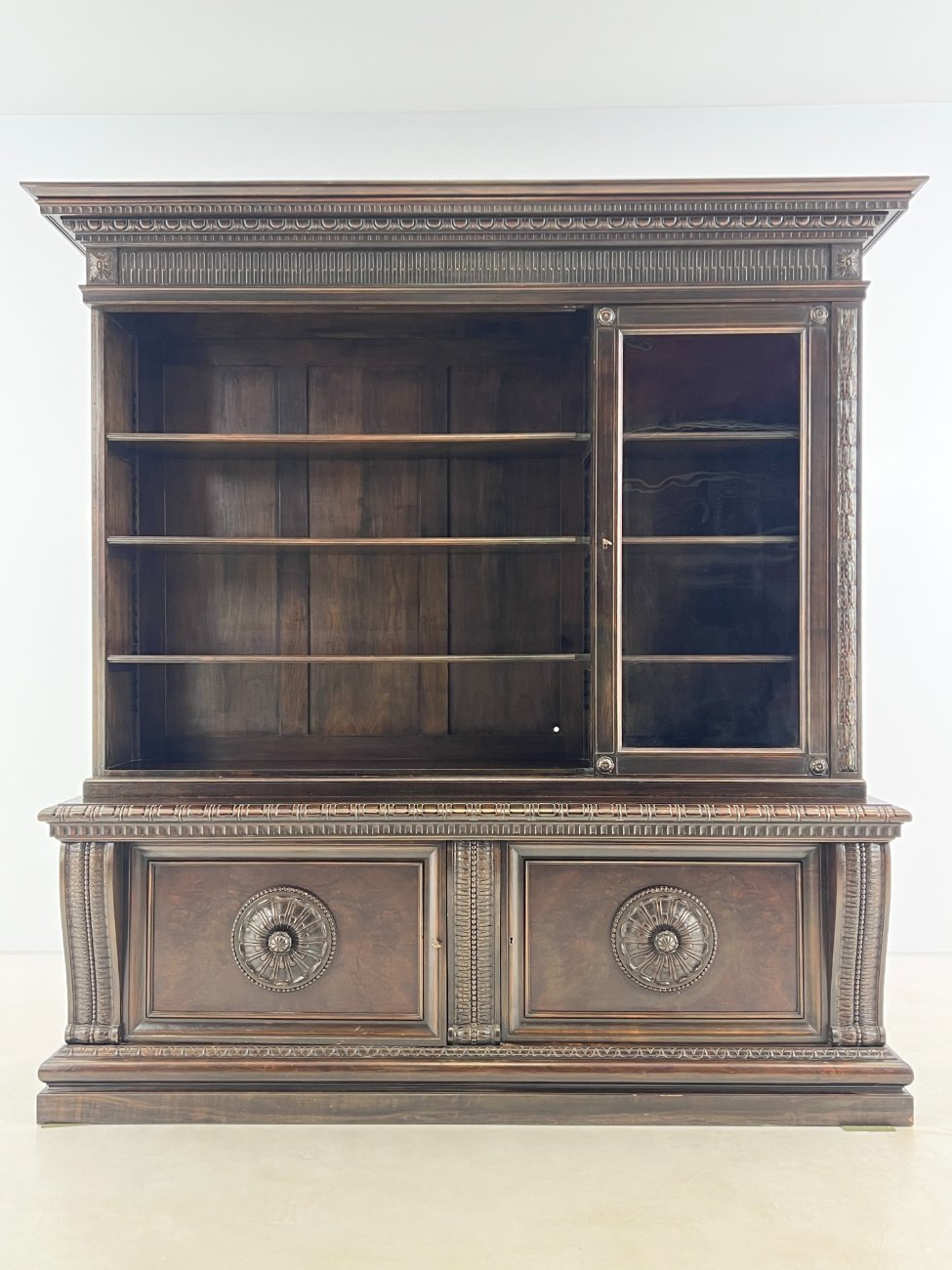 Riešutmedžio knygų spinta su atviromis lentynomis 48x201x208 cm