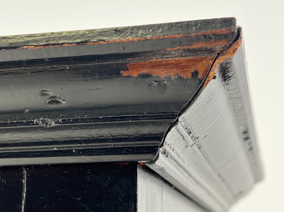 | Papildoma informacija | Yra pabraižymų, vidurinė lentyna ištepta dažais, dešiniajame viršutiniame kampe pažeisti dažai, yra tarpas tarp nugarinės sienelės |