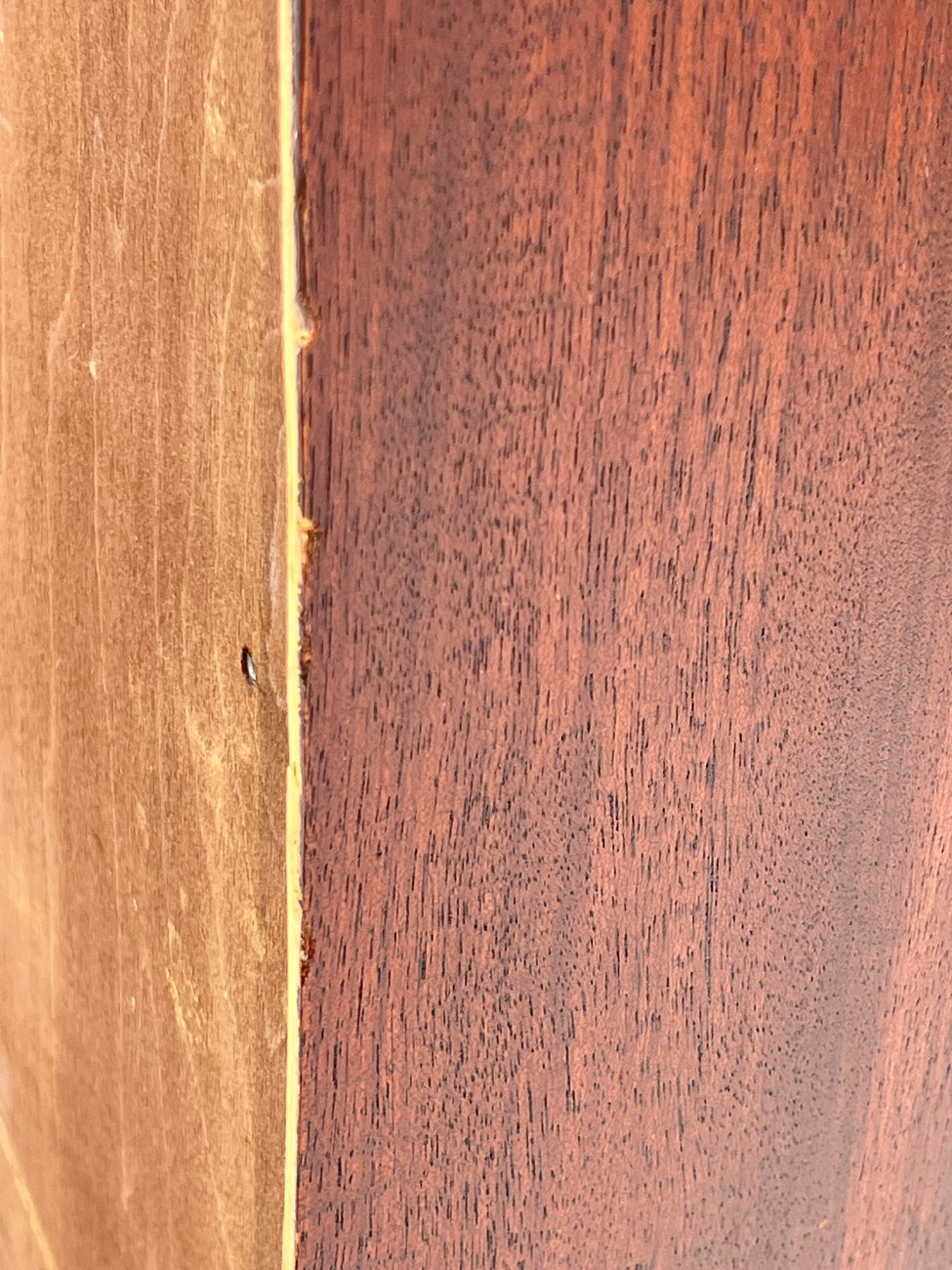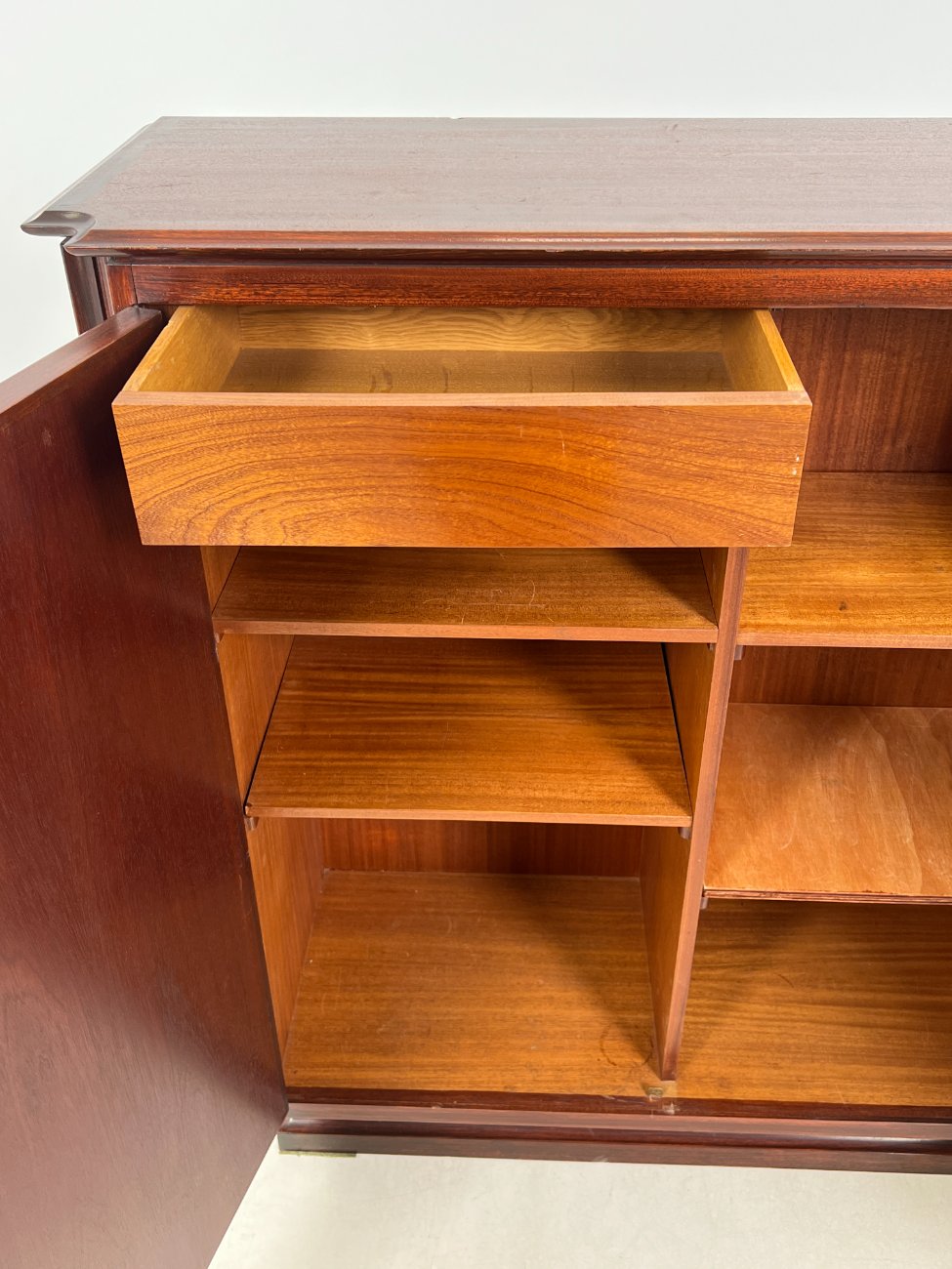 Aukšta dviejų durų raudonmedžio komoda su žalvario rankenomis 42x114x122 cm