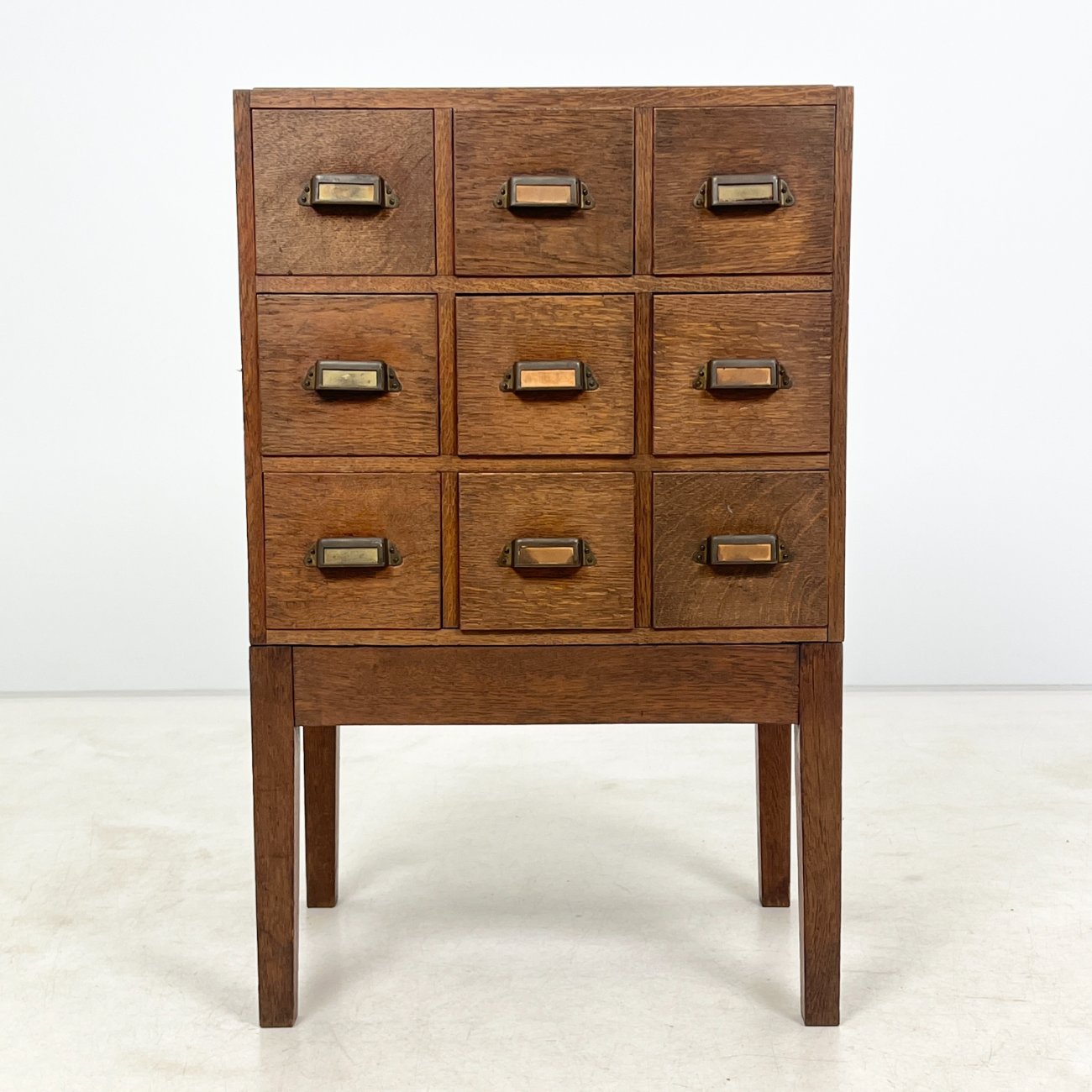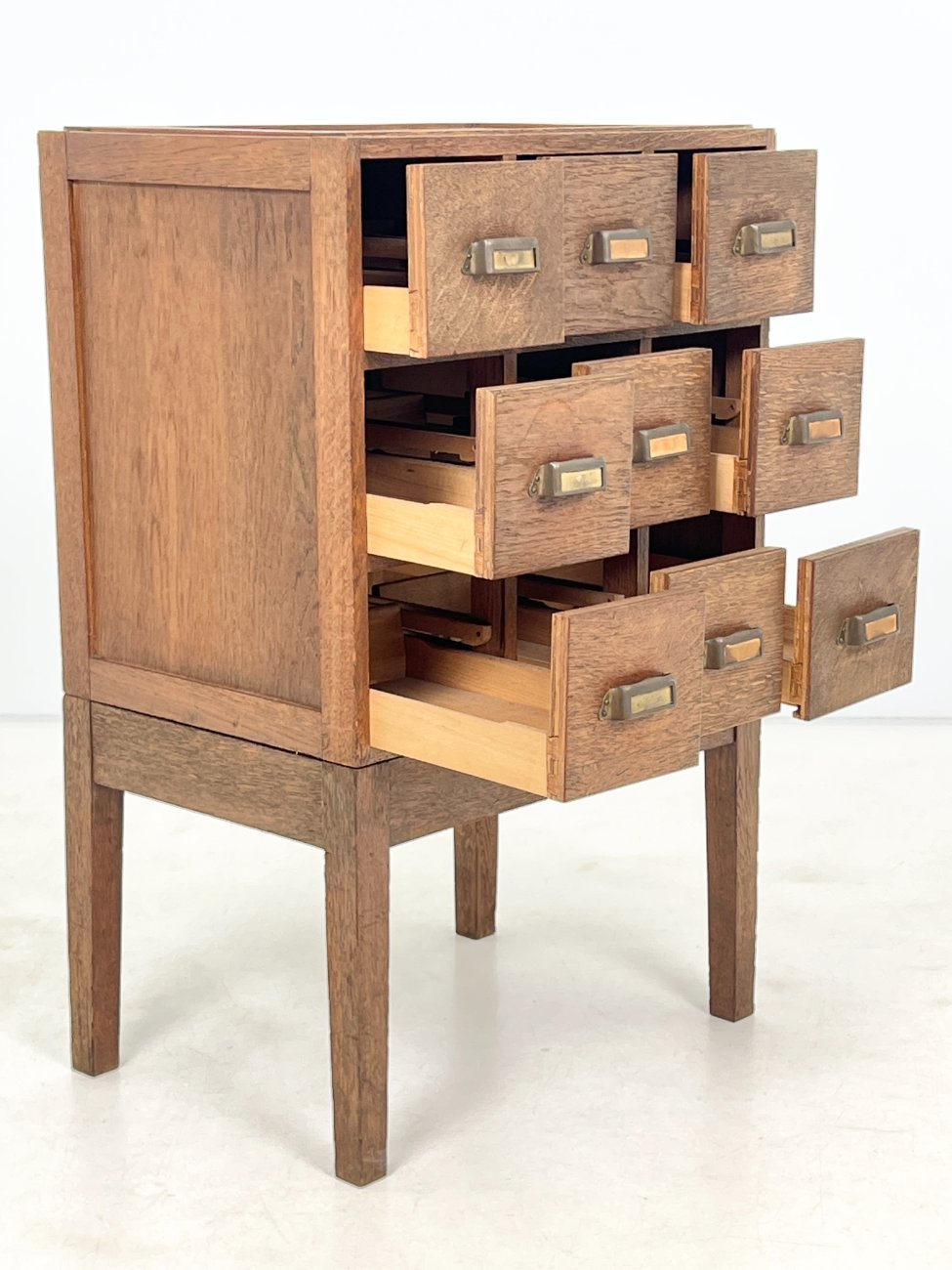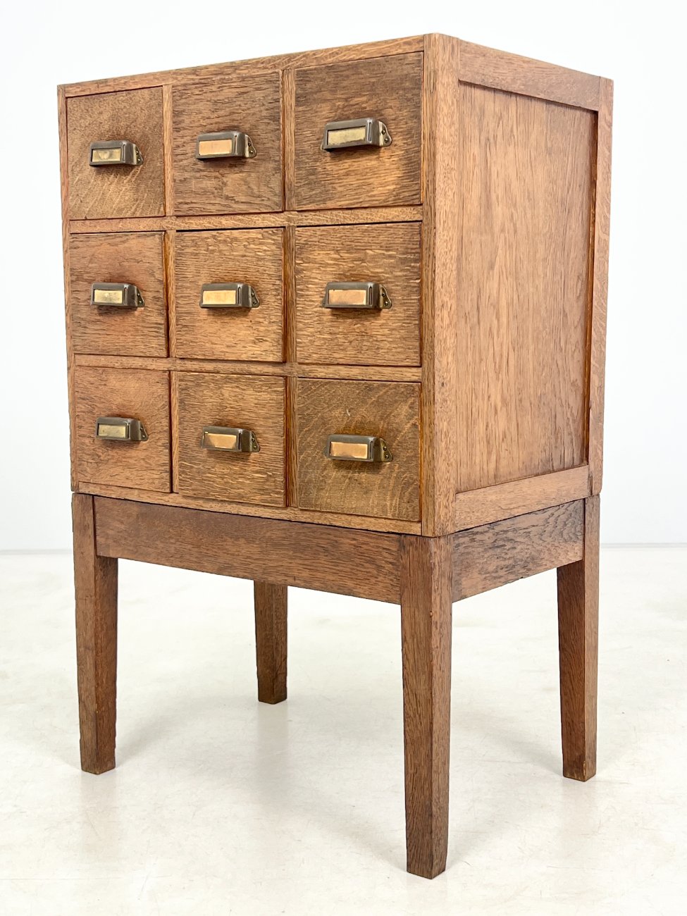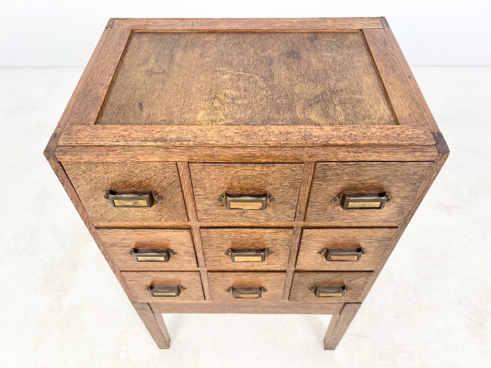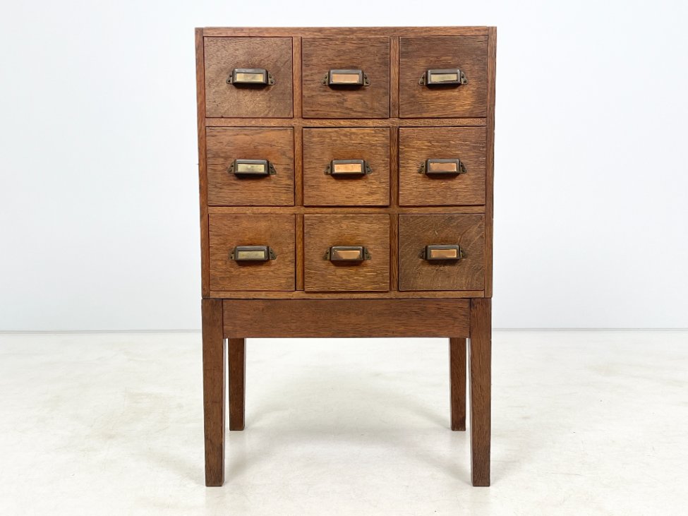 Ąžuolinė devynių stalčių archyvavimo komoda.