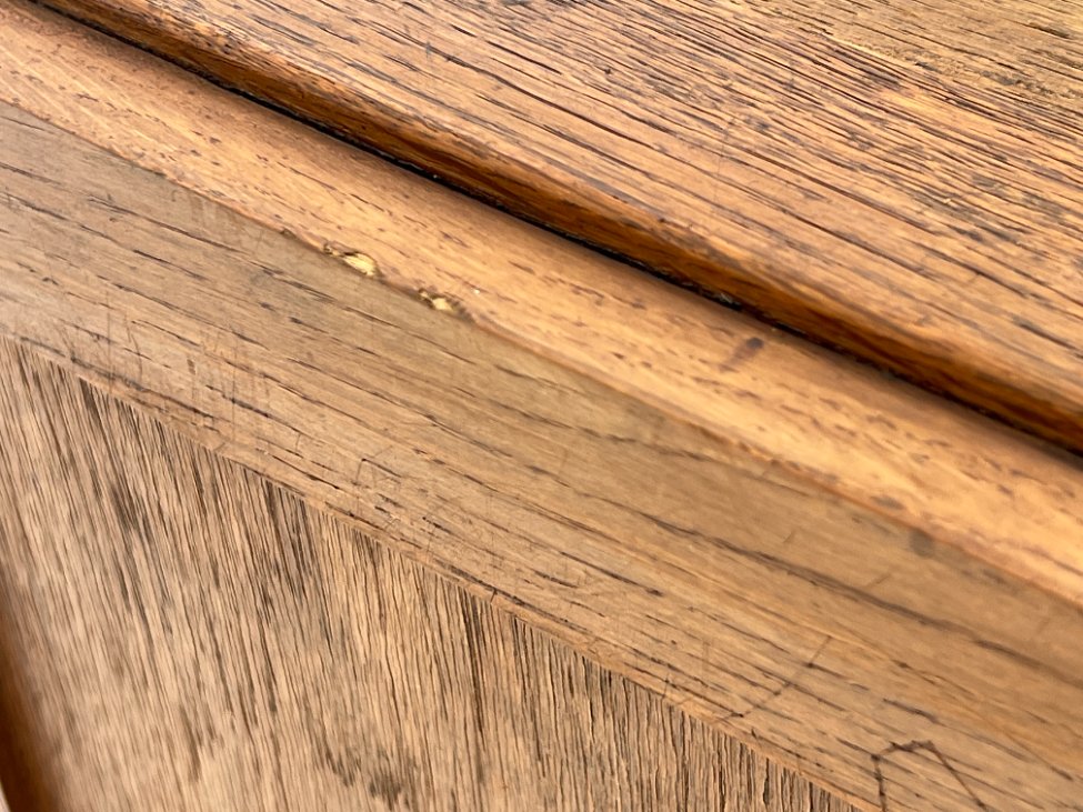 | Papildoma informacija | Matomos naudojimo žymės, per visą paviršių yra pabraižymų, įmušimų, dėmių. Oksidavęsis rankenėlių metalas. |