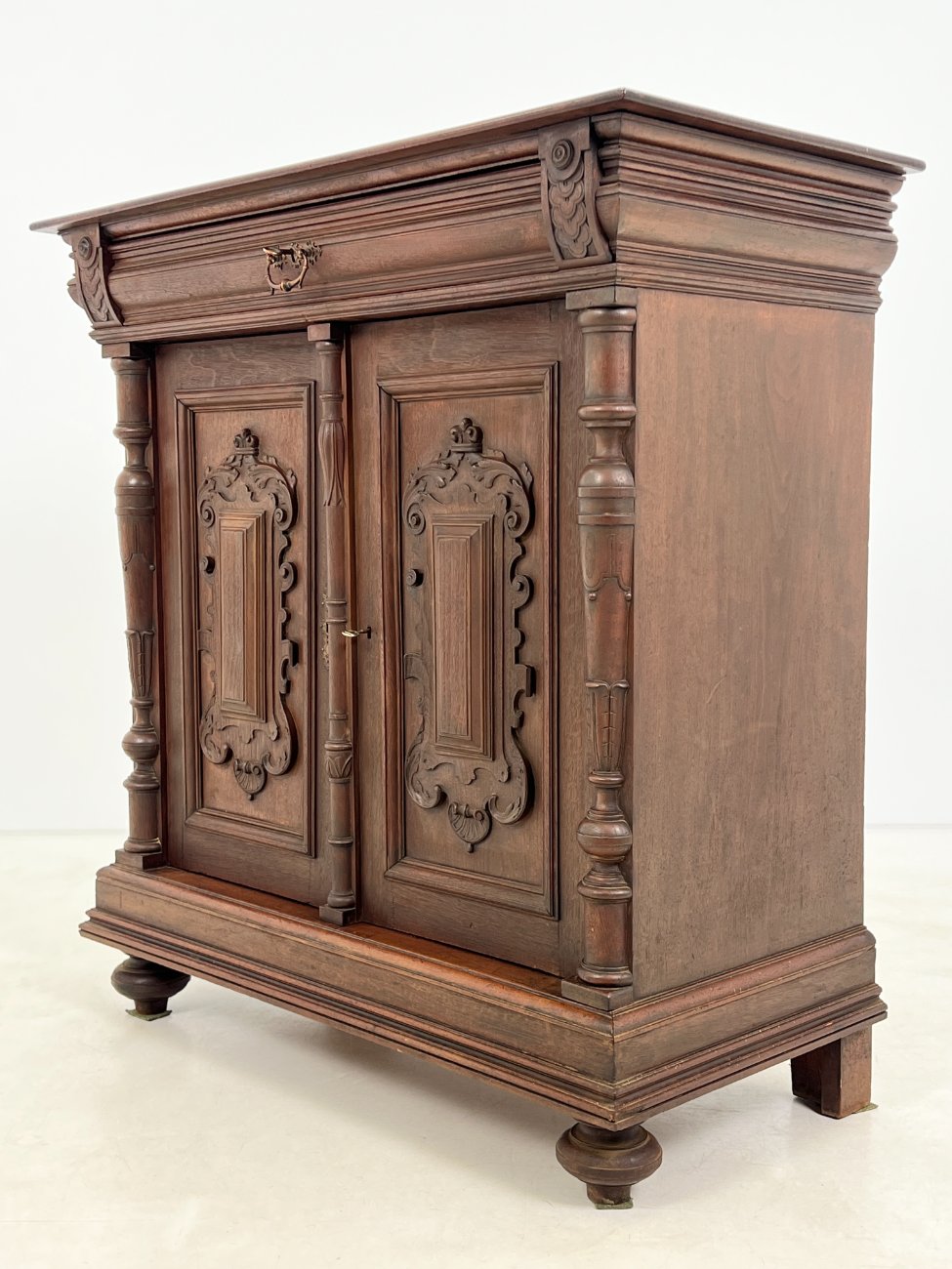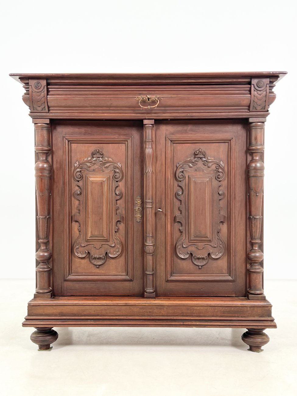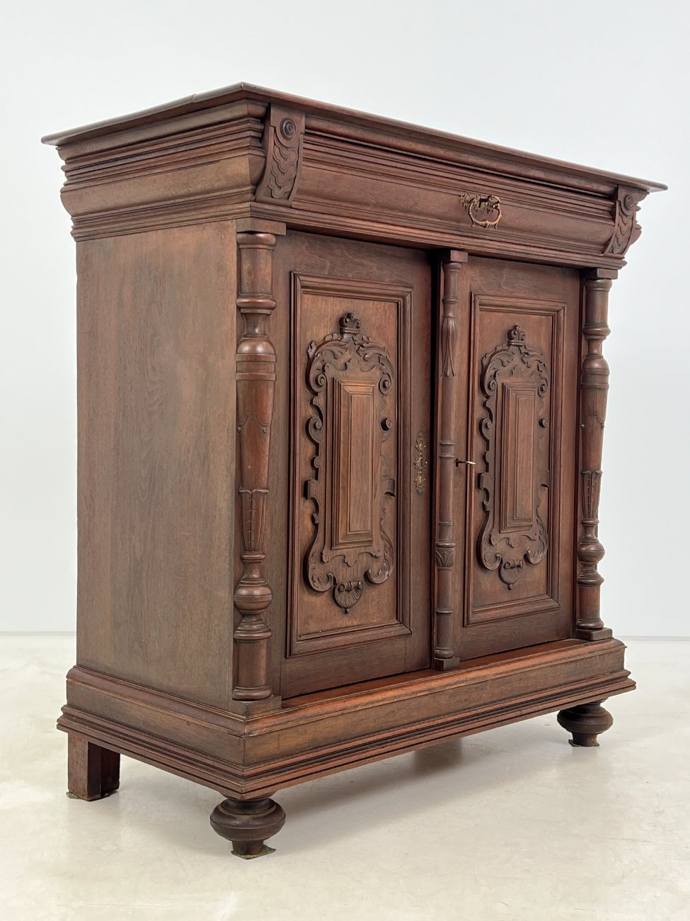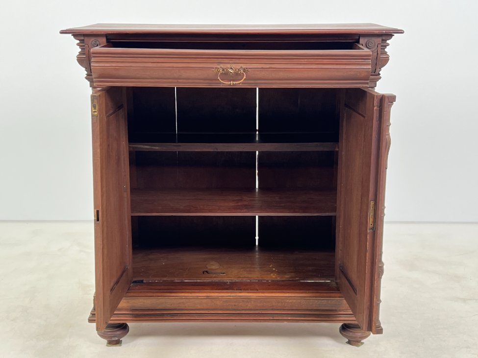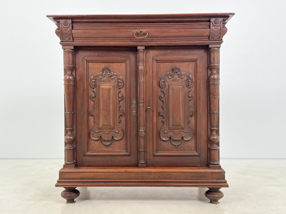 Ąžuolinė drožinėta vieno stalčiaus ir dviejų durų komoda 54×108,5×114 cm